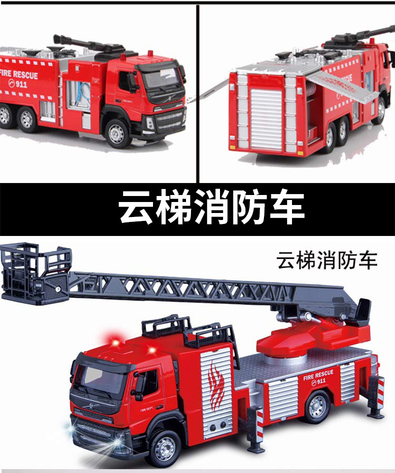 【城市英雄】1:50云梯消防车 工程车