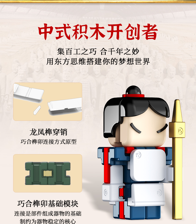 【博物馆文创】巧合积木儿童拼装玩具益智力男女孩秦兵马俑榫卯模型情人礼物盲盒