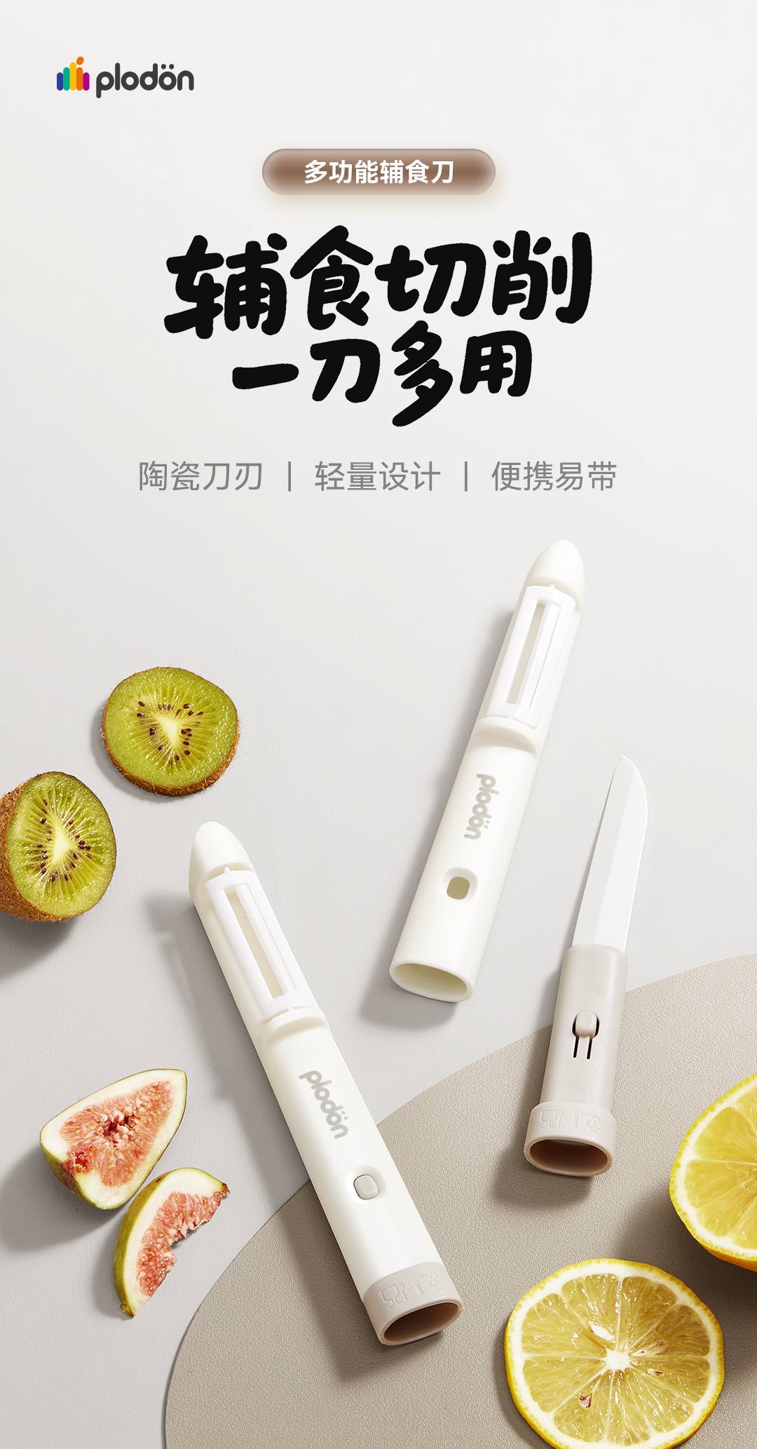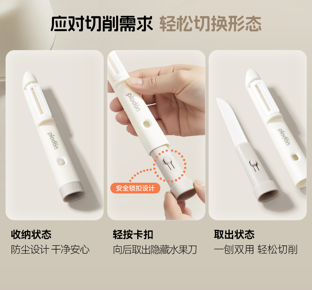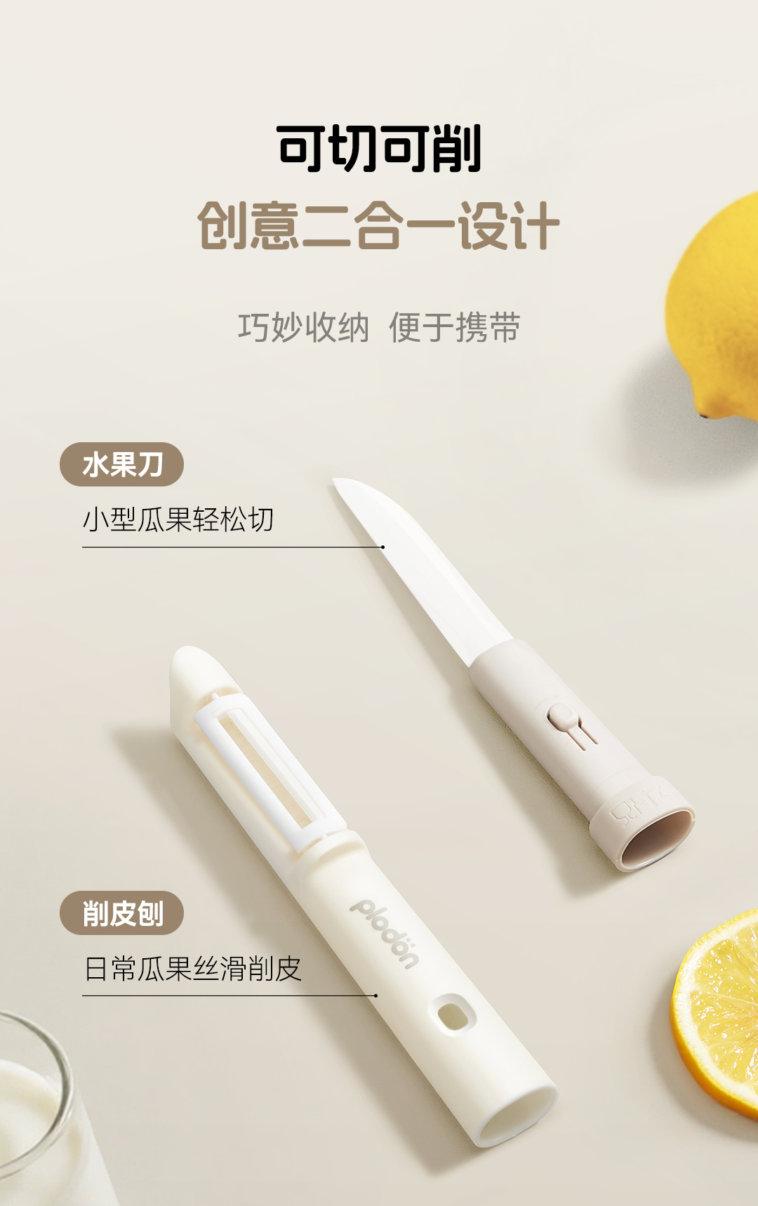 浦利顿陶瓷水果刀削皮刀二合一家用切瓜果多功能随身便携刮皮神器PLD-SG-004