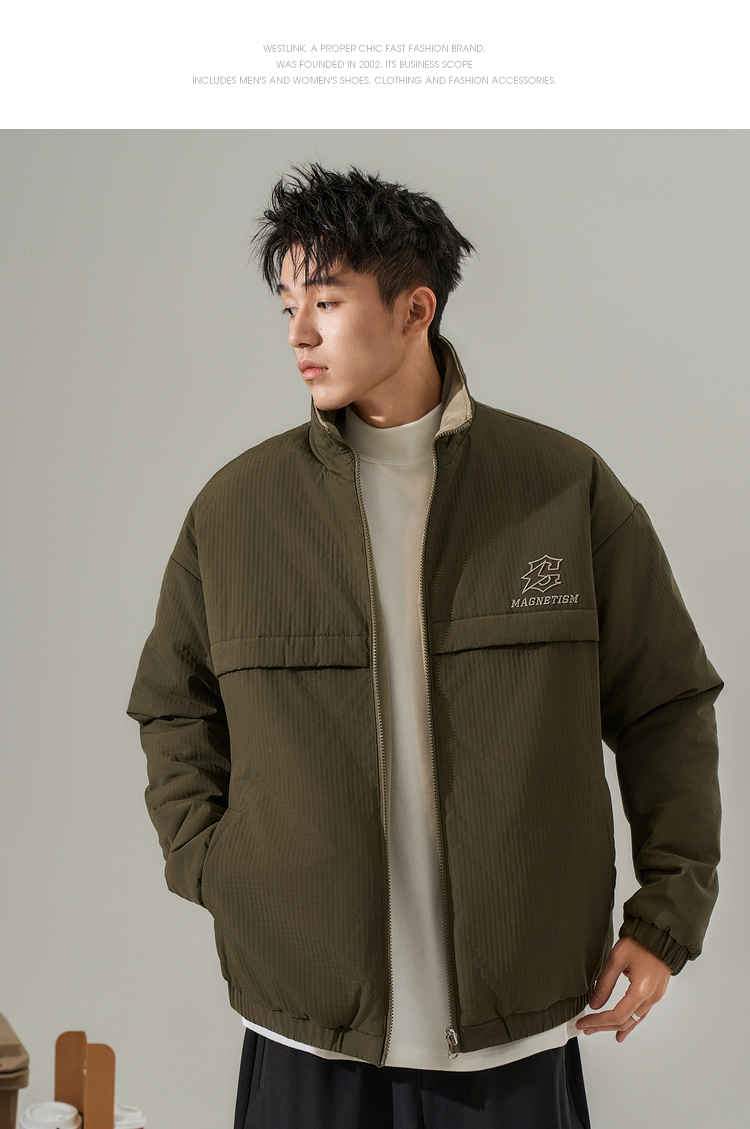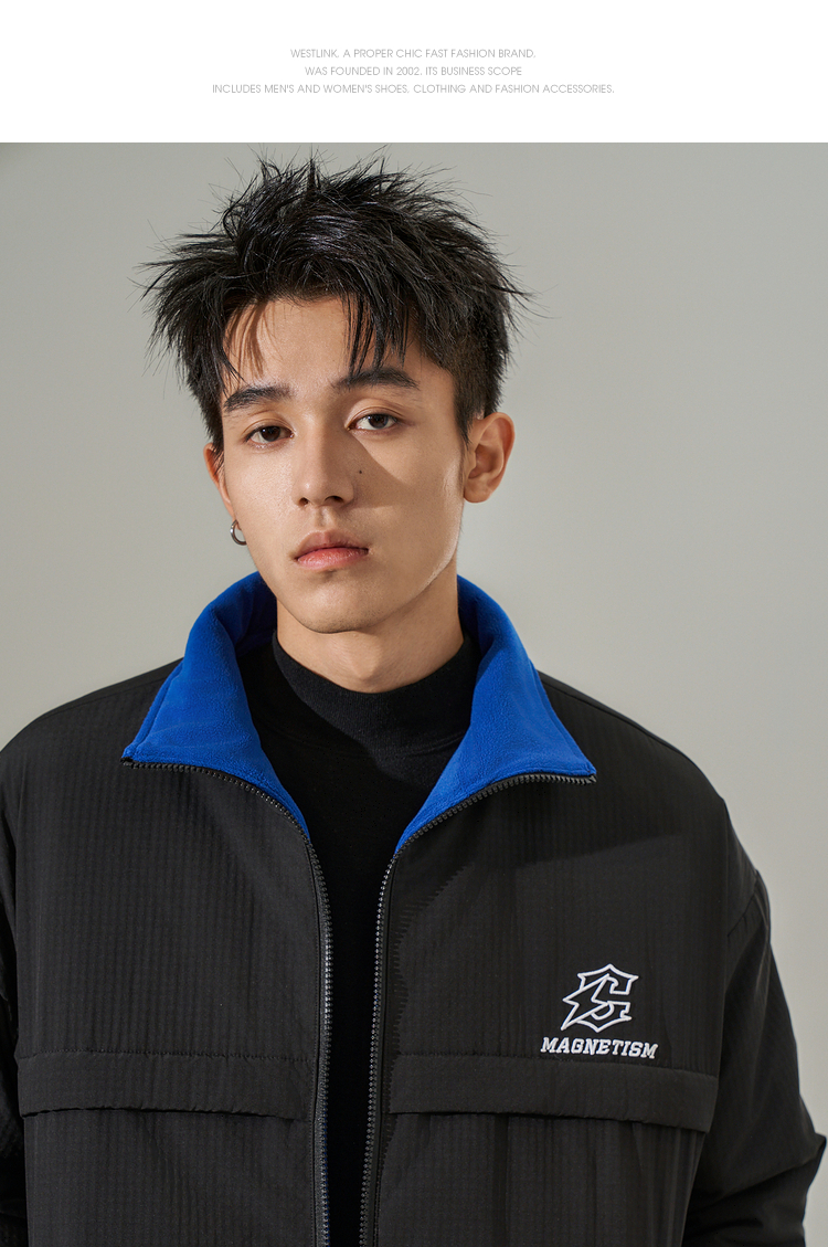 西遇美式拉链运动外套男秋冬新款立领夹克休闲百搭防风上衣12232335