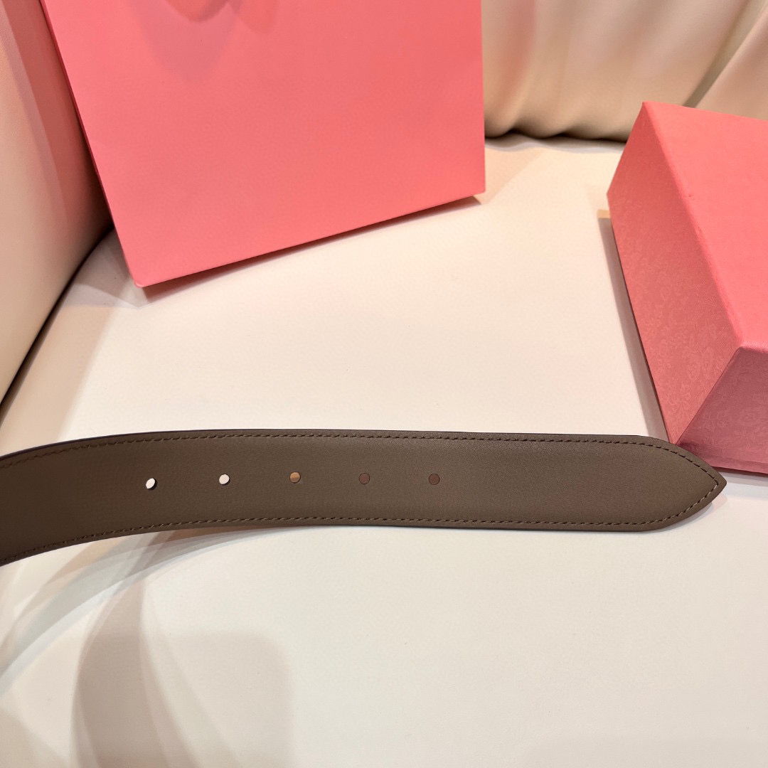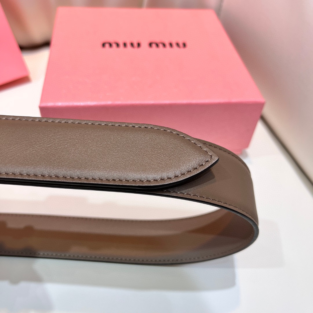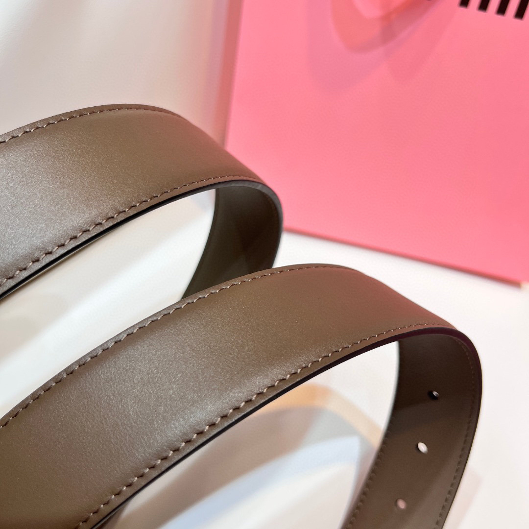 miumiu新款 铁介指 金属实心针扣微标.机简主义风格的皮革腰带 小牛皮材质 柔软腰带 金属搭扣 3.4cm
