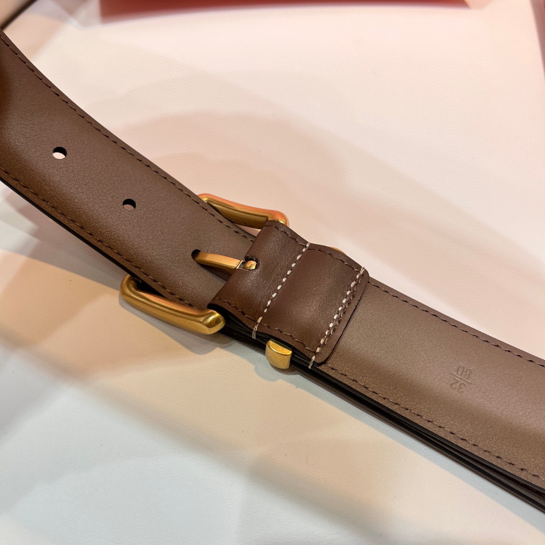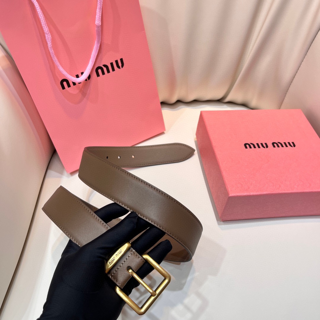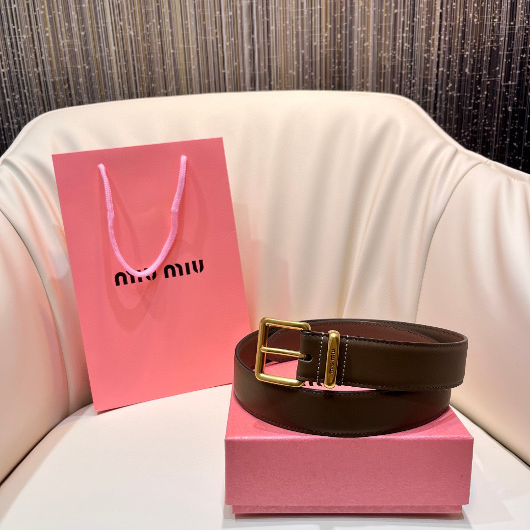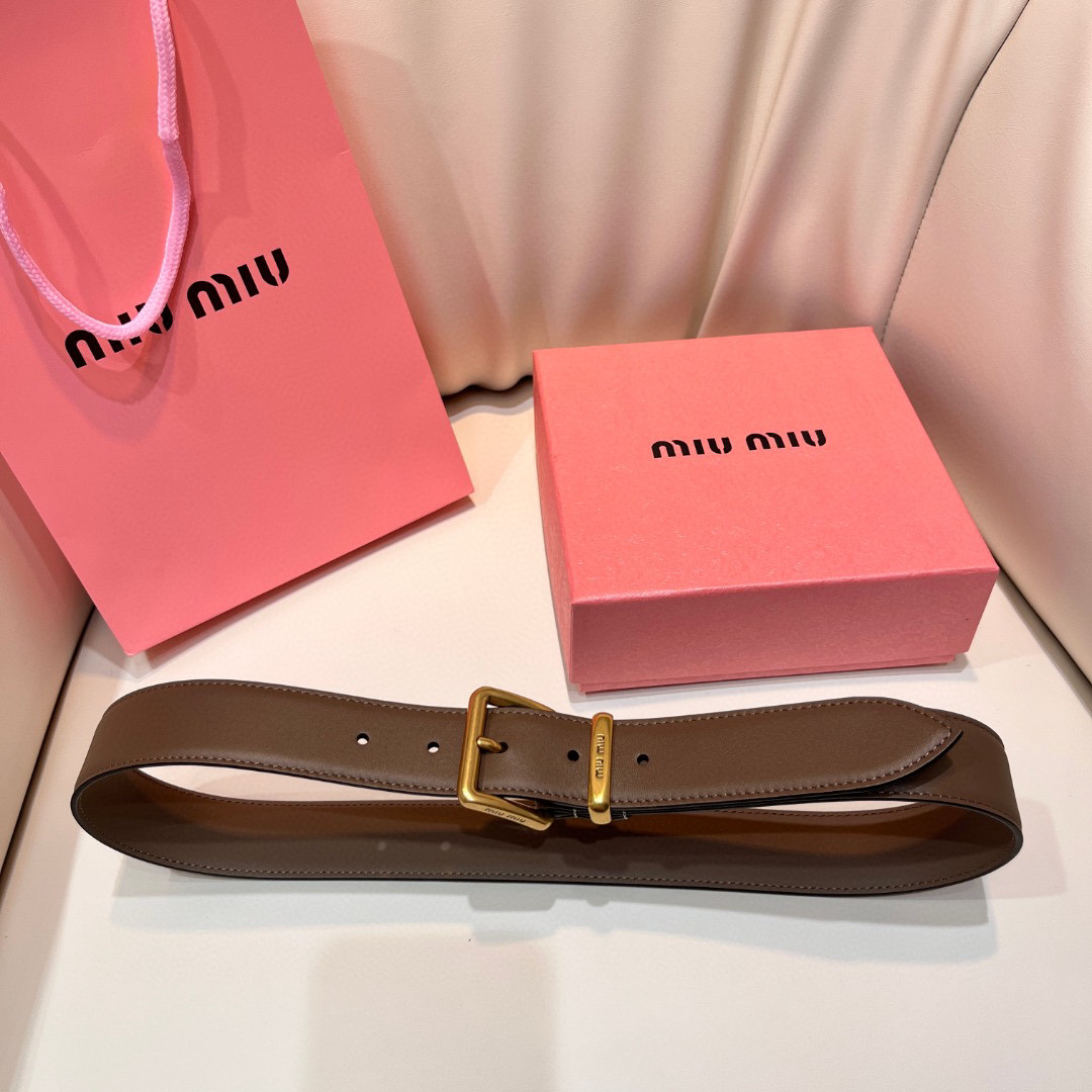 miumiu新款 铁介指 金属实心针扣微标.机简主义风格的皮革腰带 小牛皮材质 柔软腰带 金属搭扣 3.4cm