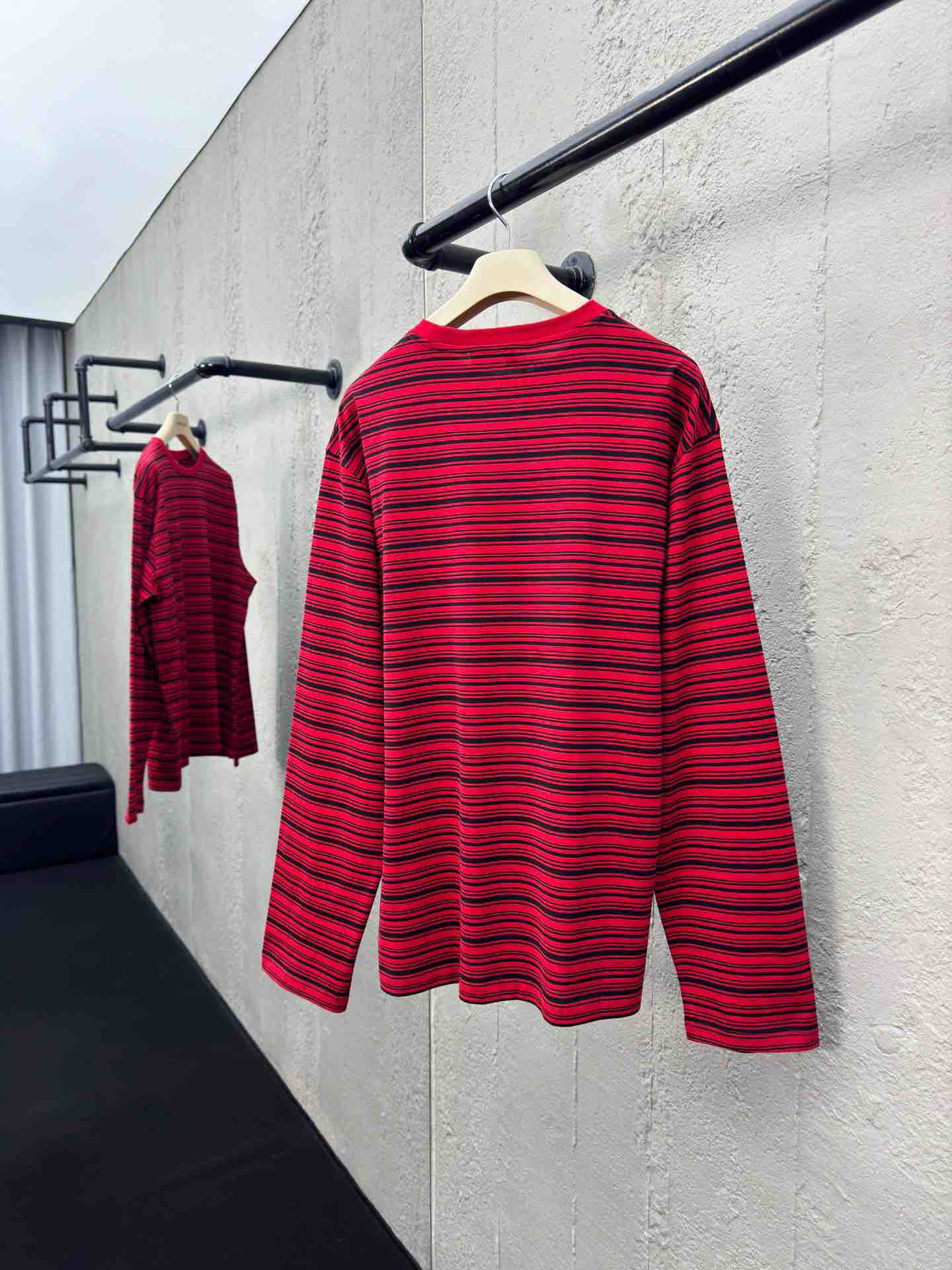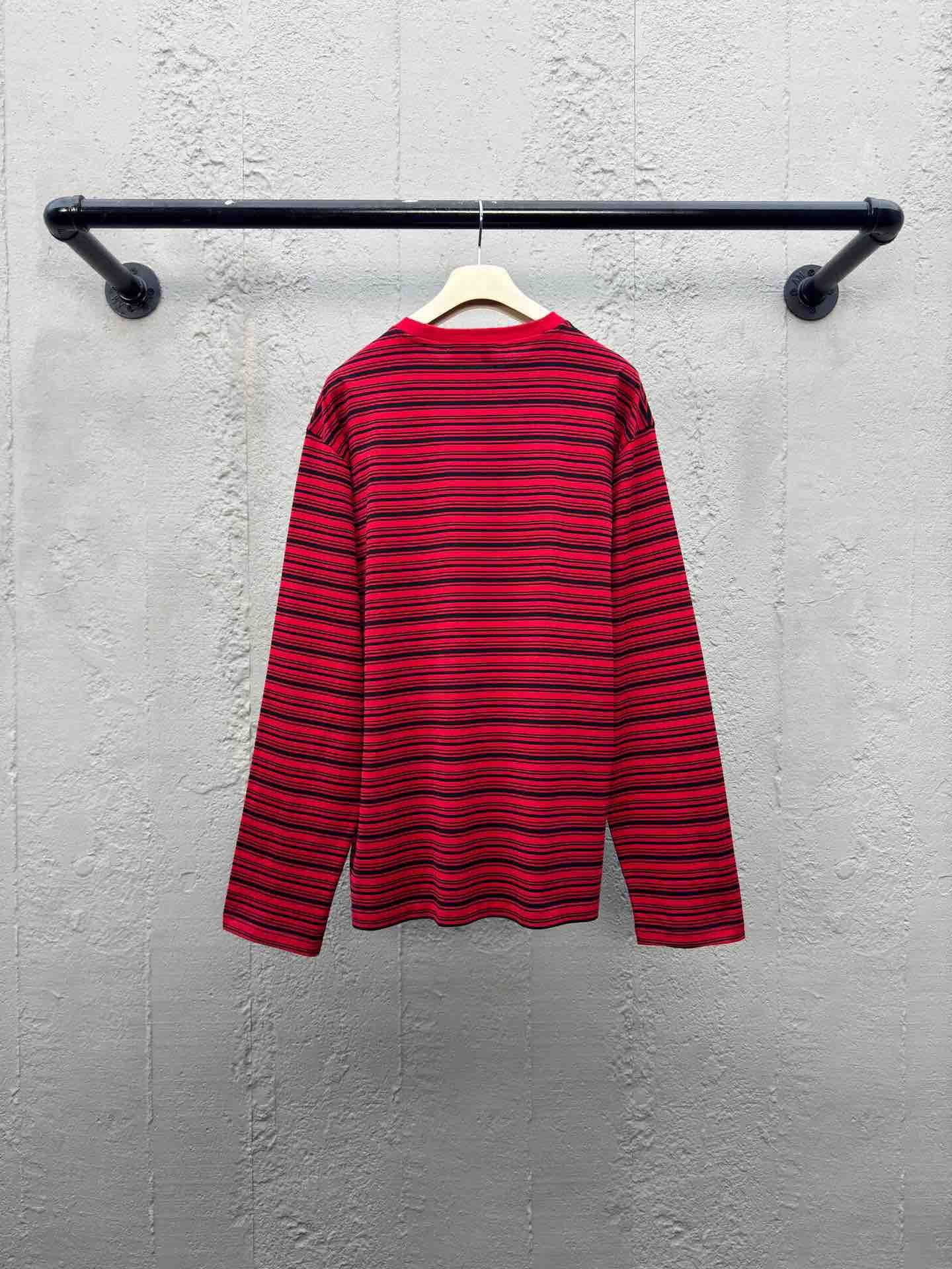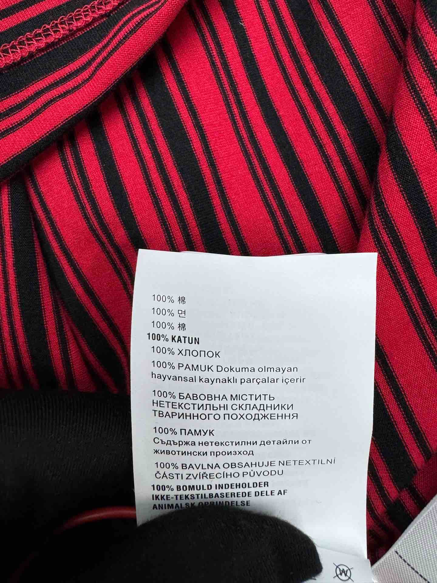 工艺说明:定制奢华60支双股高密条纹纹 全幅以炽热之红与沉稳之黑相碰撞 微妙的光影变化 动感十足 胸前口袋饰以品牌标志作点睛之笔 砂轮打磨技术 处理衣物领口边缘的精细工艺 通过使用专业的砂轮工具对领口进行精细的磨削和打磨 使领口边缘变得光滑且具有细腻的纹理,整体走线平直细腻,面料舒适柔软,颜色一致无色差 能与同款搭配营造时尚造型,驾驭各种场合,定制辅料,三标齐全,男女同款!
