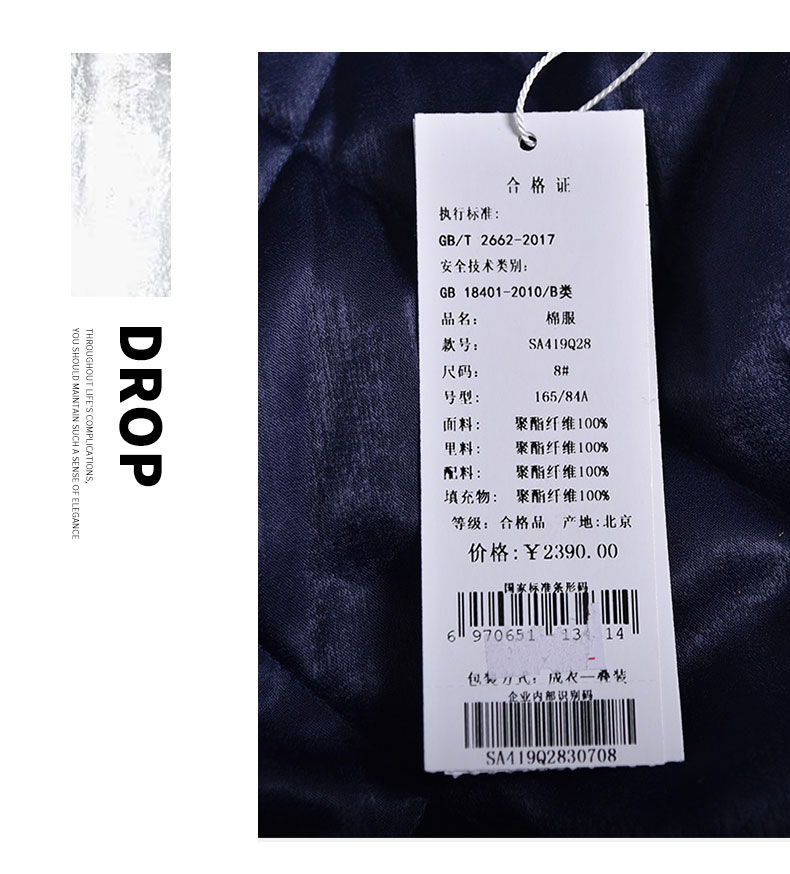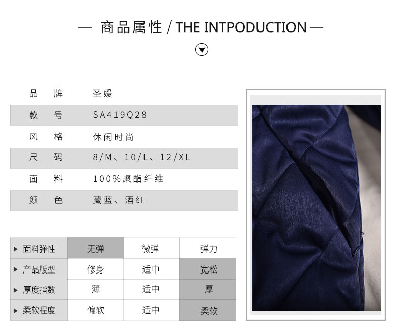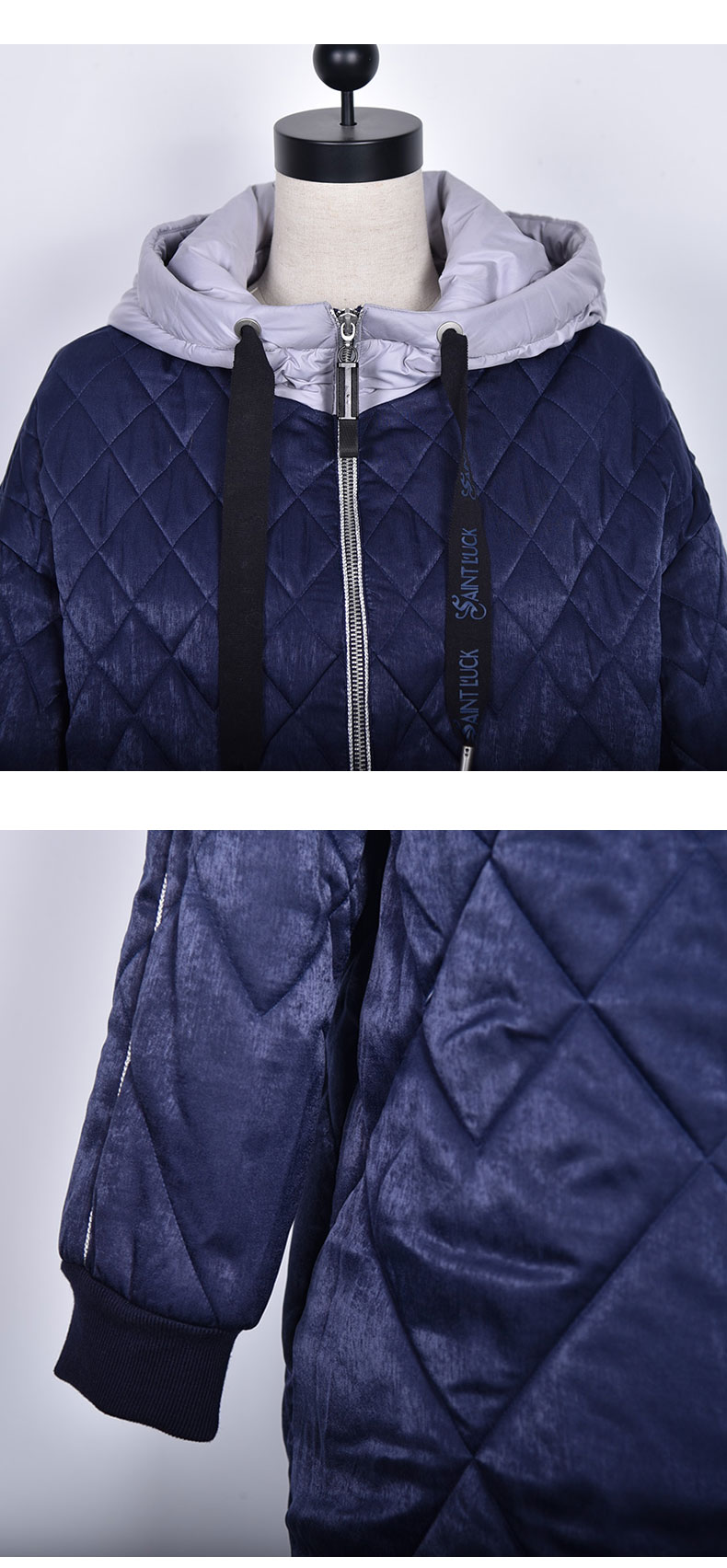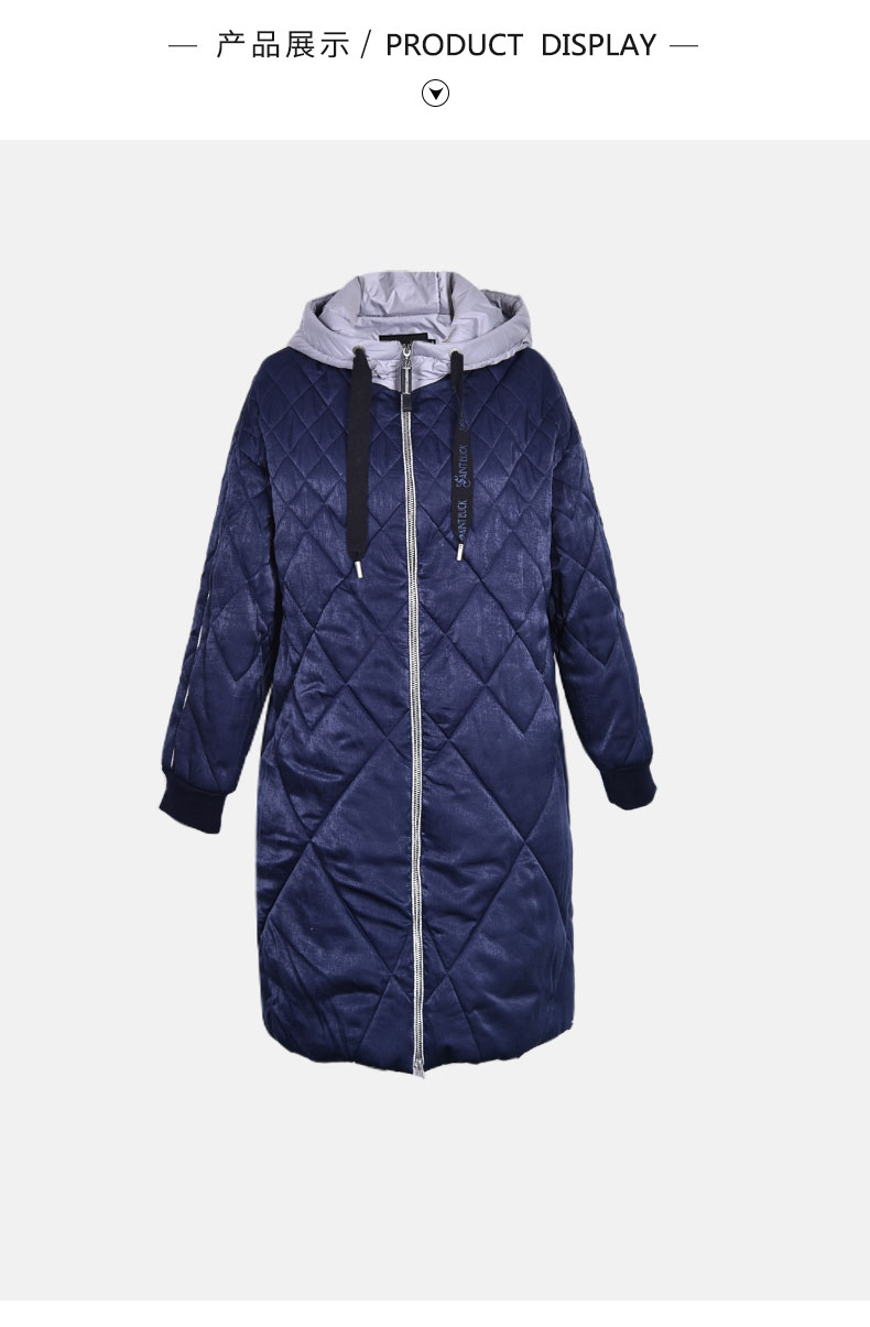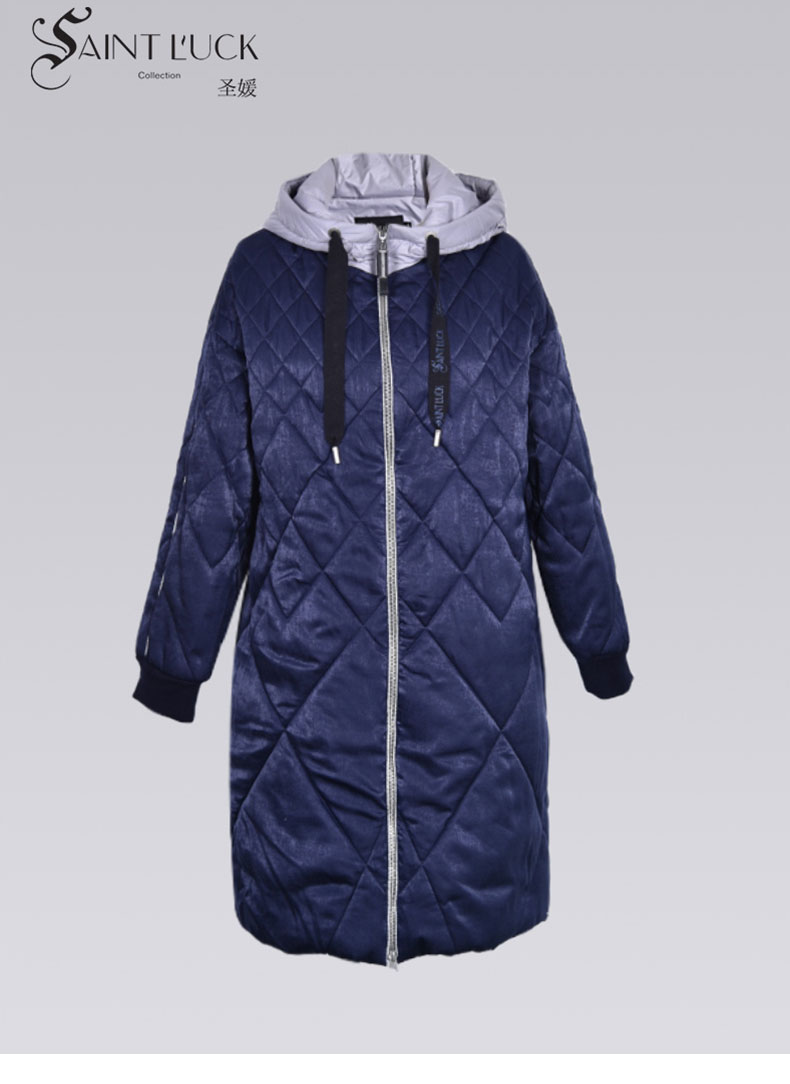SAINT L’UCK/圣媛女装时尚运动光泽感中长款连帽棉服SA419Q28