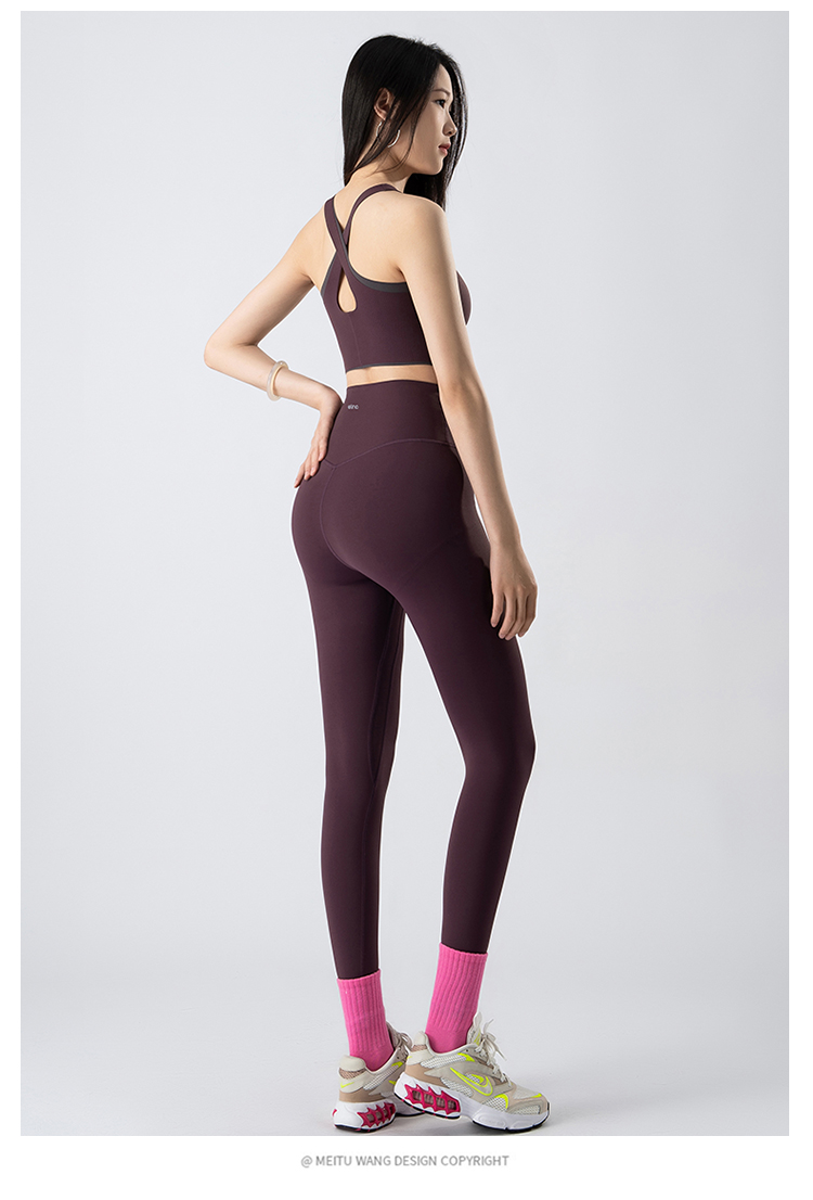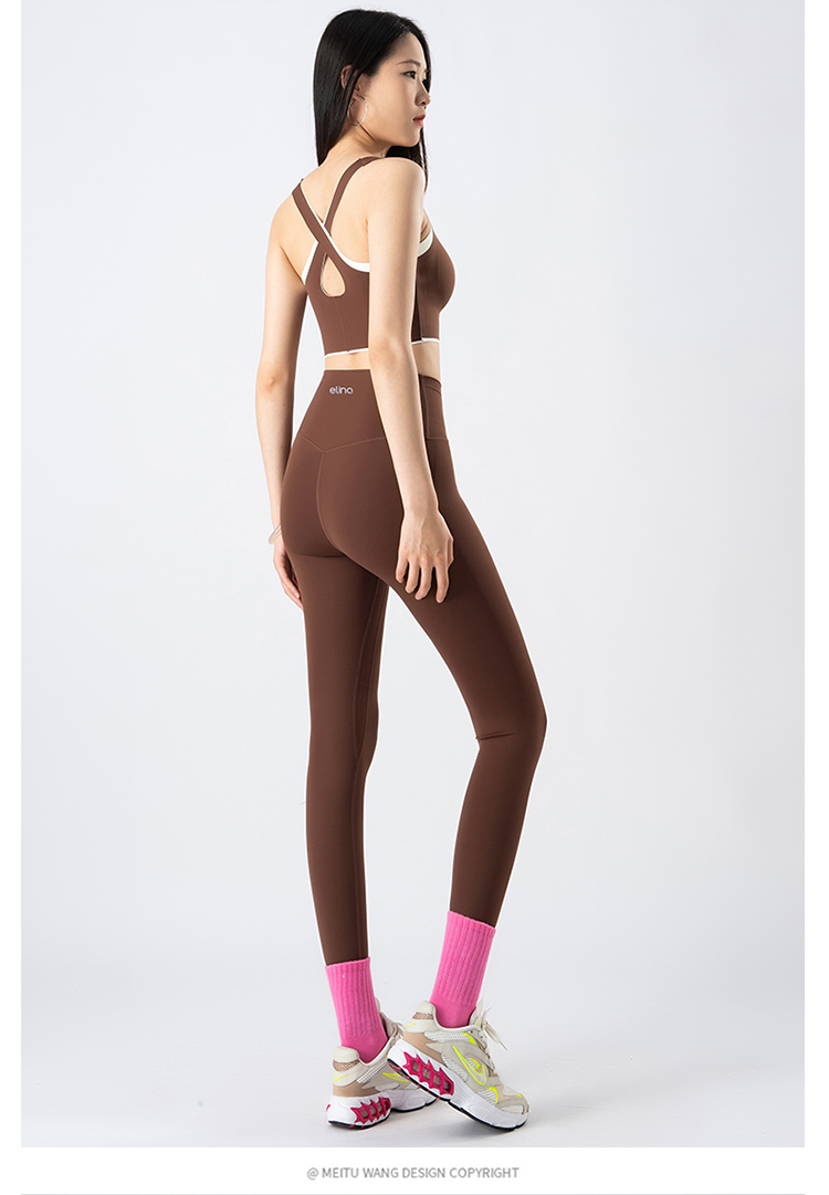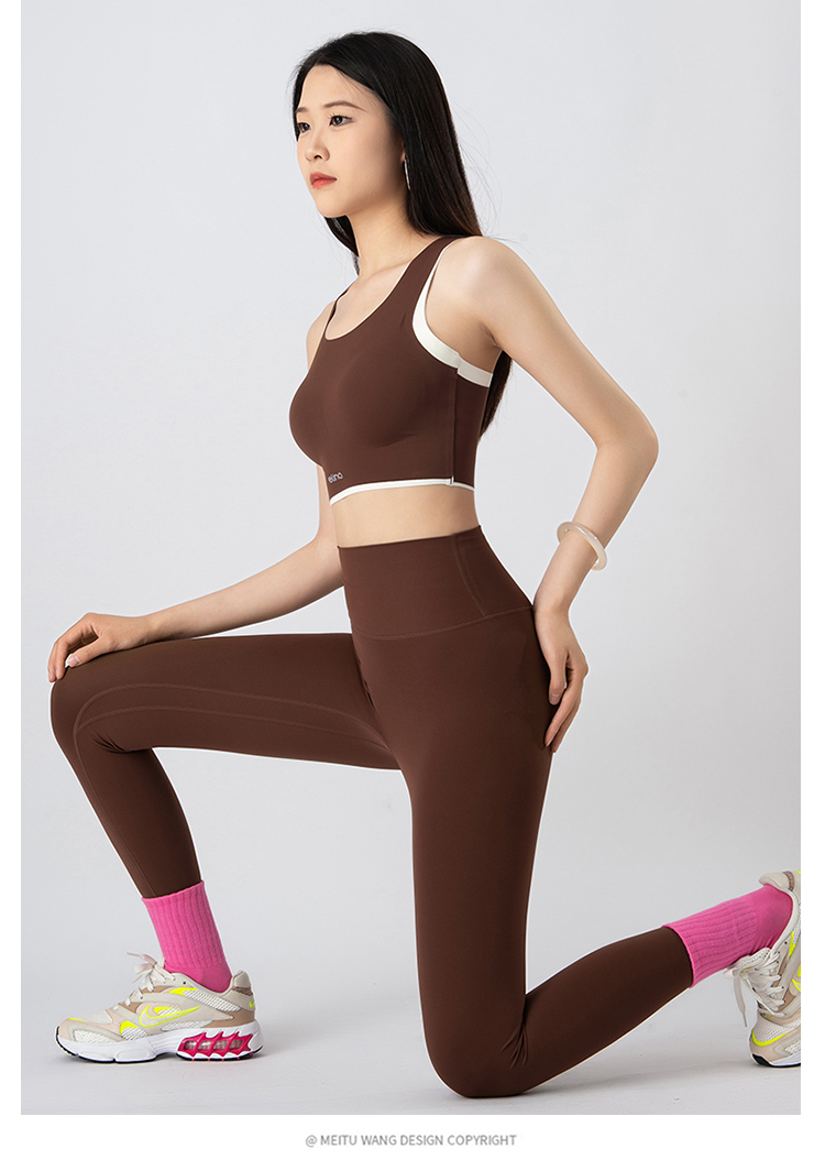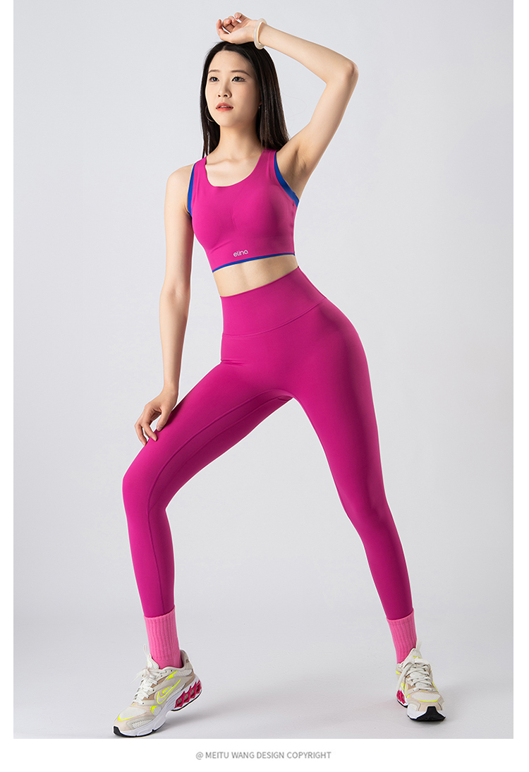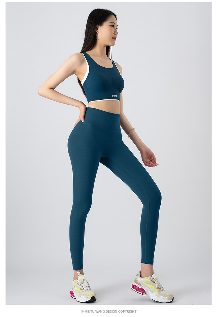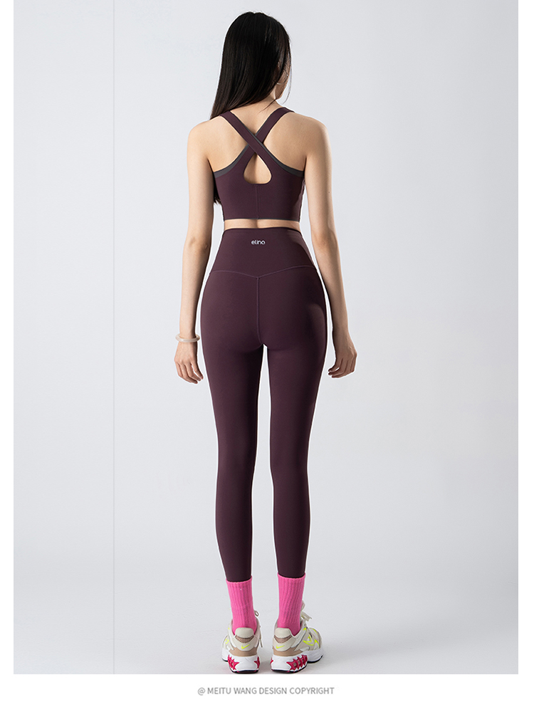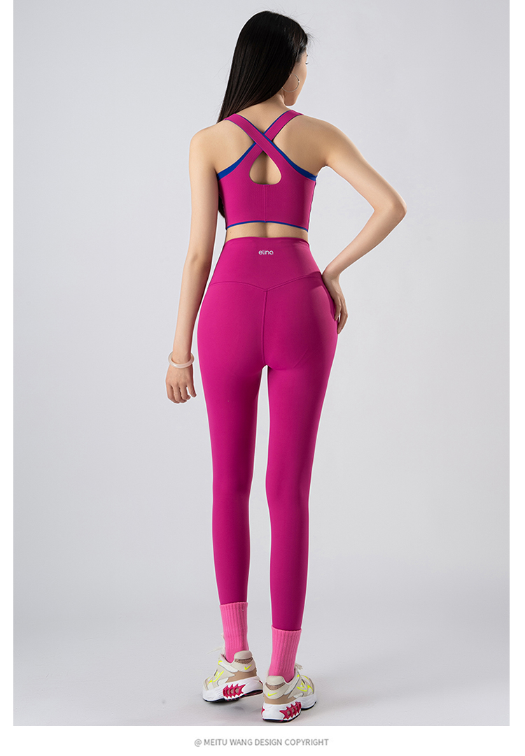 一恋•普拉提 2025春季新款固定杯撞色交叉美背瑜伽背心无T线高腰裸感长裤瑜伽套装EMM017+EMM218
