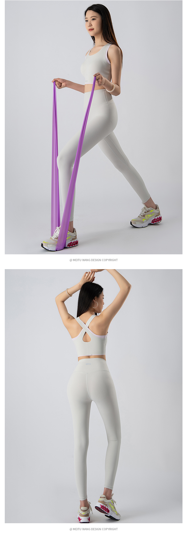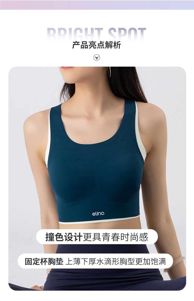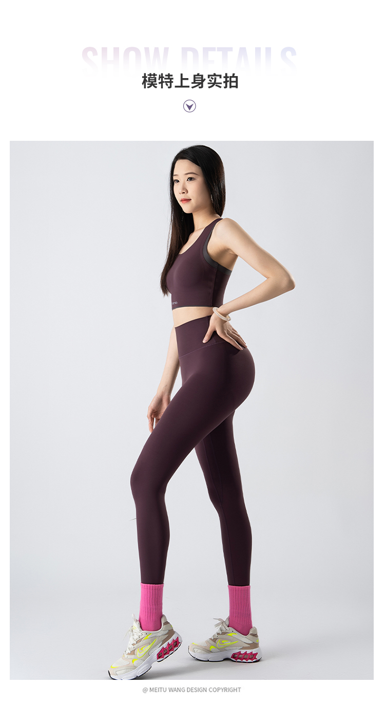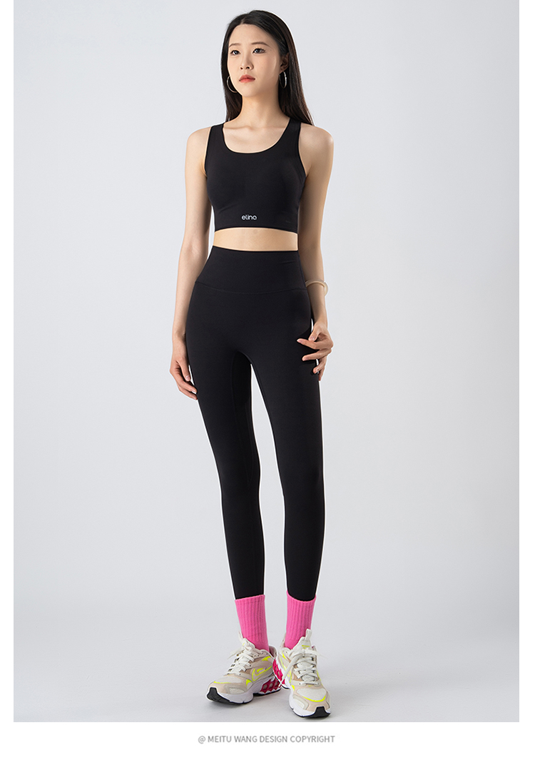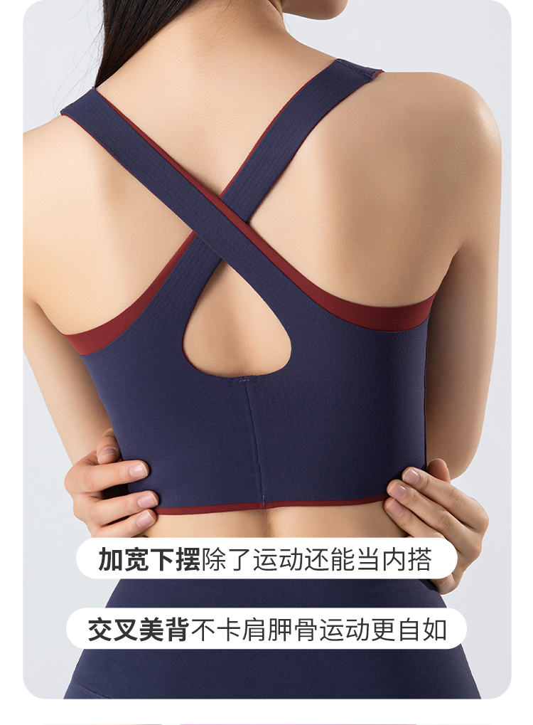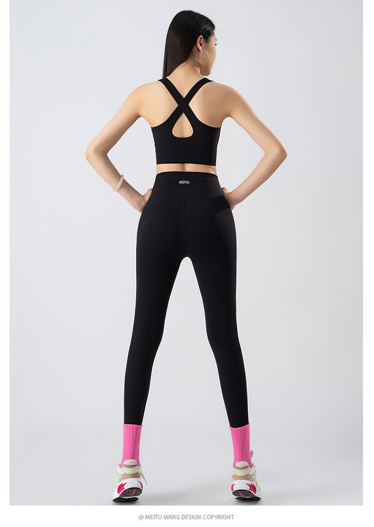 一恋•普拉提 2025春季新款固定杯撞色交叉美背瑜伽背心无T线高腰裸感长裤瑜伽套装EMM017+EMM218