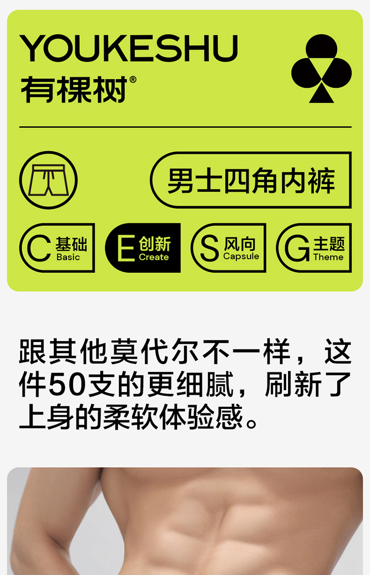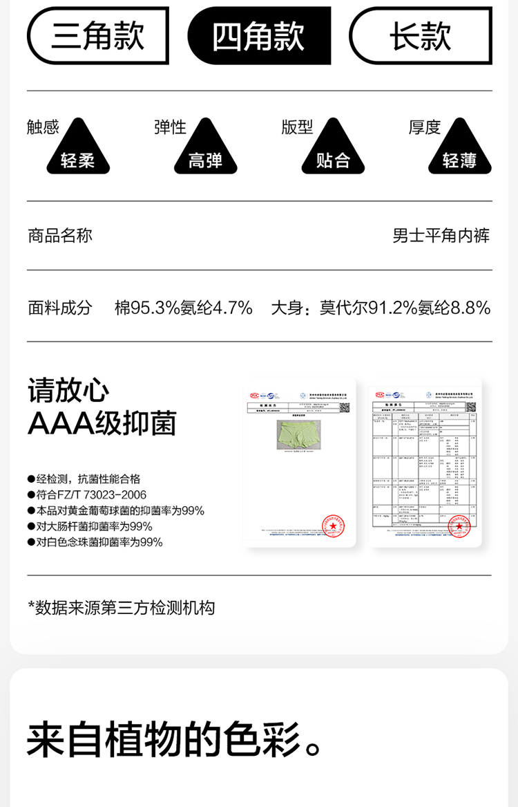 有棵树加大码莫代尔男士四角裤3条装C-U1010