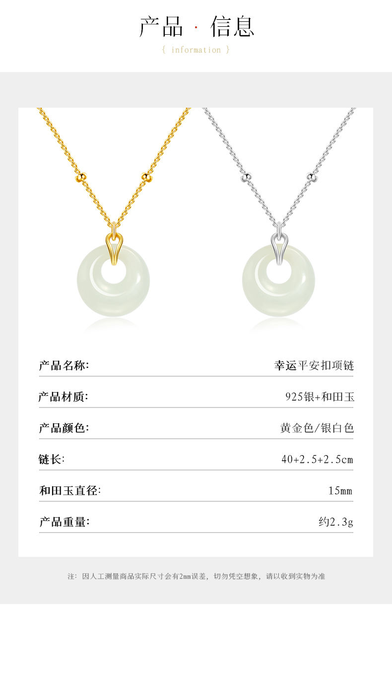 Fanci范琦×宫主【幸运平安扣】s925银项链女和田玉吊坠锁骨链国风小众礼物新中式生日礼物送妈妈送女友