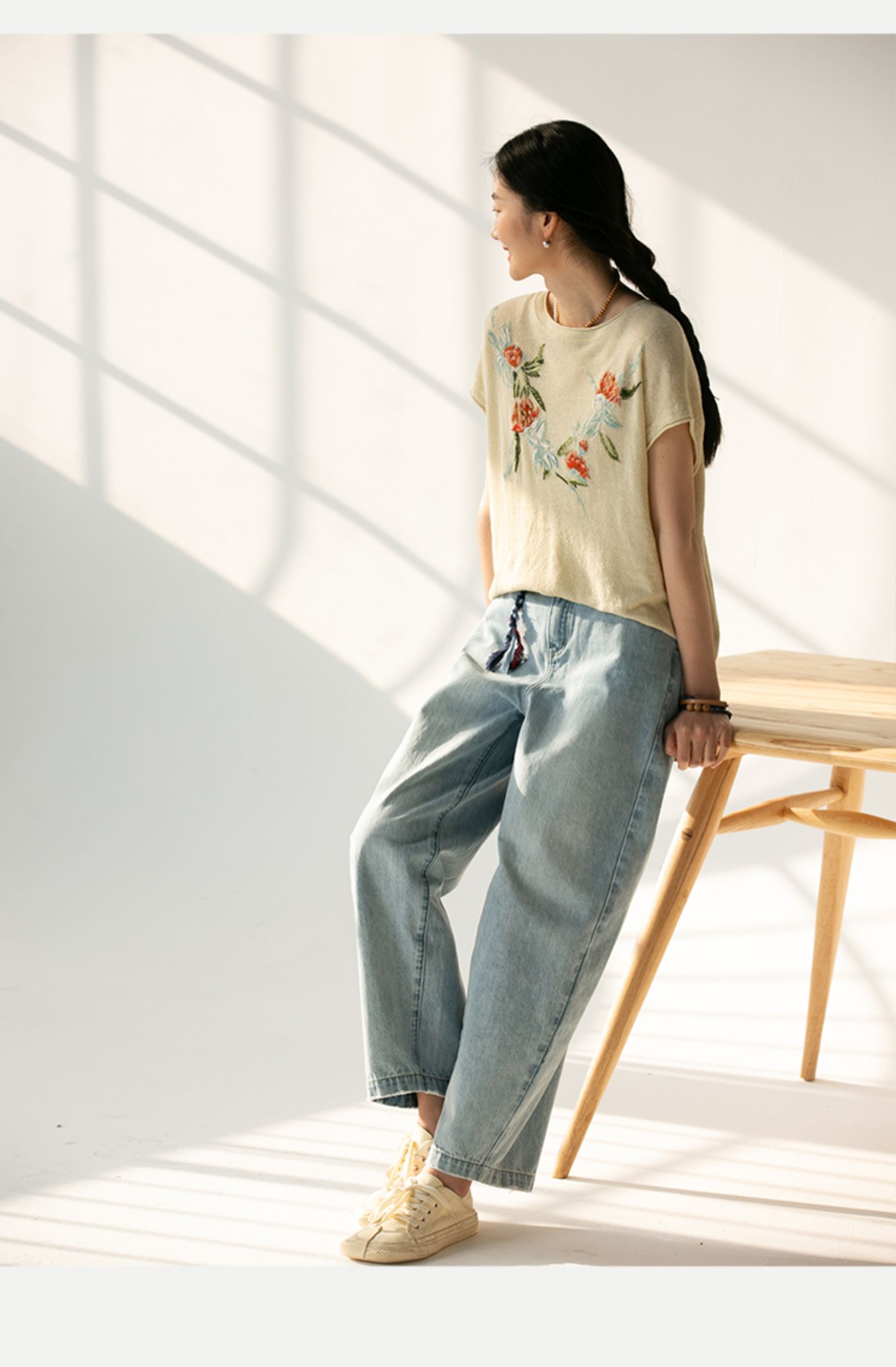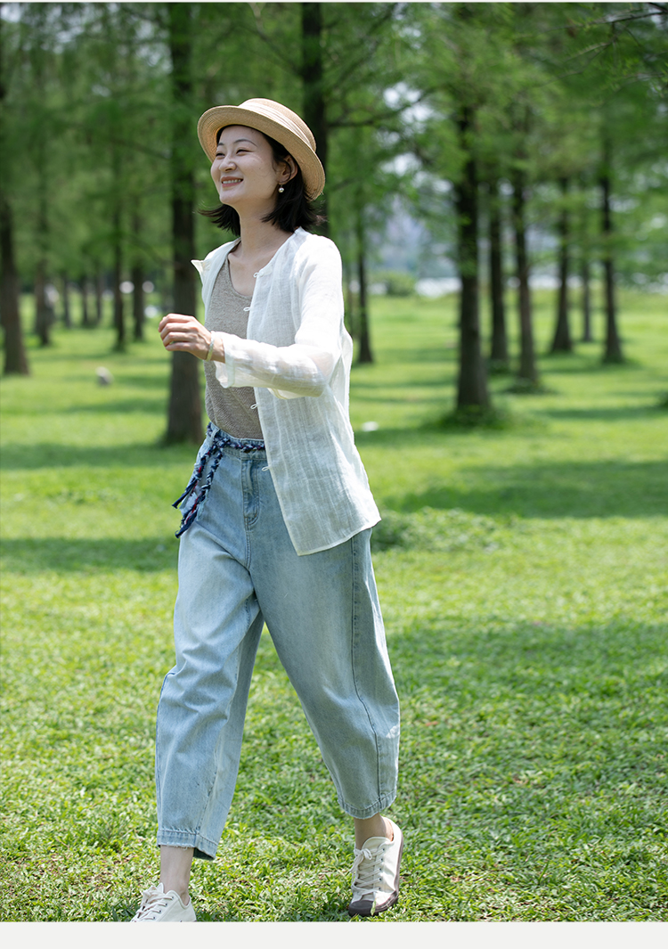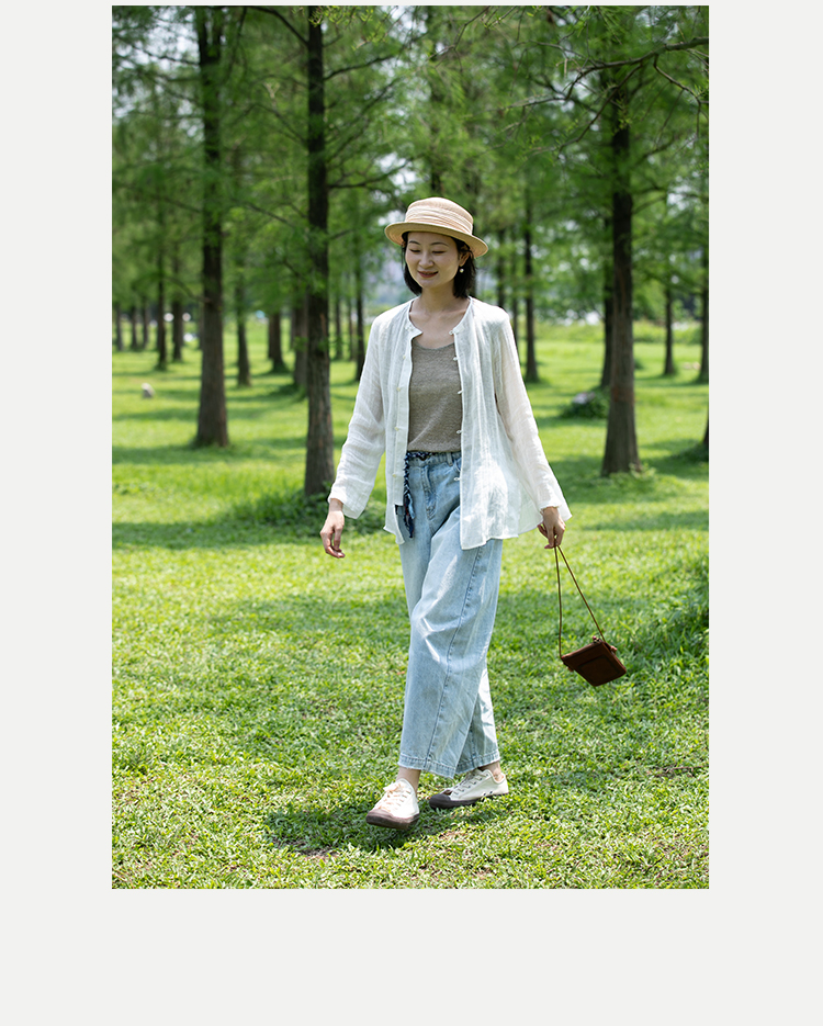 牧衣游原创 机绣苎麻外套女夏新款轻薄透气百搭休闲文艺开衫 早川