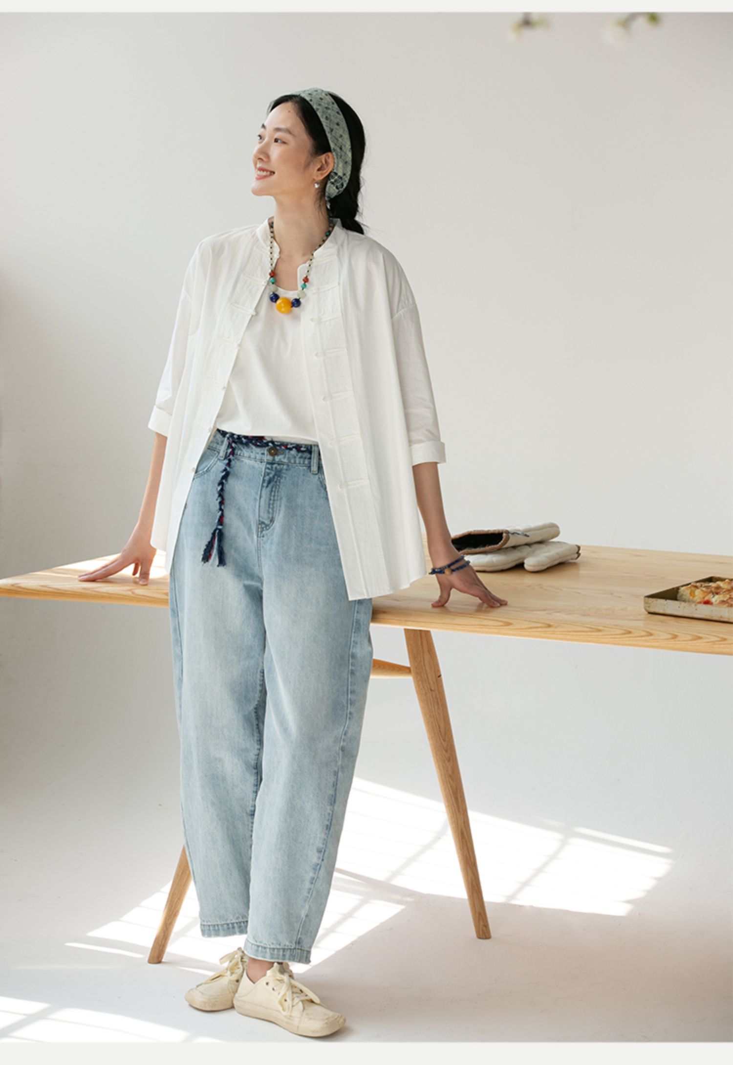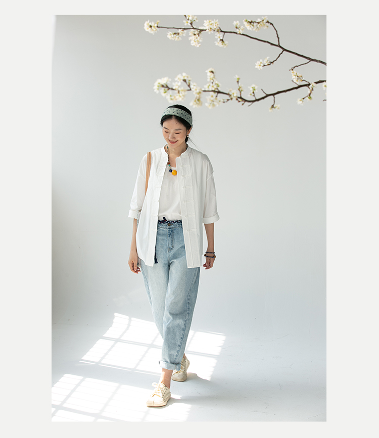 牧衣游原创 丝棉净色衬衫女新款轻薄文艺百搭极简新中式上衣 物空