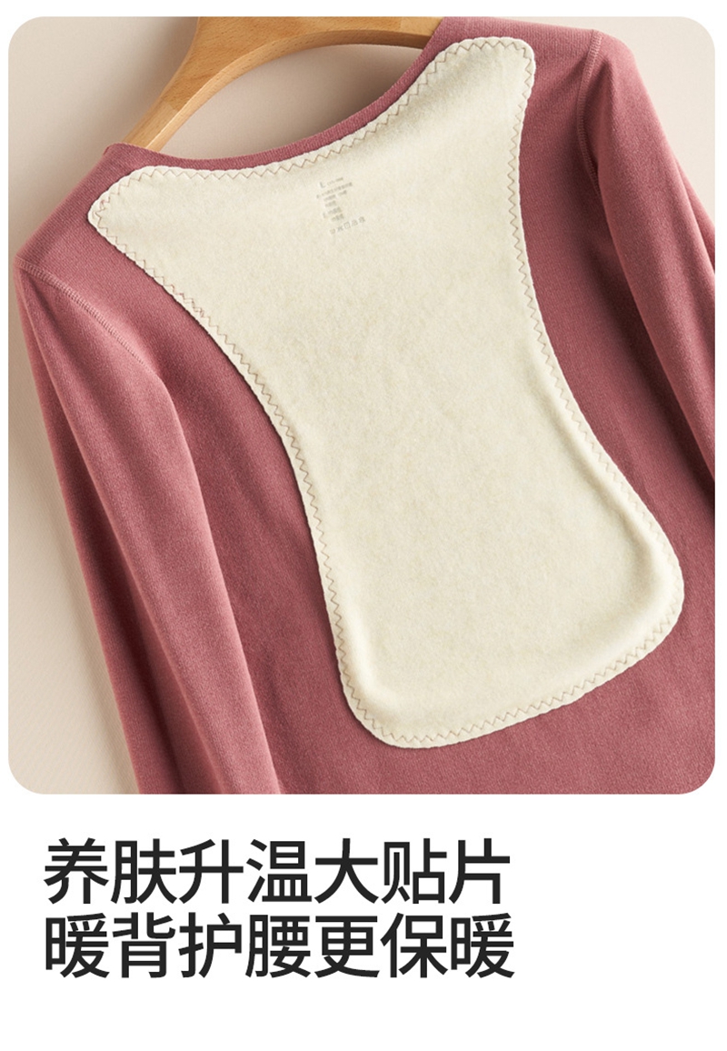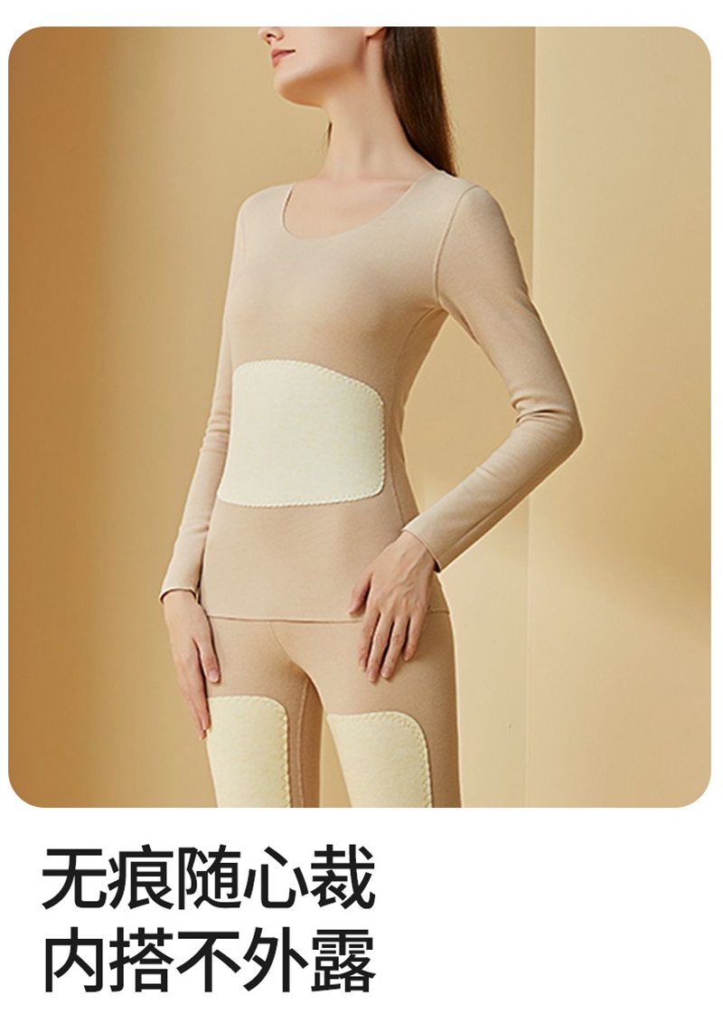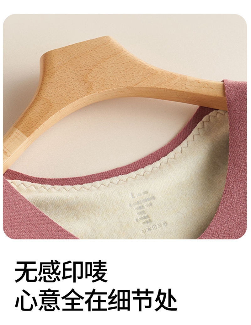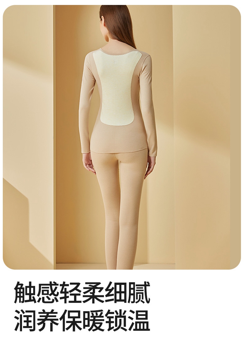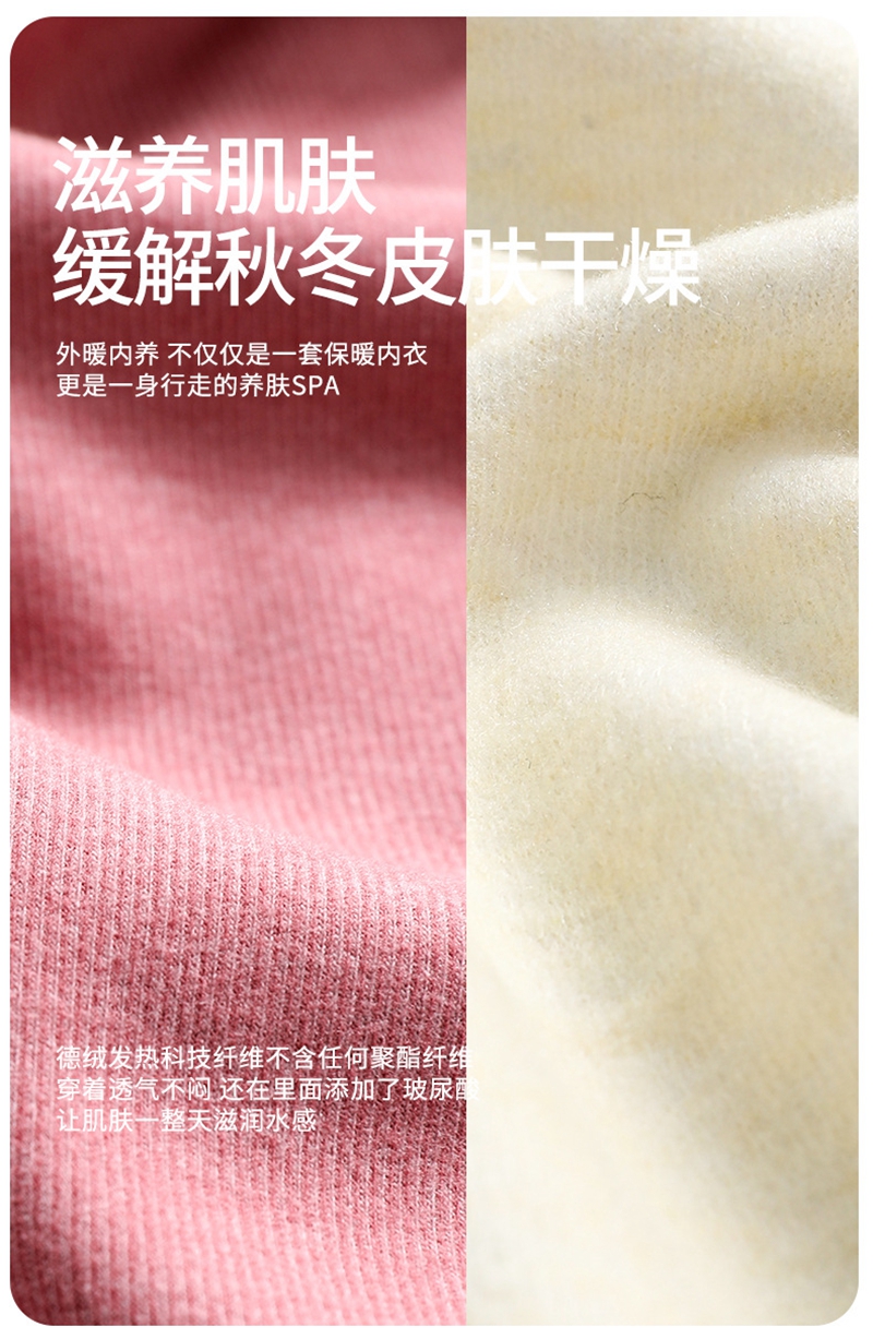 女士保暖套装玻尿酸德绒无痕蚕丝贴圆领长袖保暖内衣
