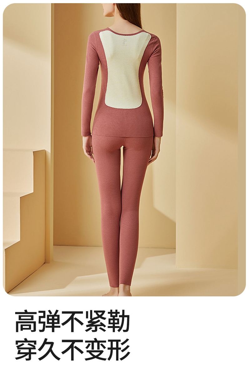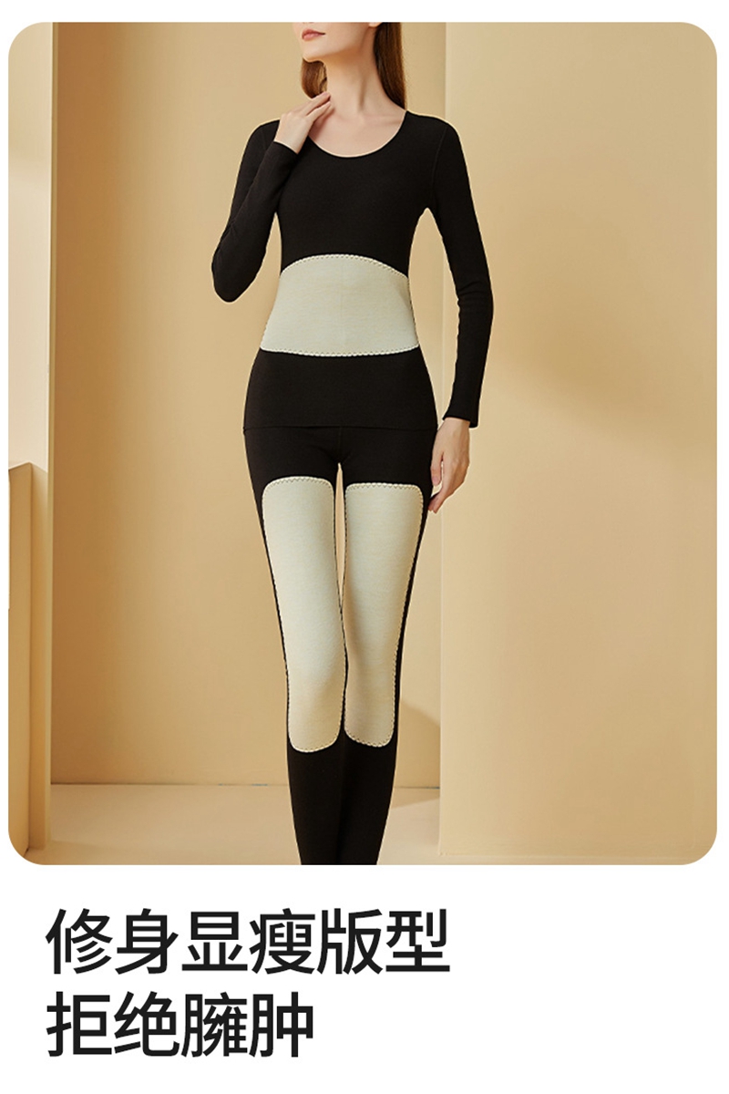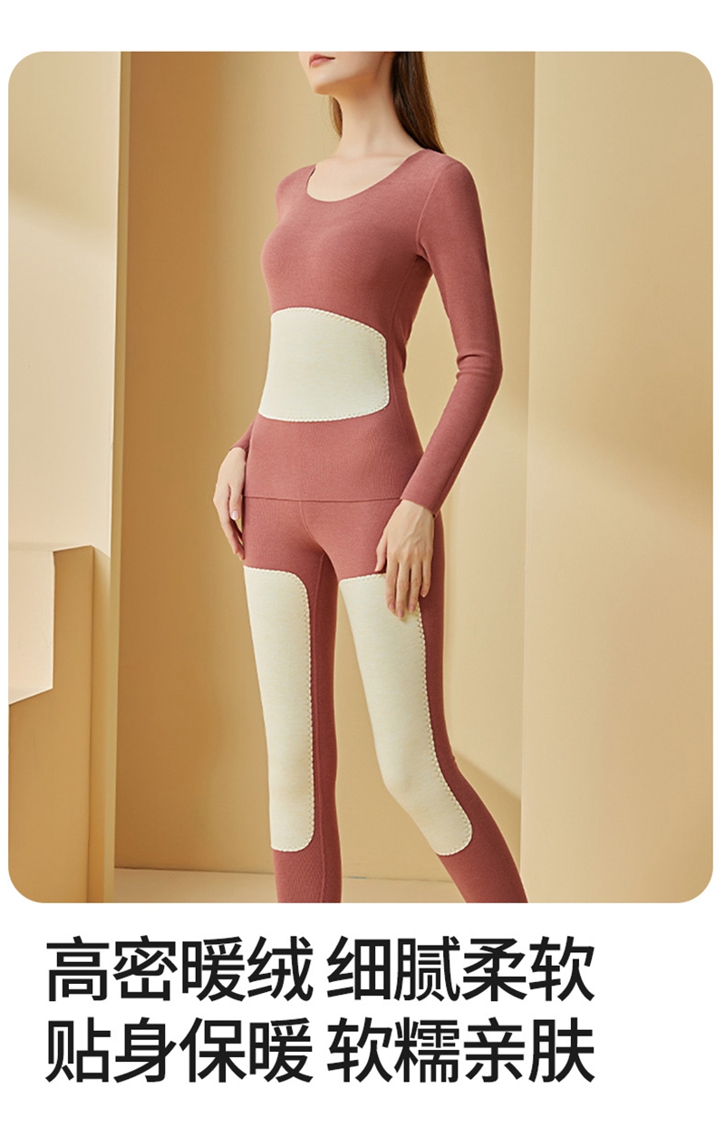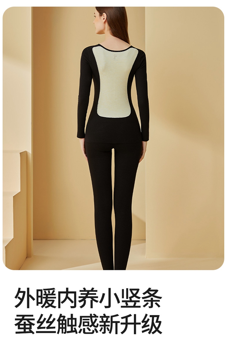 女士保暖套装玻尿酸德绒无痕蚕丝贴圆领长袖保暖内衣
