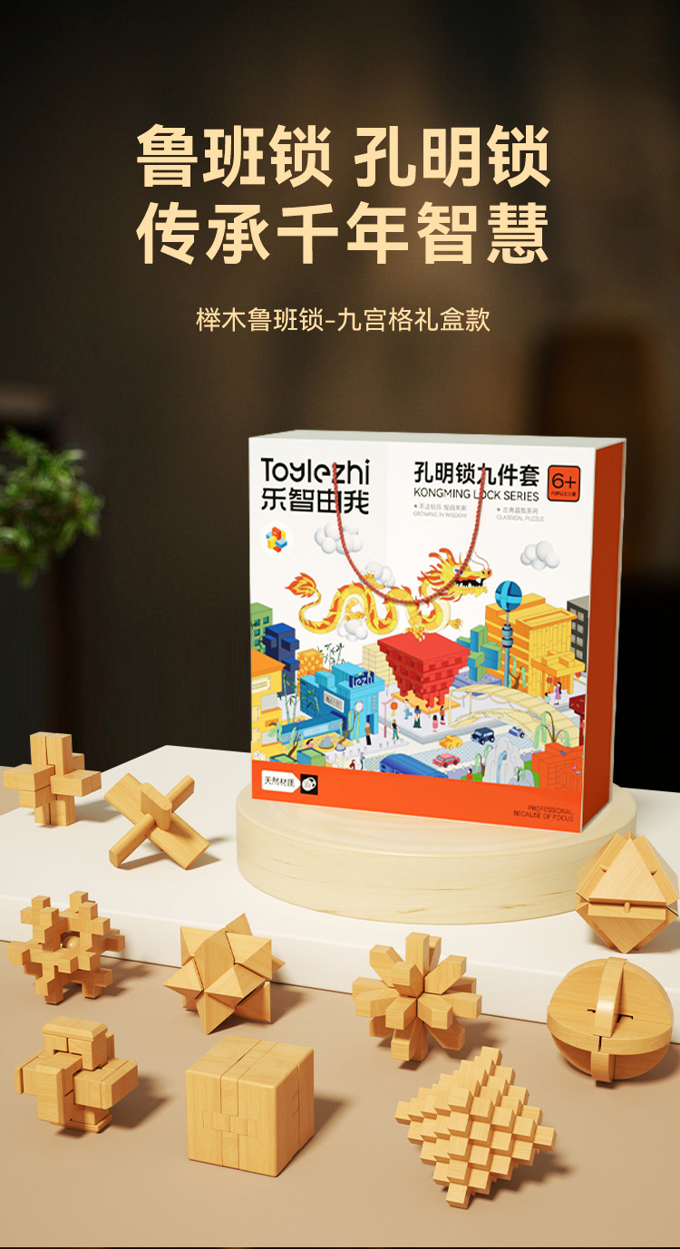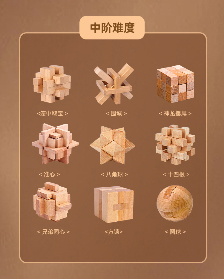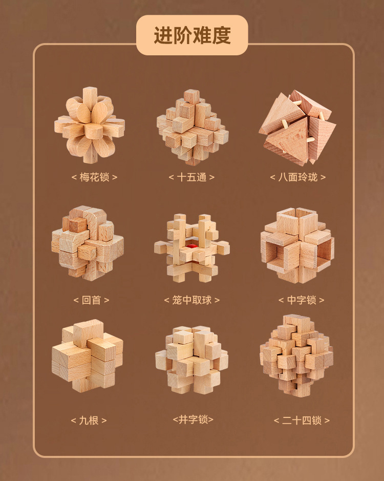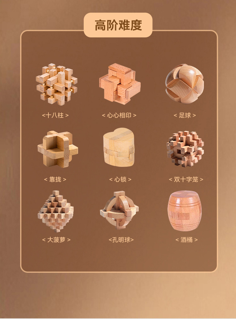 【进阶版孔明锁9件套】欧洲进口榉木孔明锁 感受森林温度 鲁班锁榫卯积木益智玩具礼物