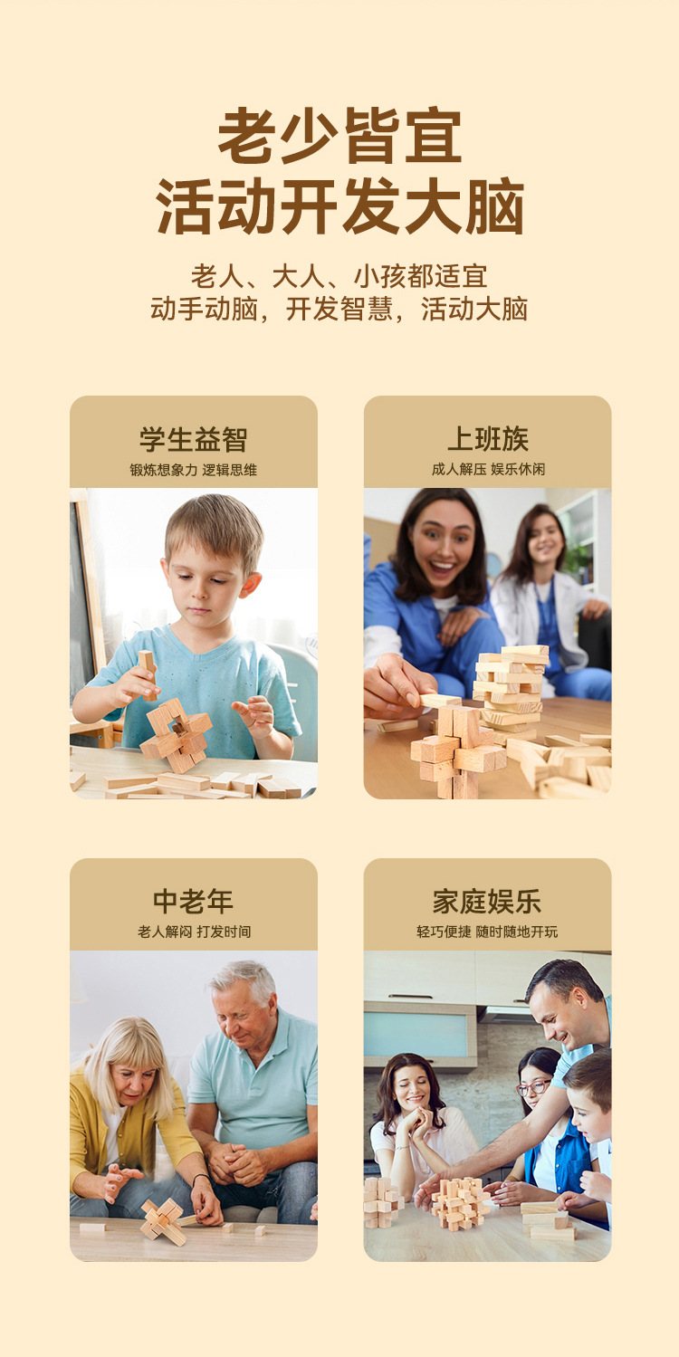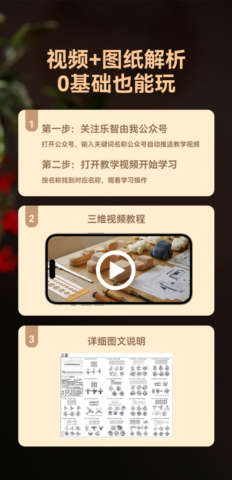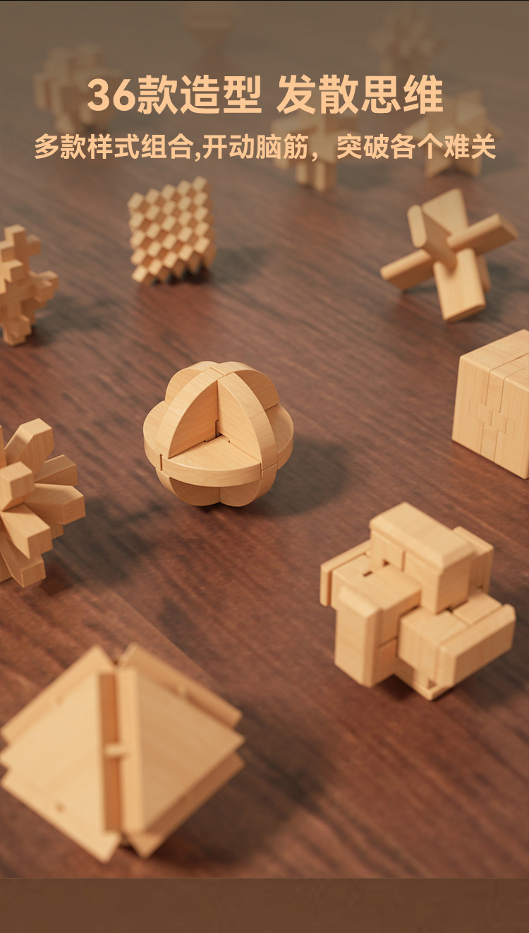 【进阶版孔明锁9件套】欧洲进口榉木孔明锁 感受森林温度 鲁班锁榫卯积木益智玩具礼物