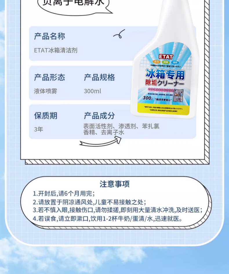 一擦即净 除臭祛味 冰箱除味清洁剂去污去霉专用清洗除臭除异味家用