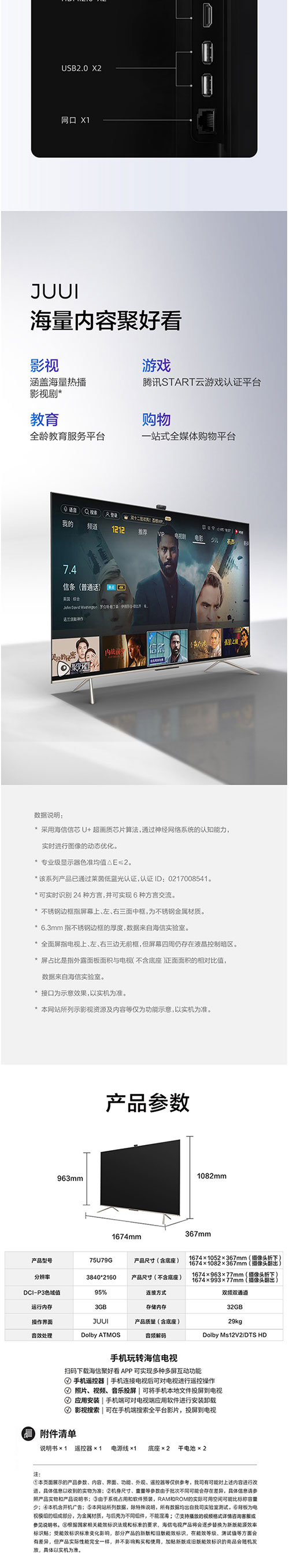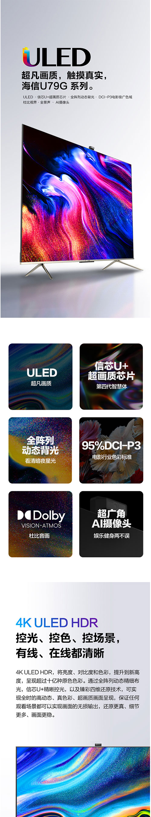海信电视 ULED信芯U+超画质芯片全阵列动态背光杜比音画超广角AI摄像头社交电视 U79G 65U79G