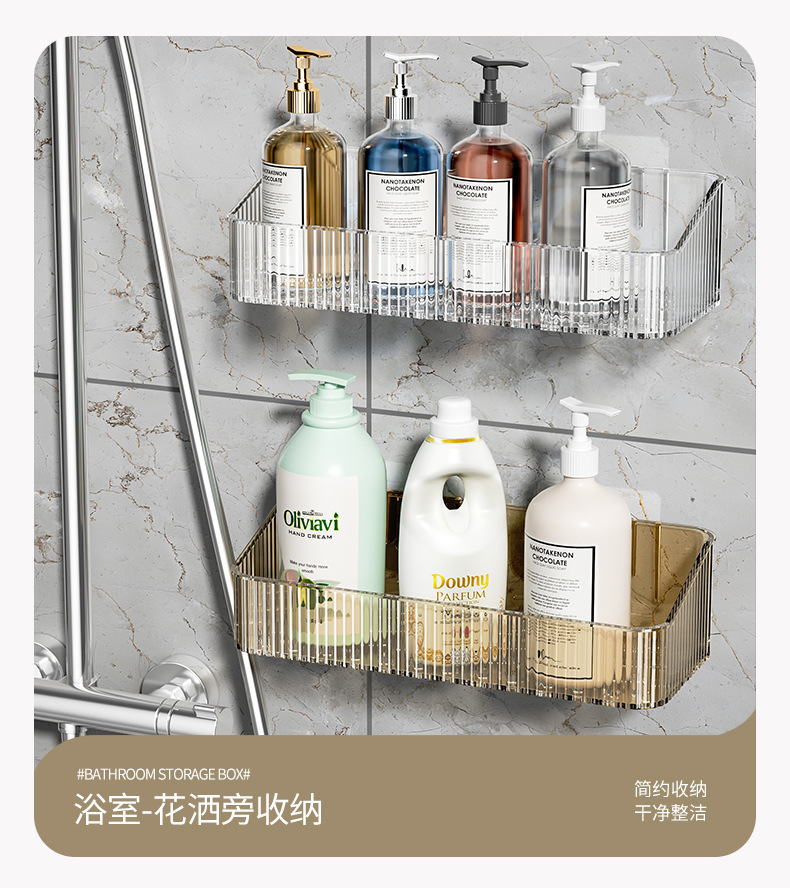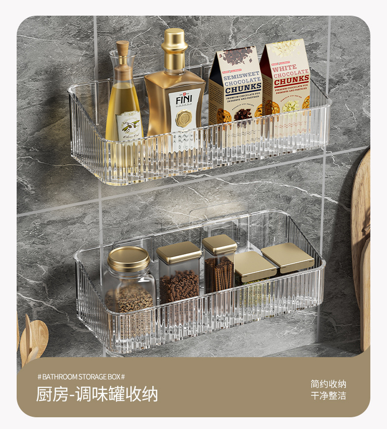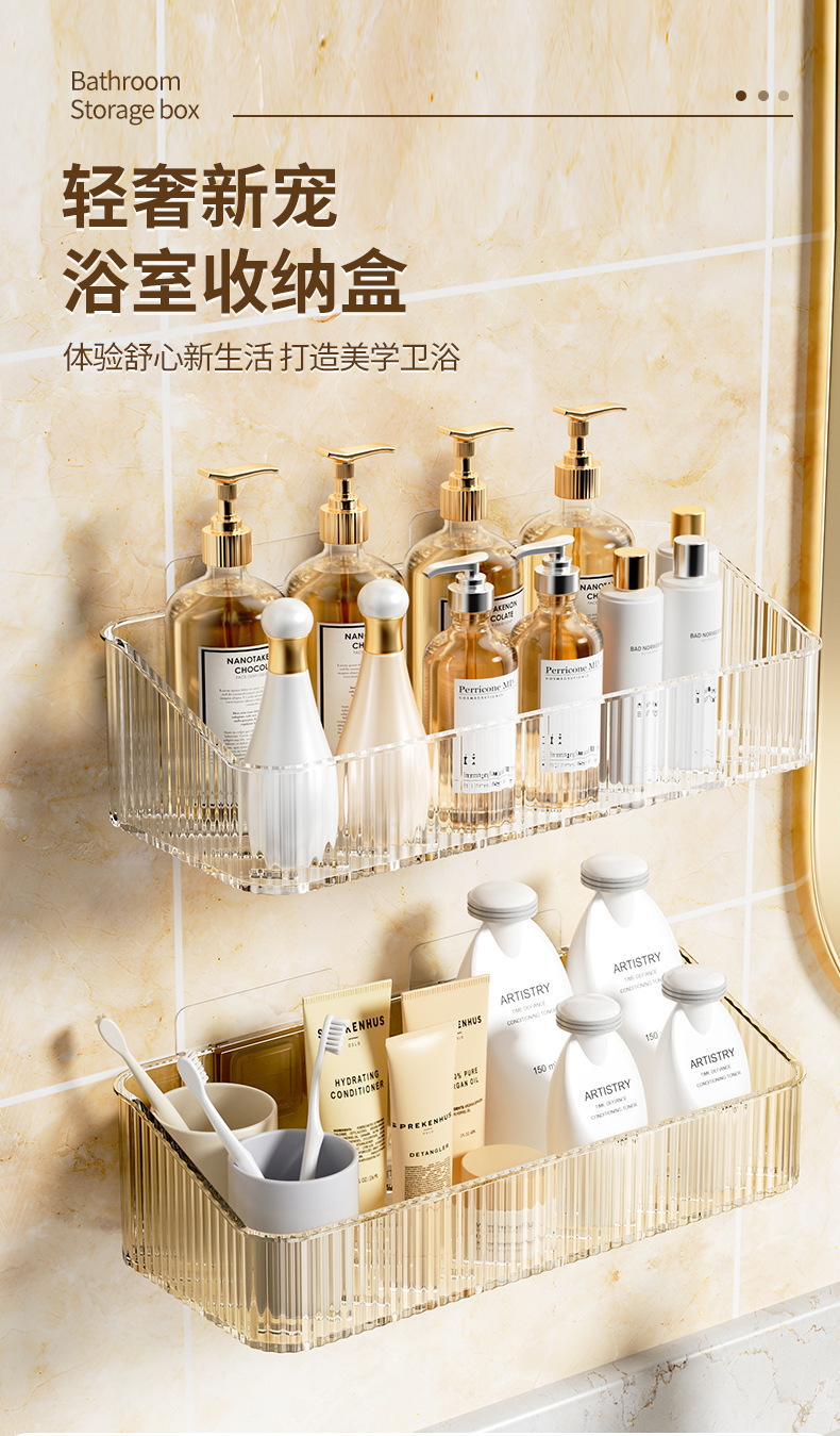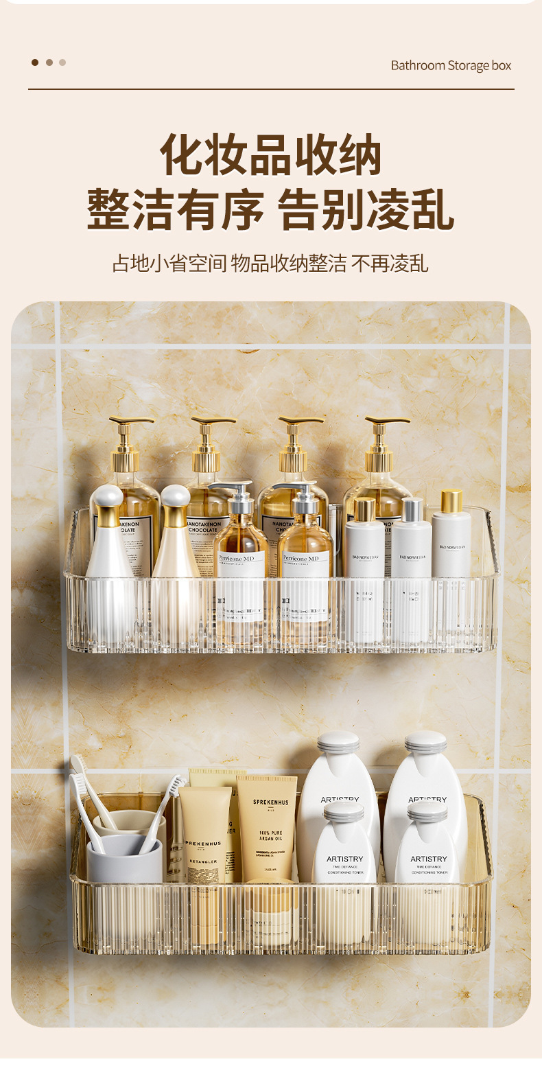 卫生间收纳盒子壁挂免打孔日用餐厨托盘洗漱台收纳轻奢浴室置物架 商品图5