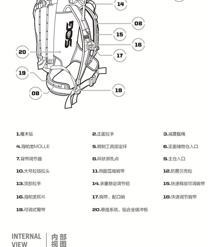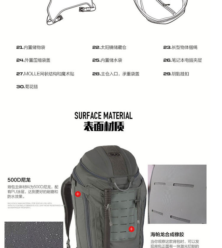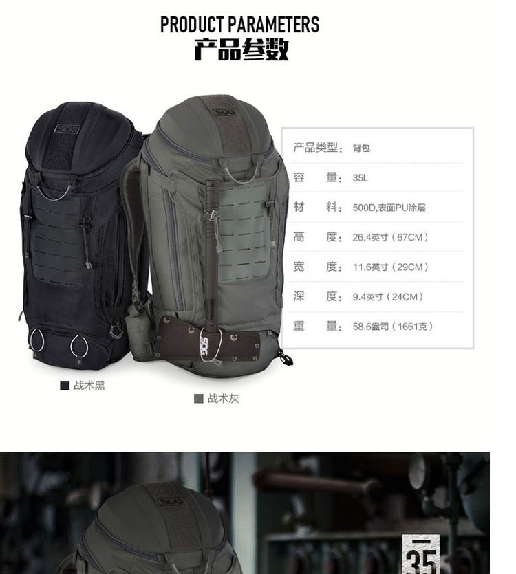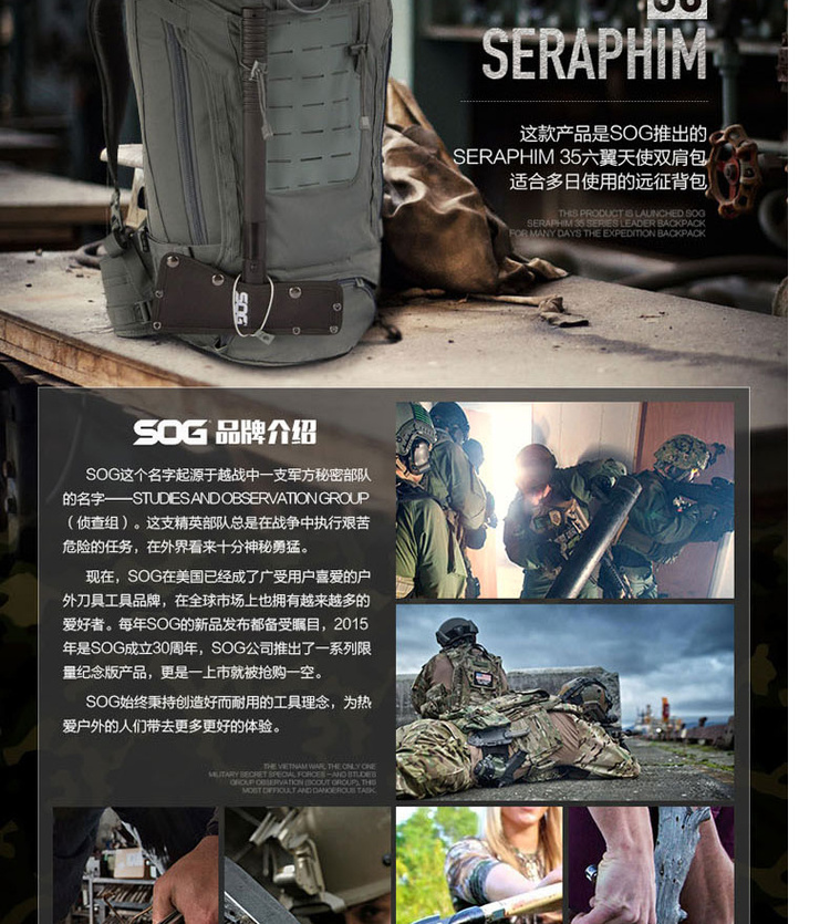 SOG 六翼天使35L户外战术攻击双肩背包 军迷户外野营旅行大背包