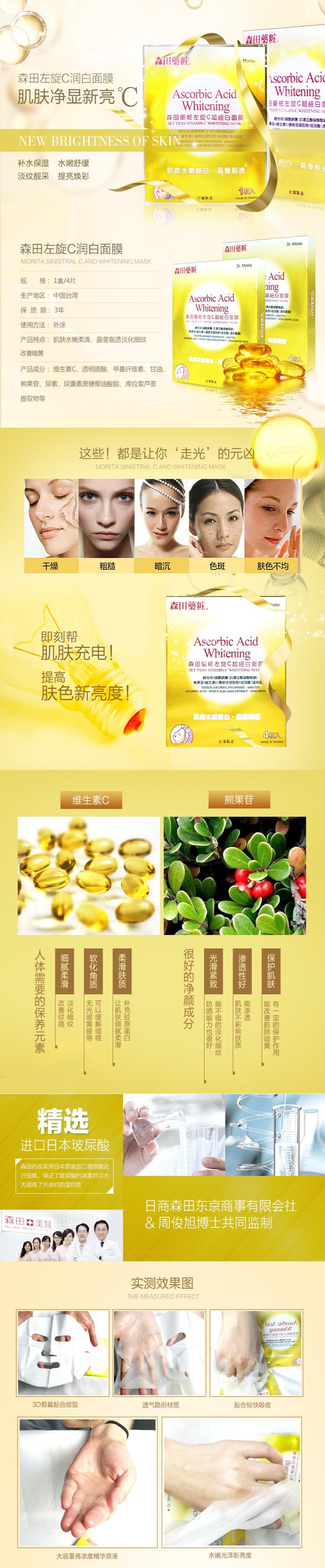 森田左旋C润白面膜4片