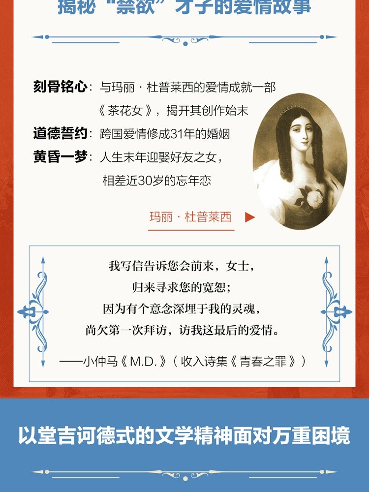 法语ŒDIPE的意思是“俄狄浦斯”,而小仲马一生却表现为“反俄狄浦斯者”,与父亲紧密相伴。书中披露大量私人信件,揭开小仲马与乔治·桑、雨果、龚古尔、大仲马,甚至拿破仑等人的交往细节,为我们抽丝剥茧,完整呈现小仲马从一名饱受冷眼的私生子到法国现实主义文学先驱的成长历程,其复杂的情感世界、极高的文学才情,以及坚定的精神追求,力图为小仲马被长期低估的文学成就辩护。我们会发现一个复杂的作家形象,他既为失足的女性辩护,又抨击败坏的风俗;他是一位热情和善的朋友,叛逆又孝顺的儿子,更是一位孤独且灿烂的天才。他与书刊机关、剧院经理以及好友之间的通信也充分反映出19世纪文坛风貌。本书还附有插图,呈现书中重要人物和场景。