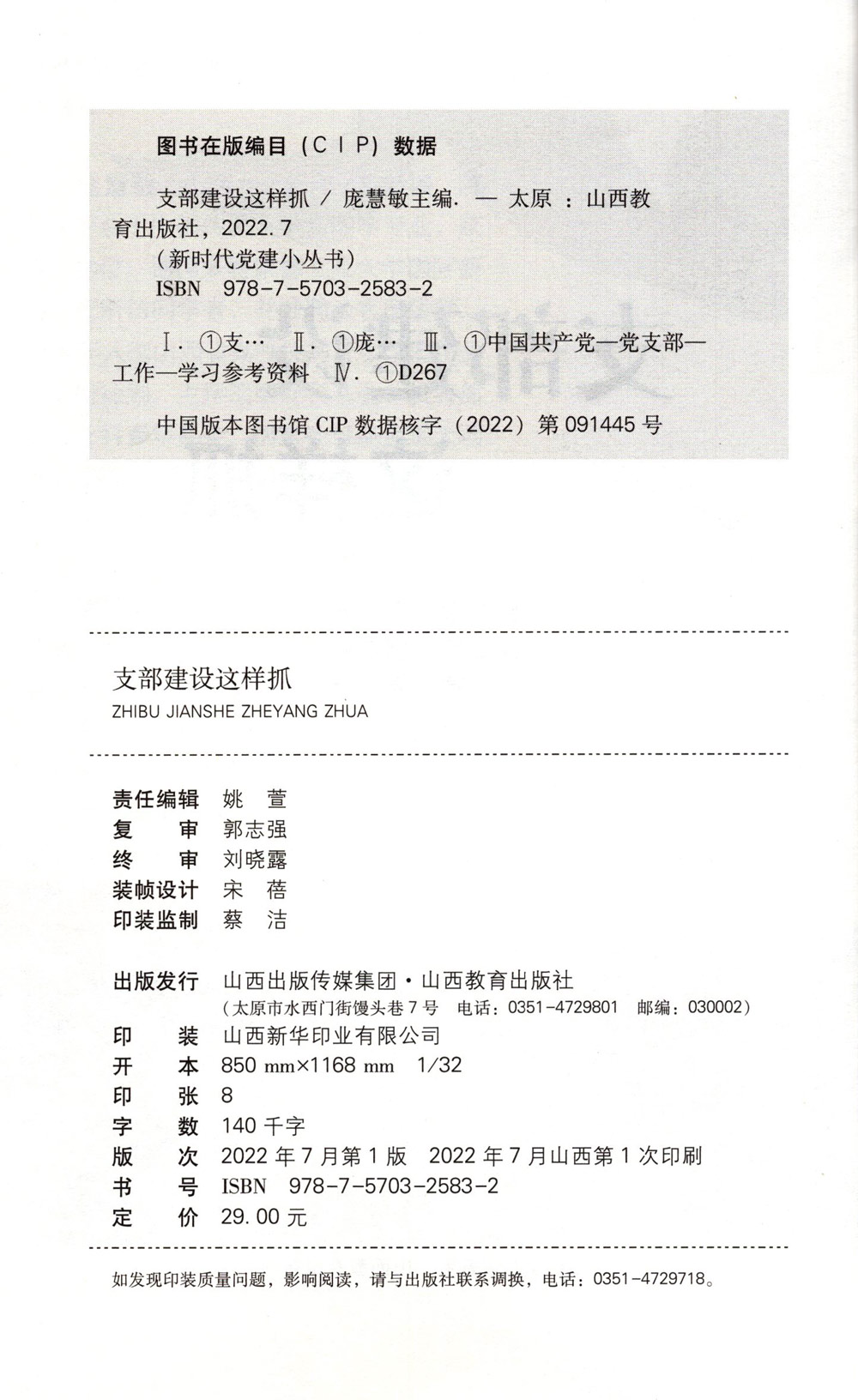 正版 新时代党建小丛书 支部建设这样抓 党支部工作学习 庞慧敏主编 山西教育出版社出版