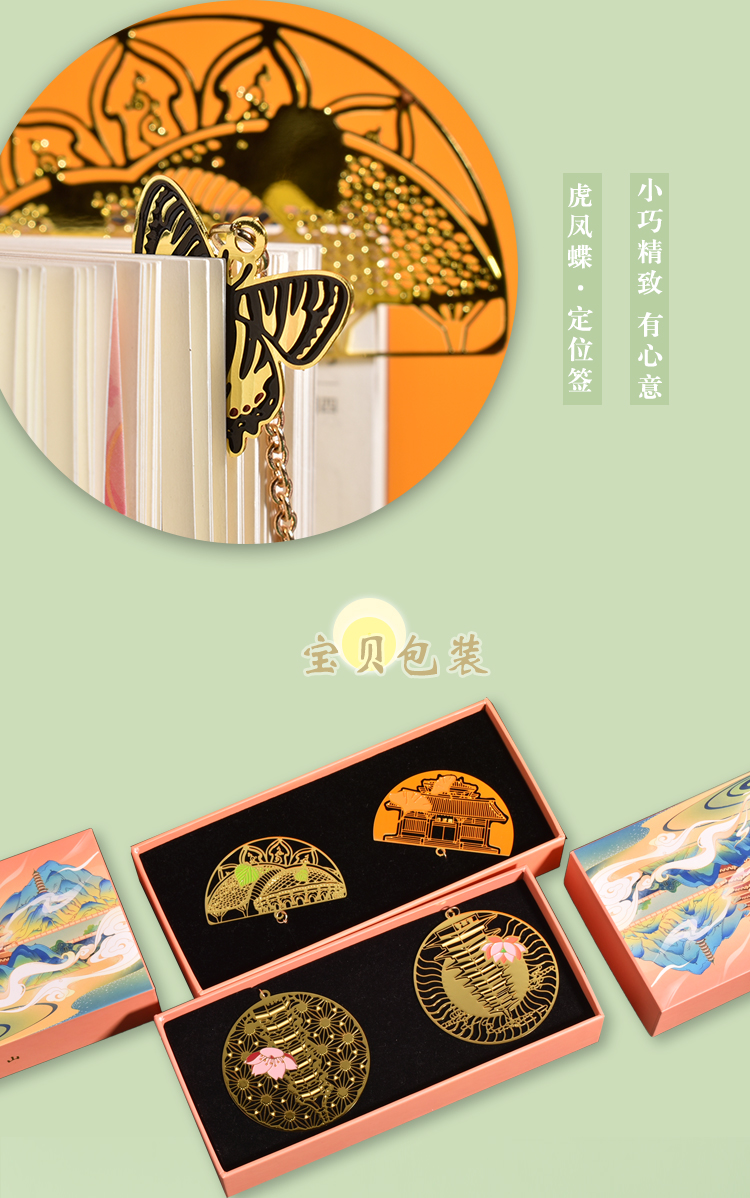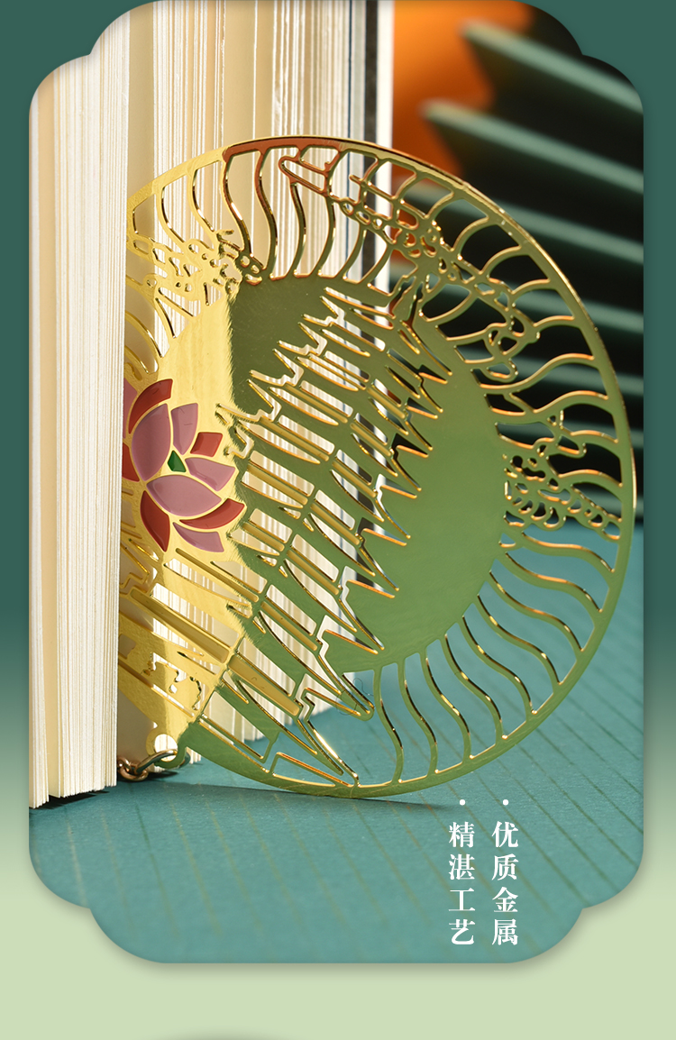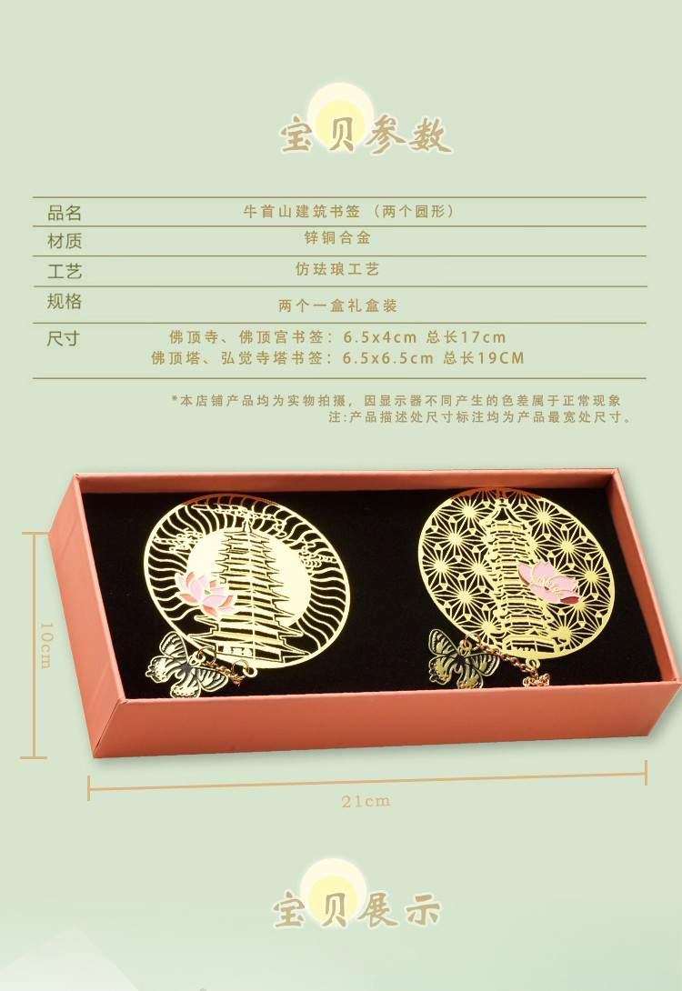 牛首山文创佛顶塔宫圆形金属镂空书签国潮礼品南京景点生日礼物送