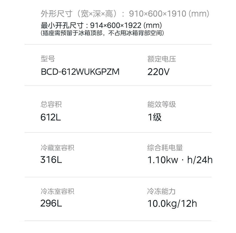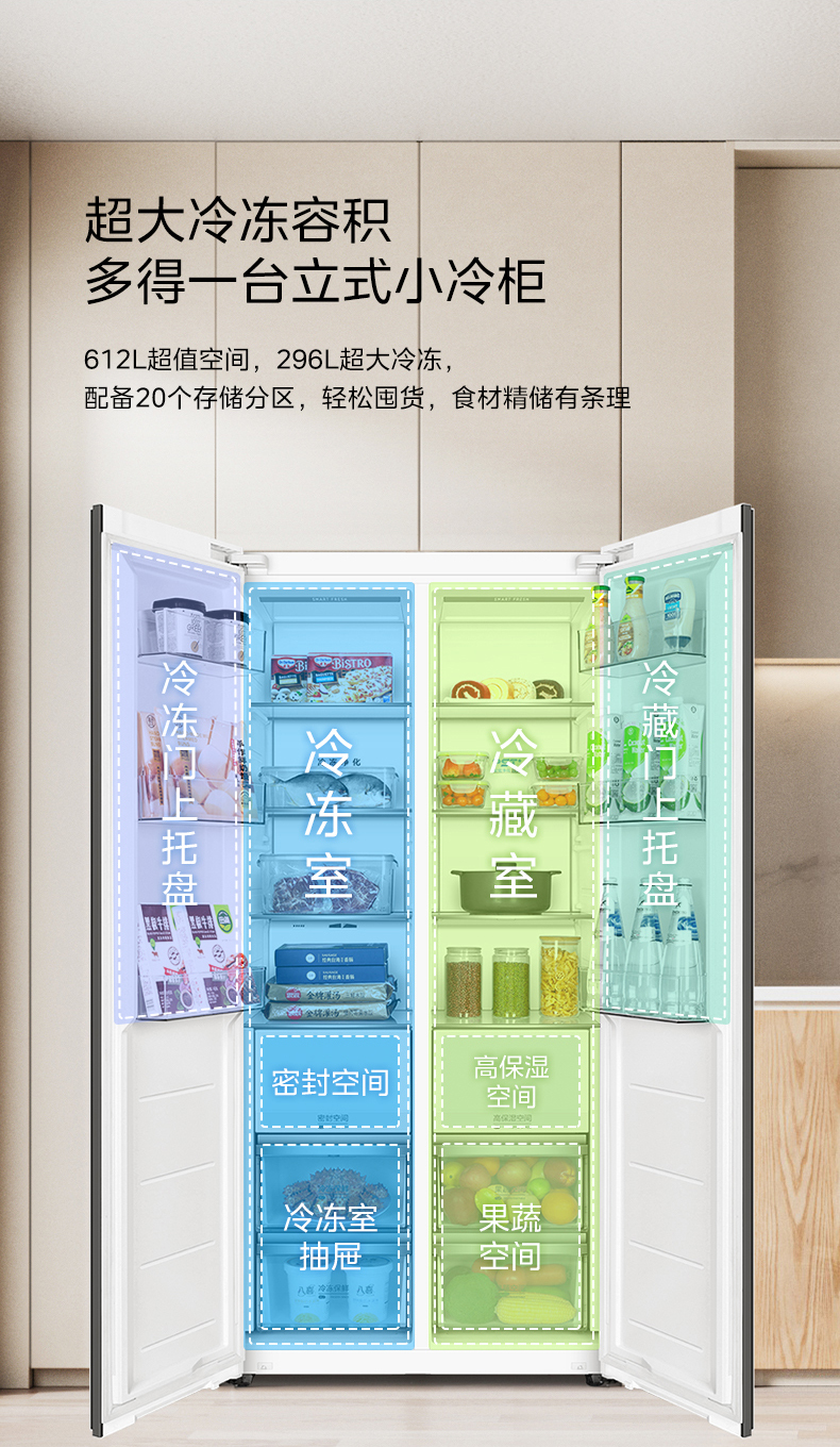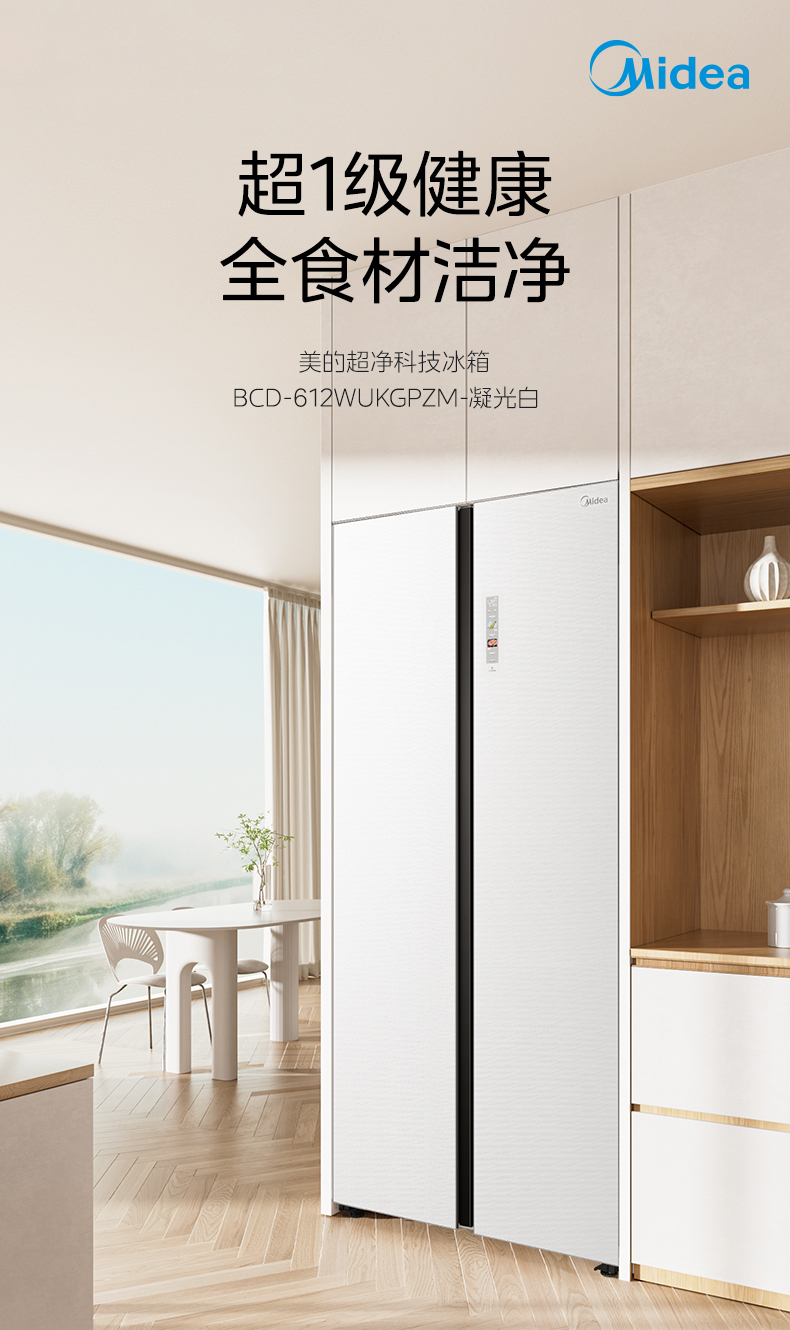 美的 冰箱 BCD-612WUKGPZM 凝光白