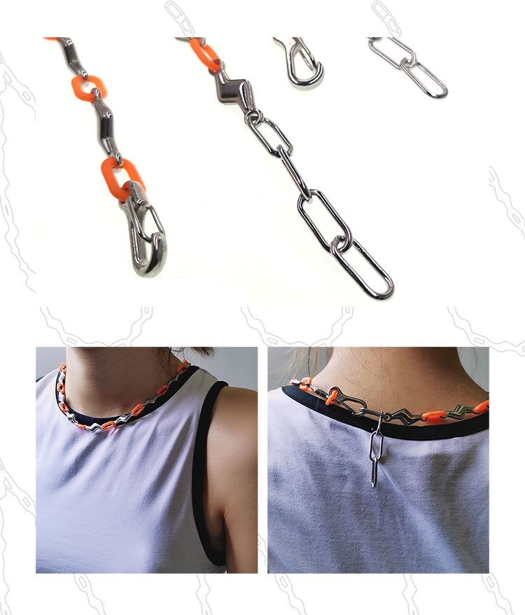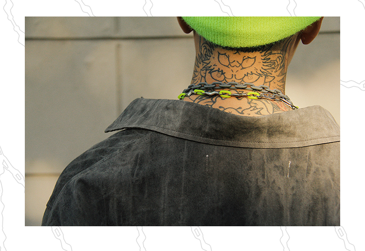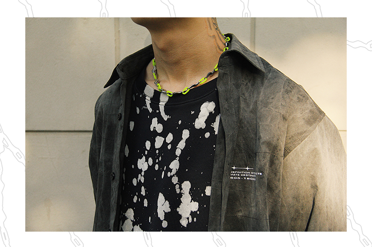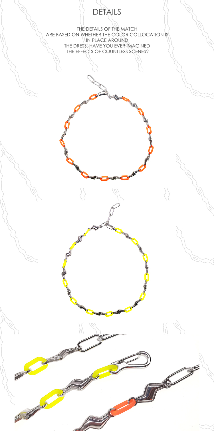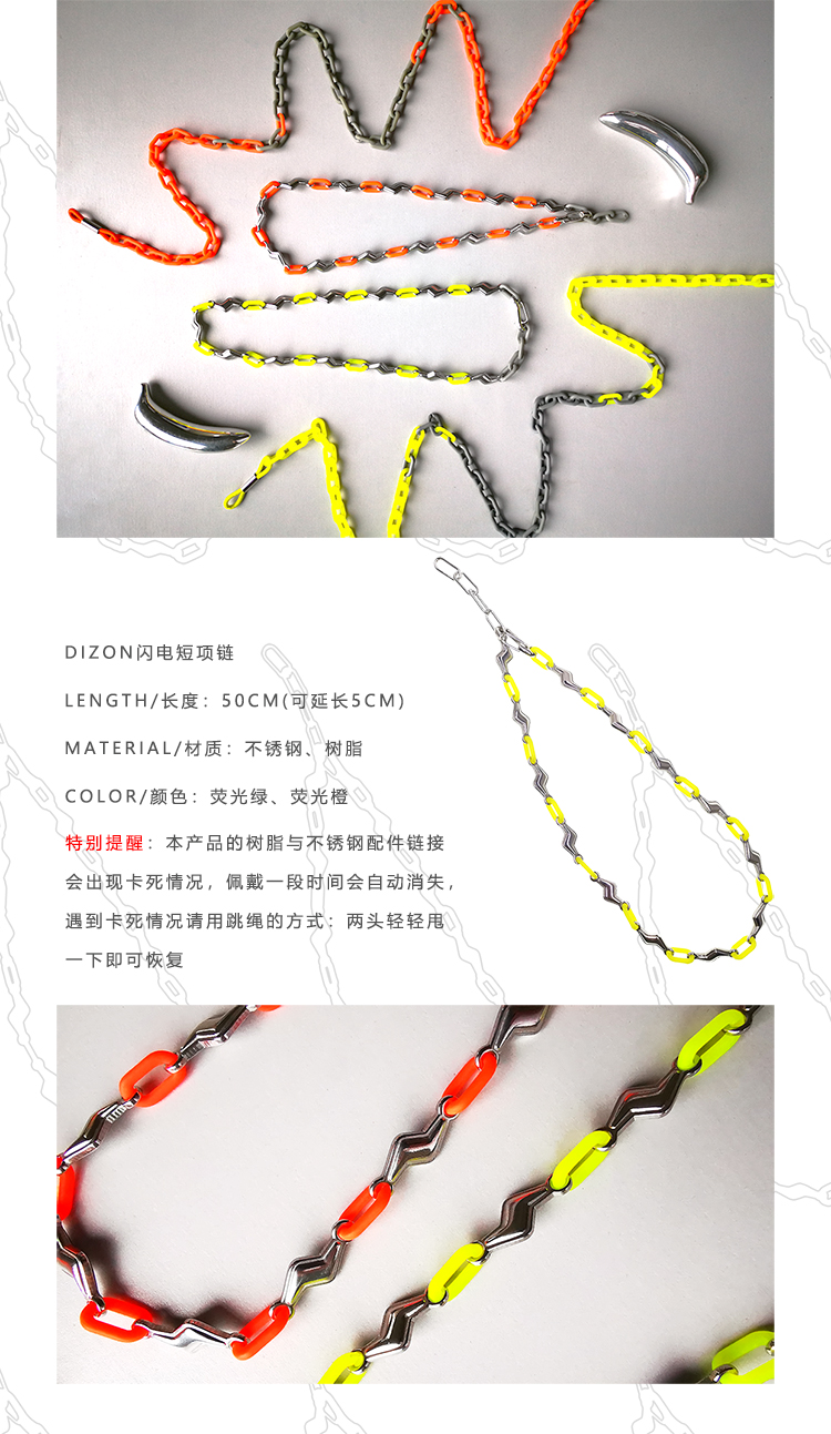 DIZON 小众设计锁链式工业机能项链 潮男钛钢荧光绿闪电锁骨短链