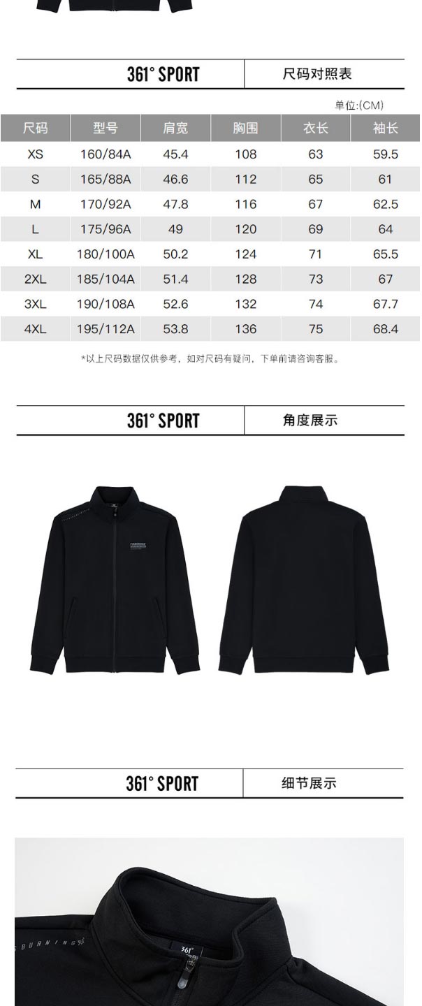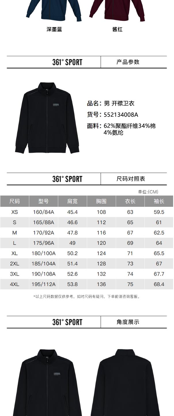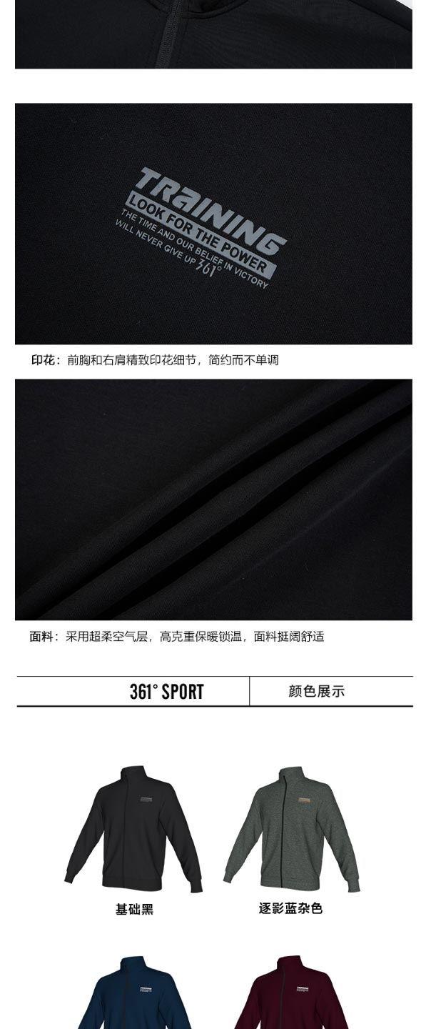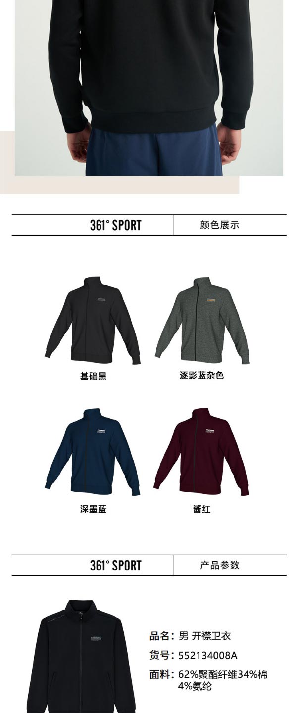 361度秋季新款运动服开襟卫衣552134008A