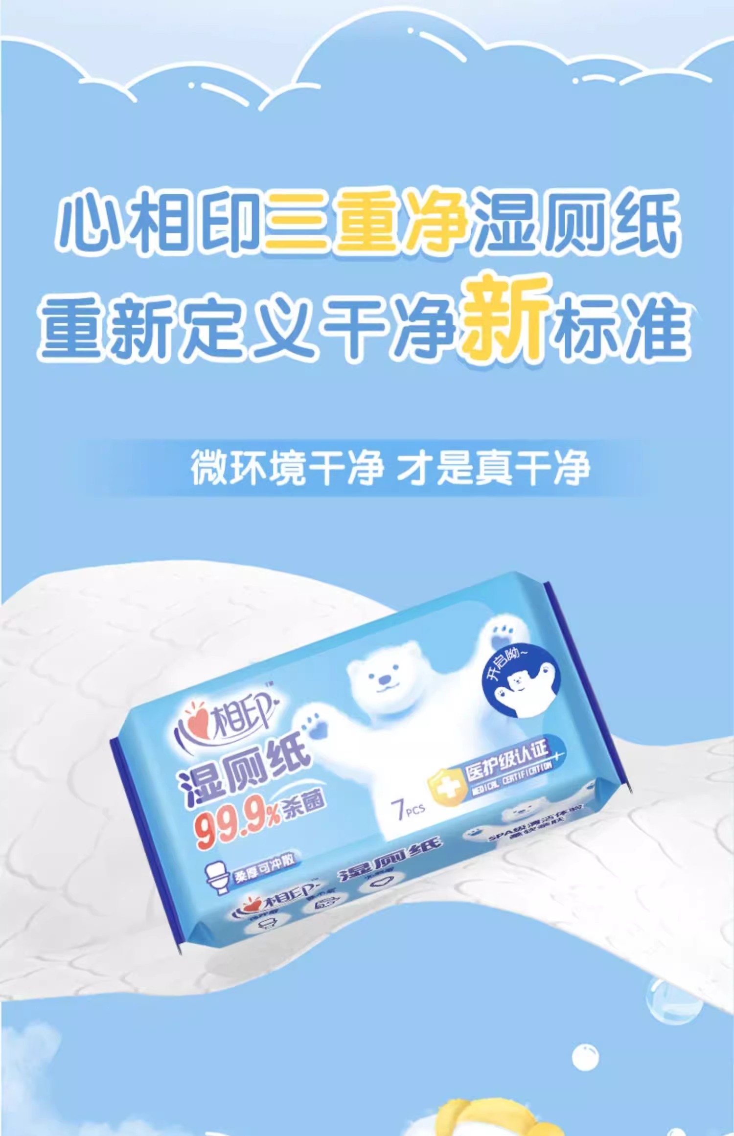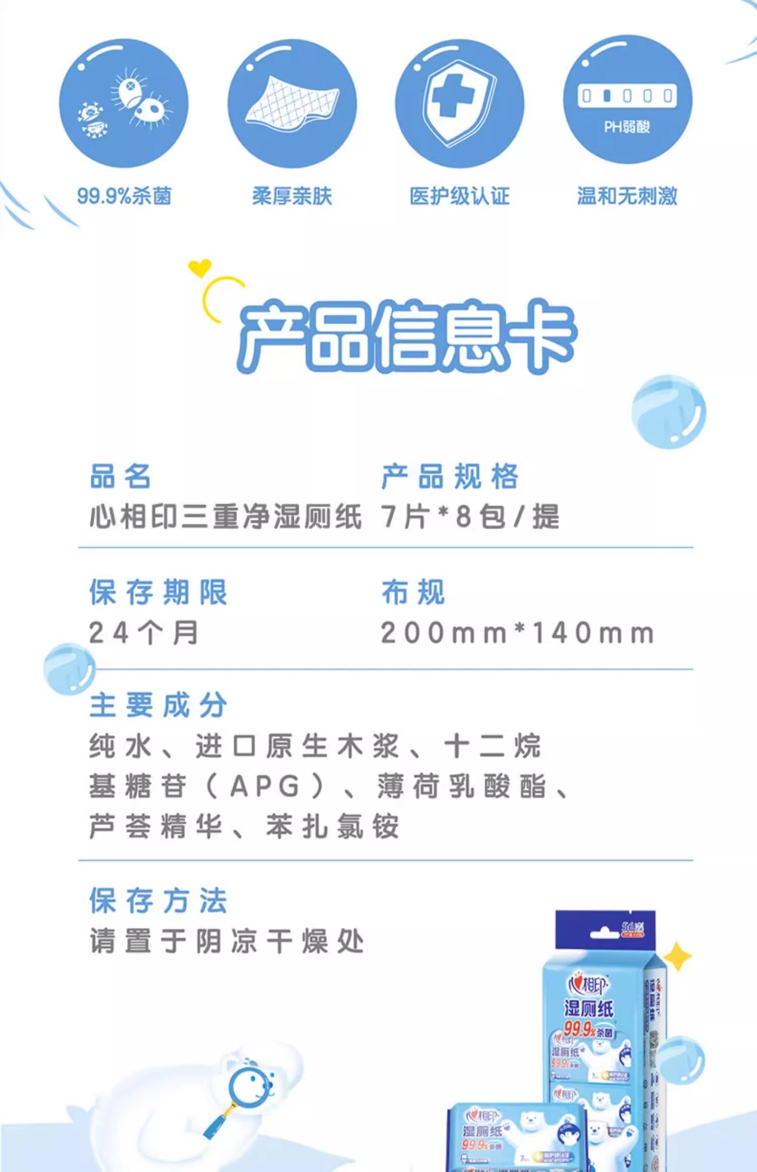 【自营】 心相印 湿厕纸系列 99.9杀菌 pH弱酸性 7片*24包
