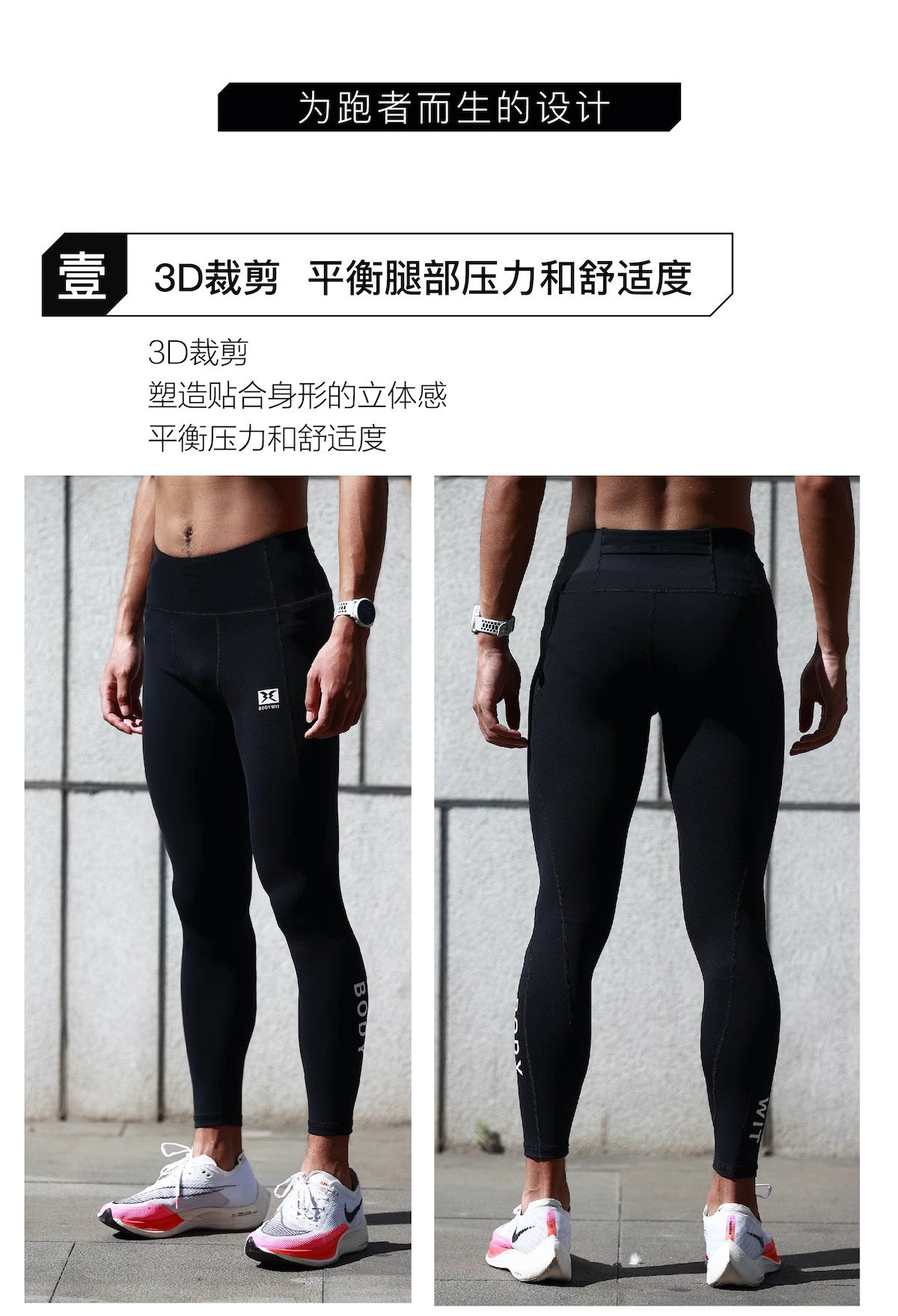 身体智慧 BODYWIT 男款 疾塑紧身肤感速干九分裤
