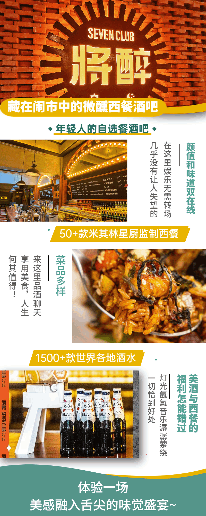 抢购截止日期11月30日【3店通用·将醉sevenclub】外号“酒水博物馆”,闭上眼带你环游世界品尝美酒美食!¥128抢价值302元双人套餐!
