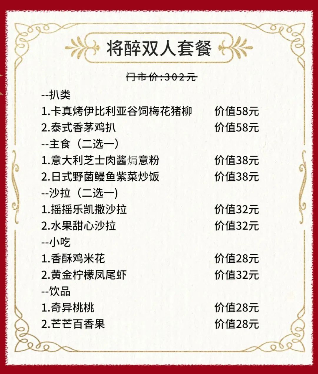 将醉双人餐 抢购价:128元/套(门市价:302元)