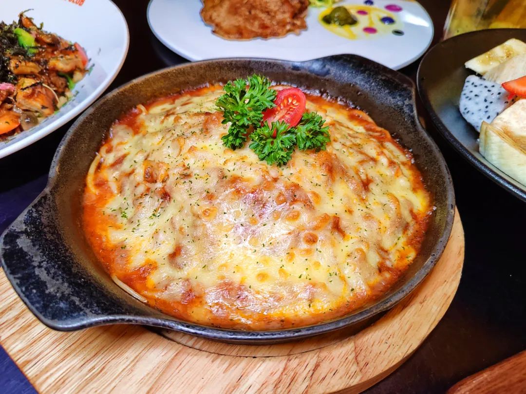 厚厚的一层芝士满满覆盖住意粉