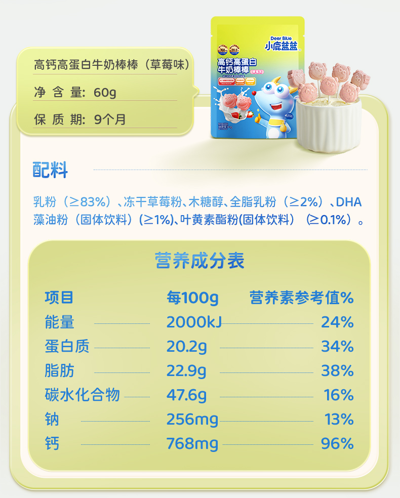 高钙高蛋白牛奶棒棒草莓味牛奶味