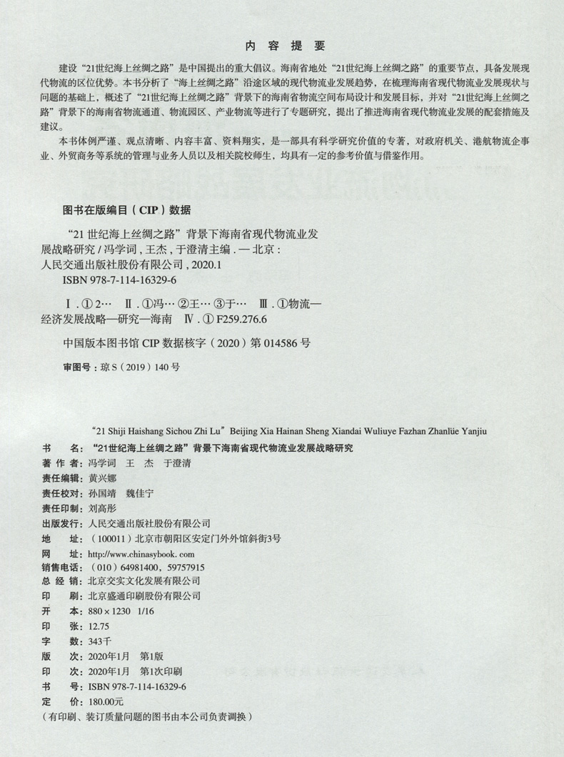 书名:“21世纪海上丝绸之路”背景下海南省现代物流业发展战略研究