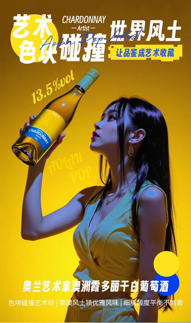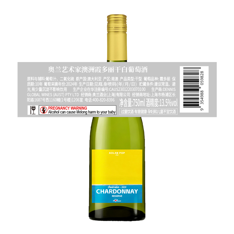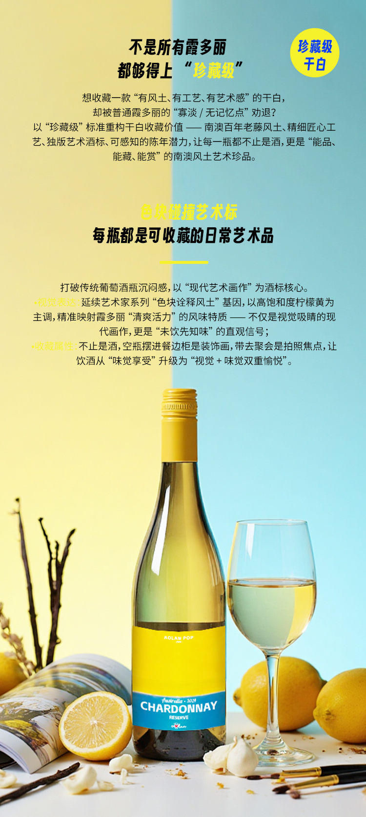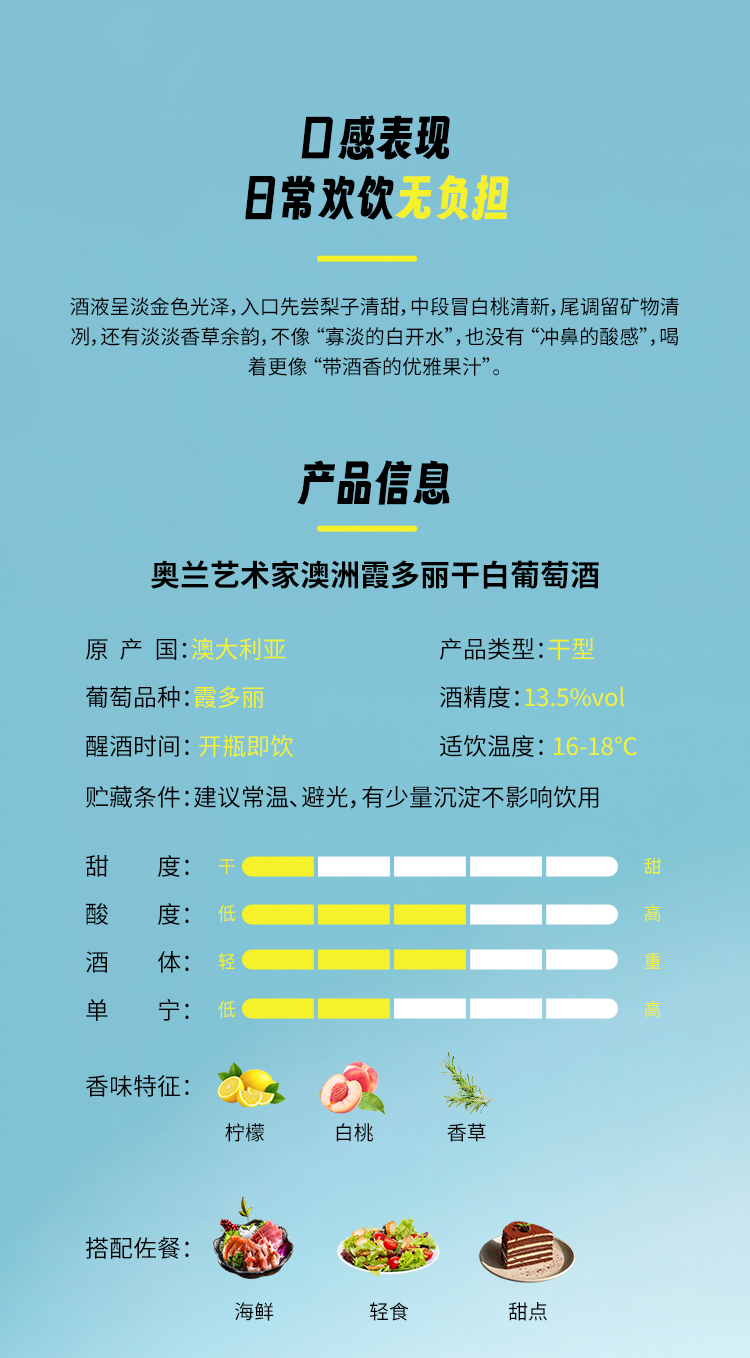 【新品】奥兰艺术家澳洲原瓶进口霞多丽干白葡萄酒13.5°750ml 优雅小白花清爽白葡萄酒