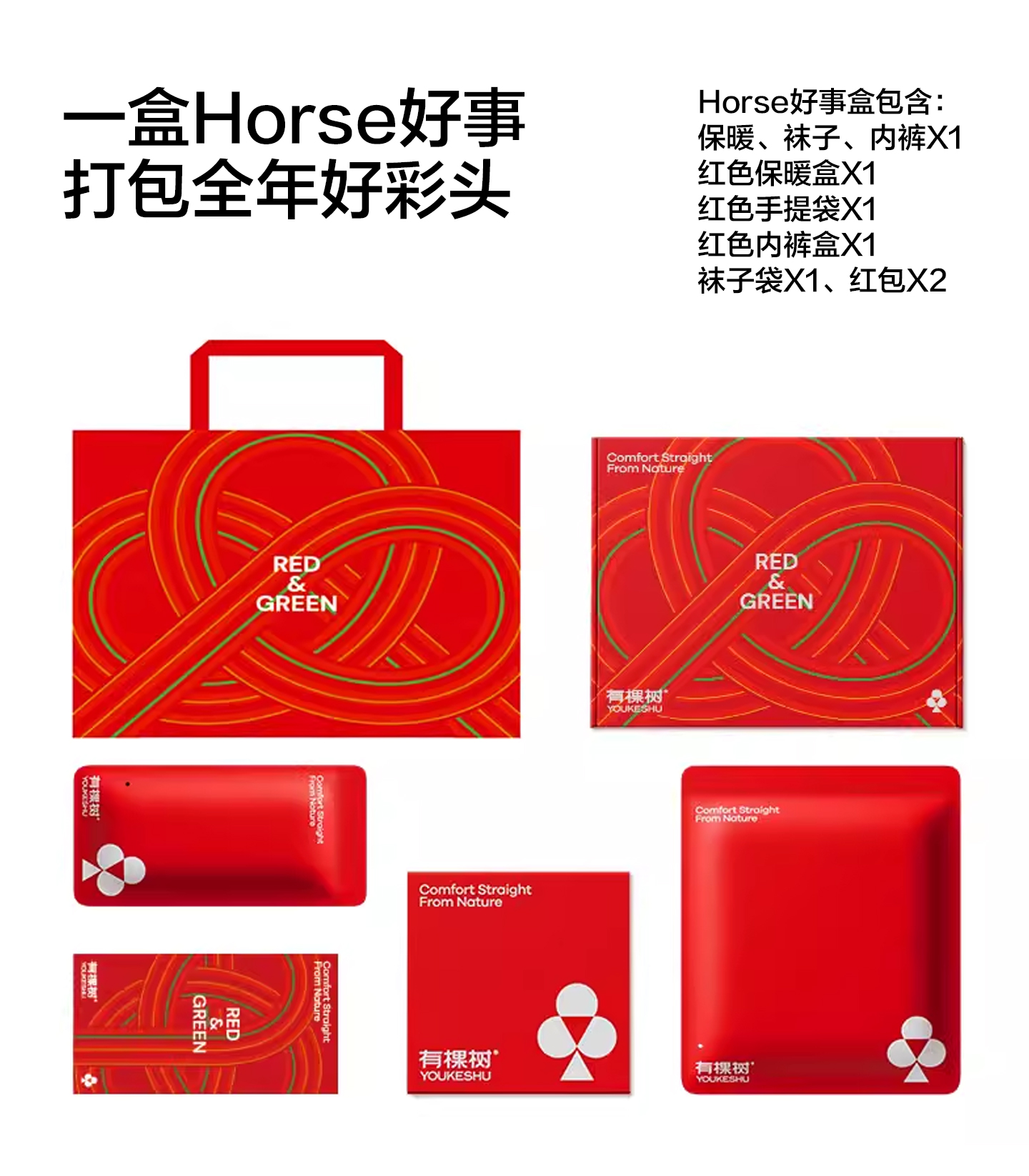 【新品上新】有棵树本命年纯棉保暖内衣套装男女秋冬结婚秋衣秋裤红色礼盒-S0093