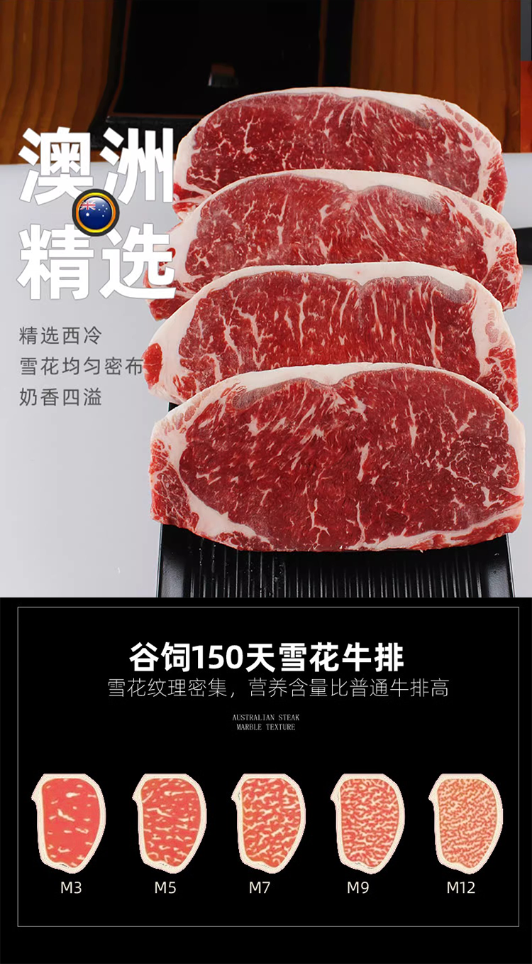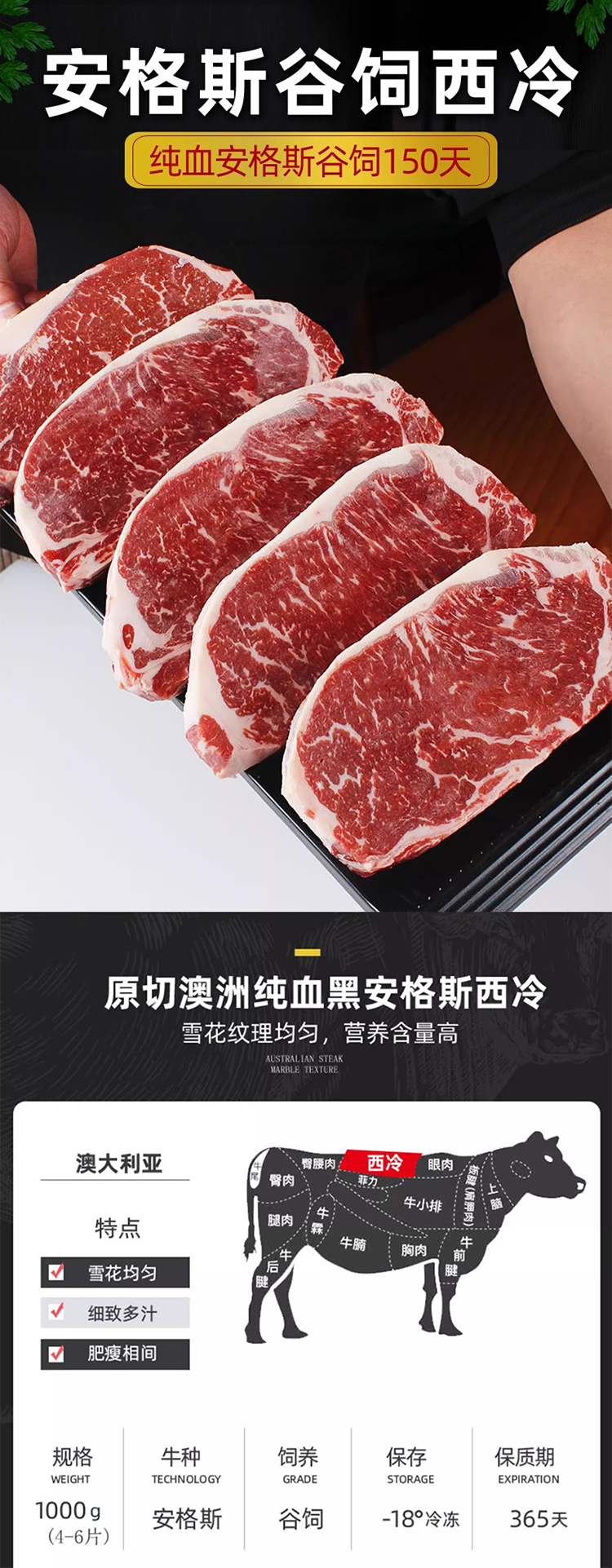 澳洲谷饲150天+安格斯原切西冷牛排1kg