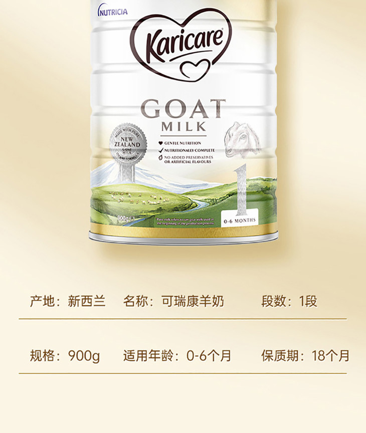 【保税区】新西兰Karicare可瑞康羊奶1段900g