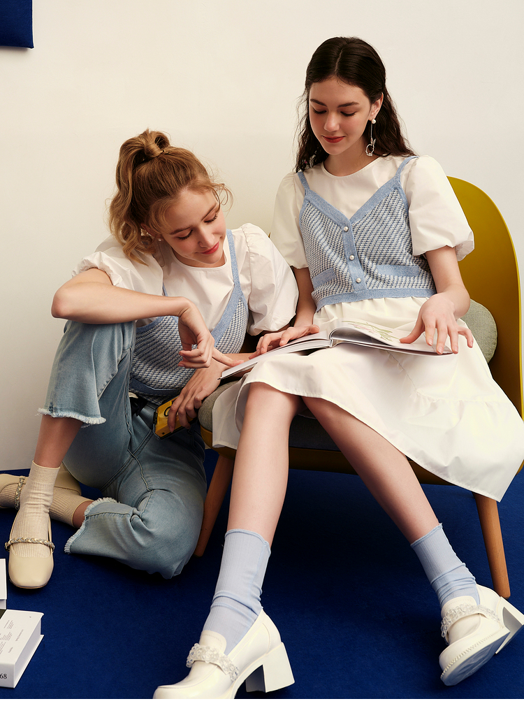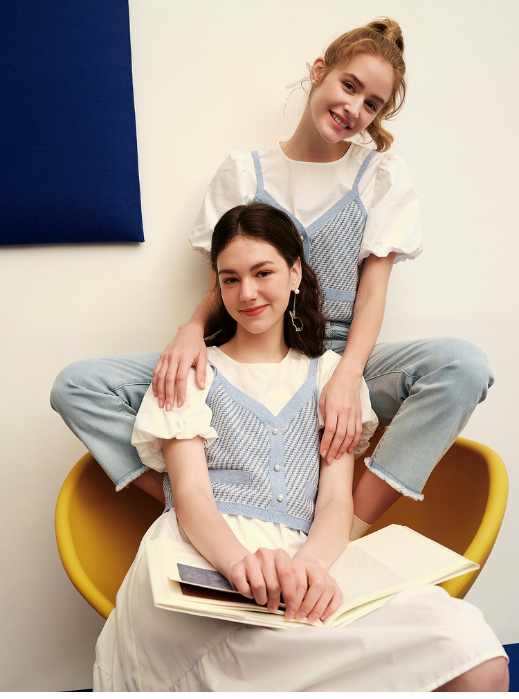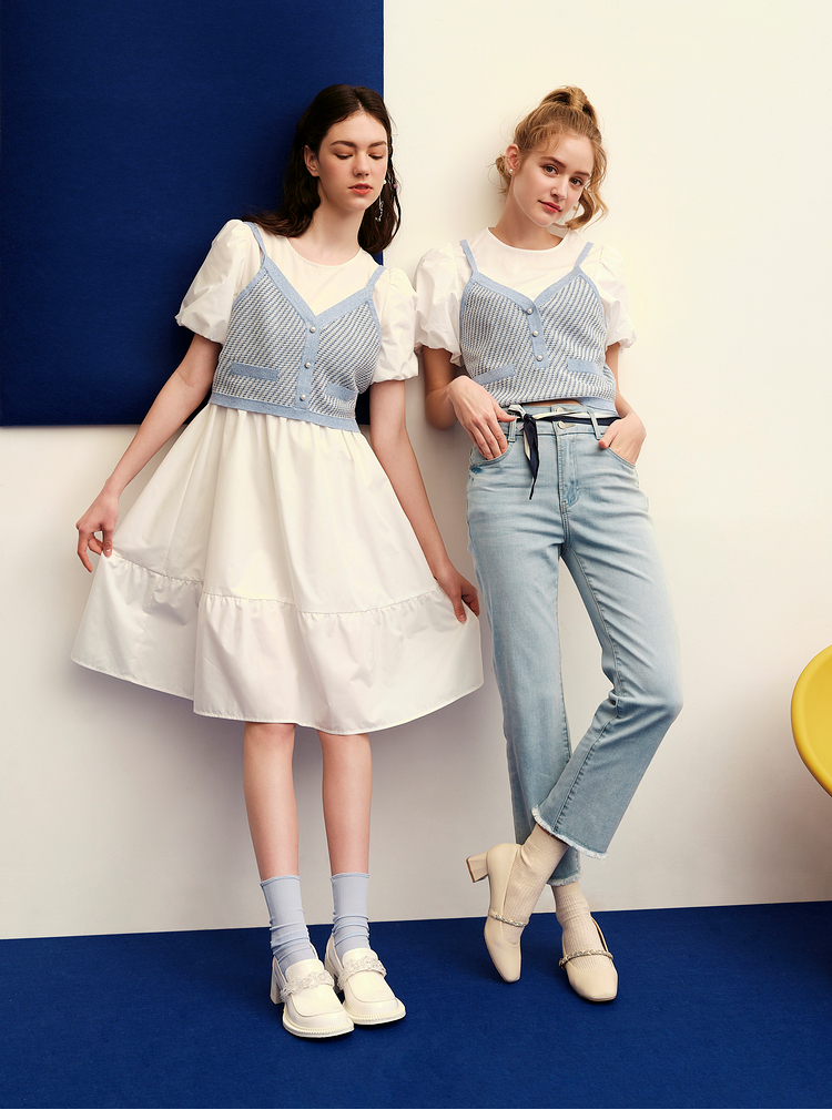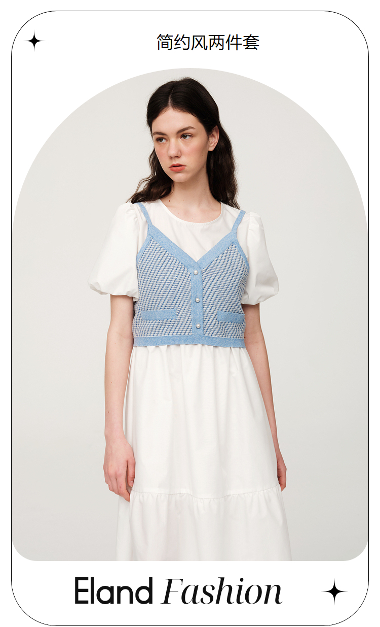 ELAND衣恋简约叠穿针织马甲连件套连衣裙EEOWC25N3B