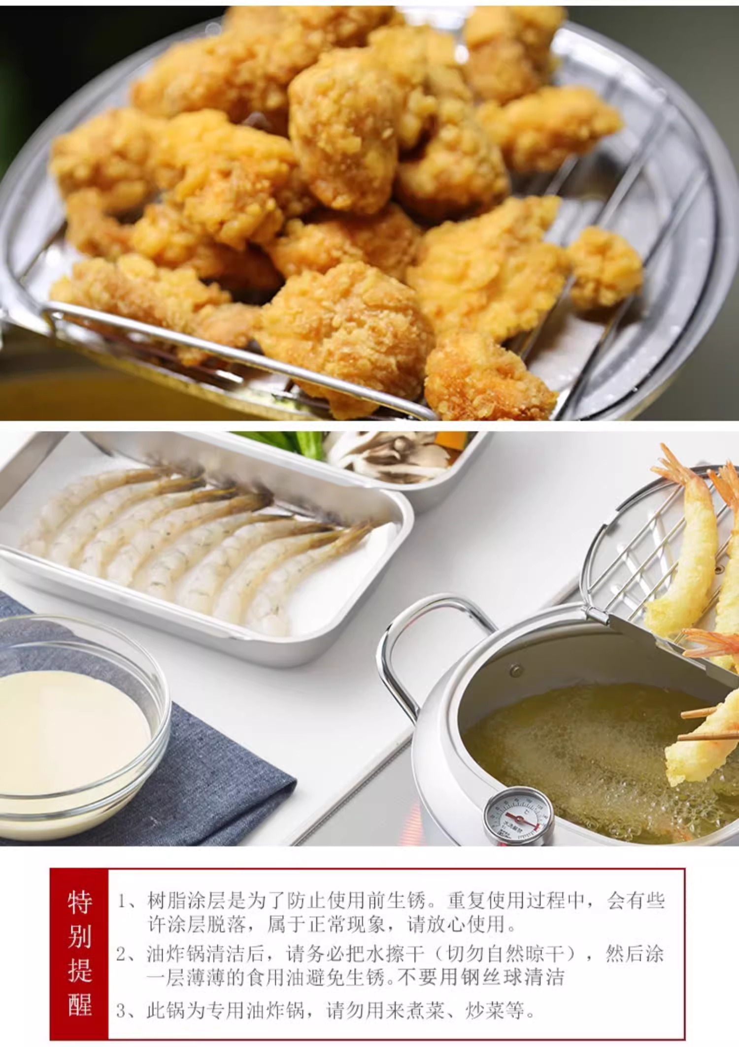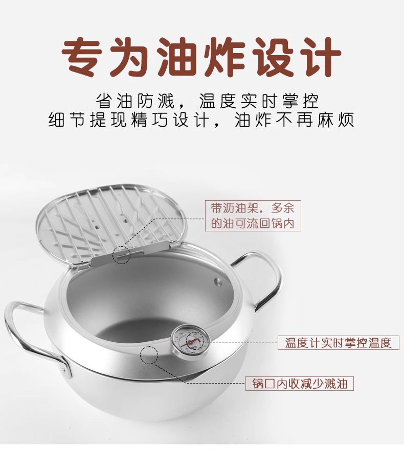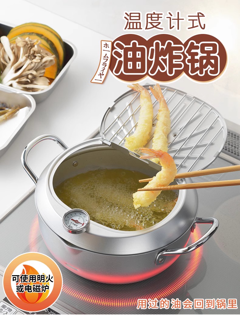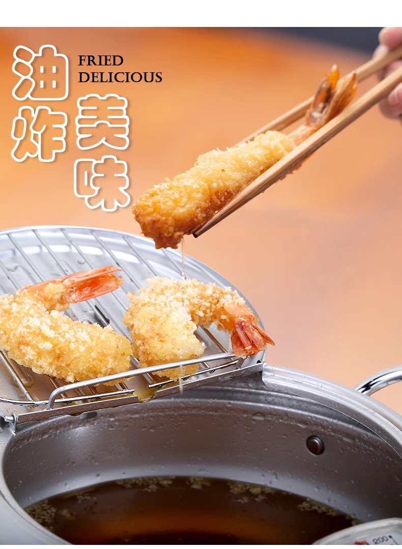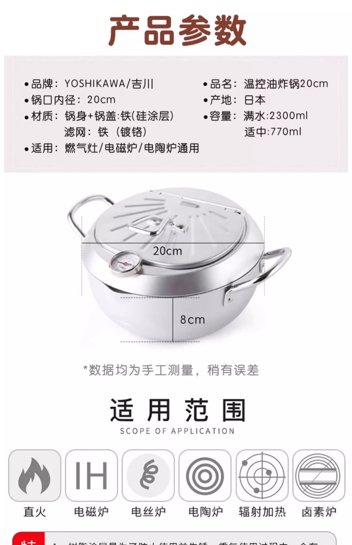 日本进口吉川(YOSHIKAWA) 天妇罗炸锅 铁制油炸锅20㎝/24cm燃气电磁炉通用