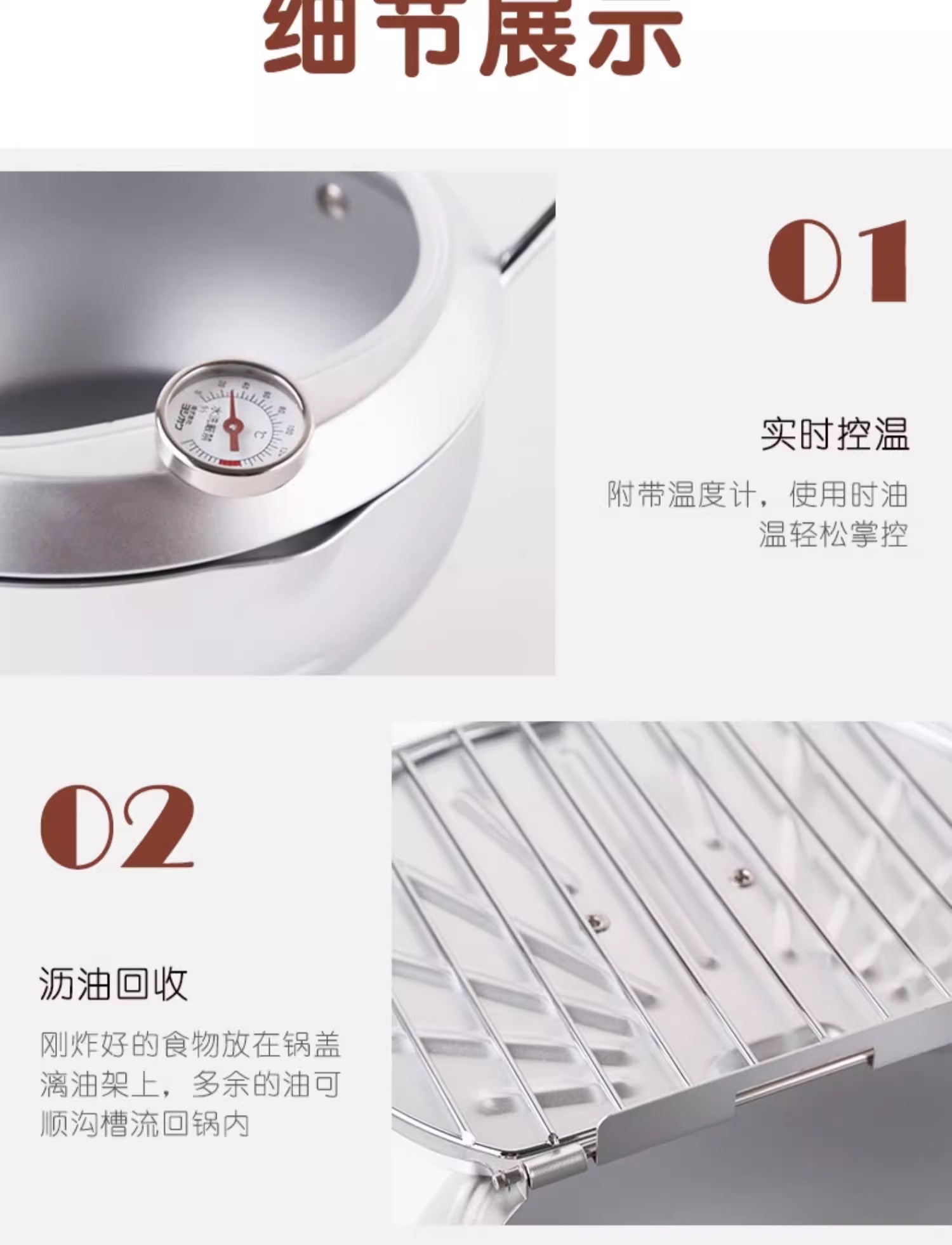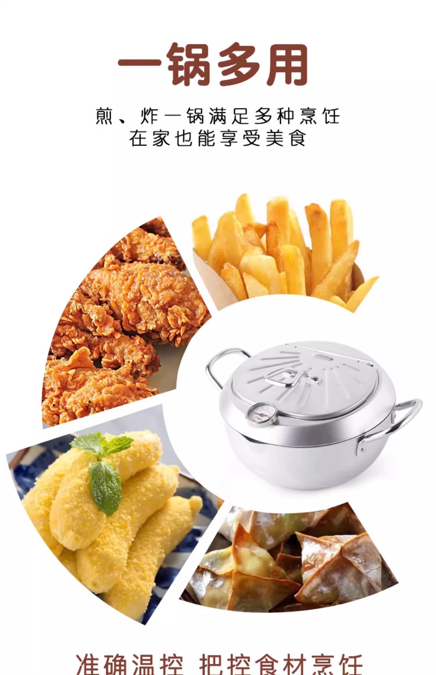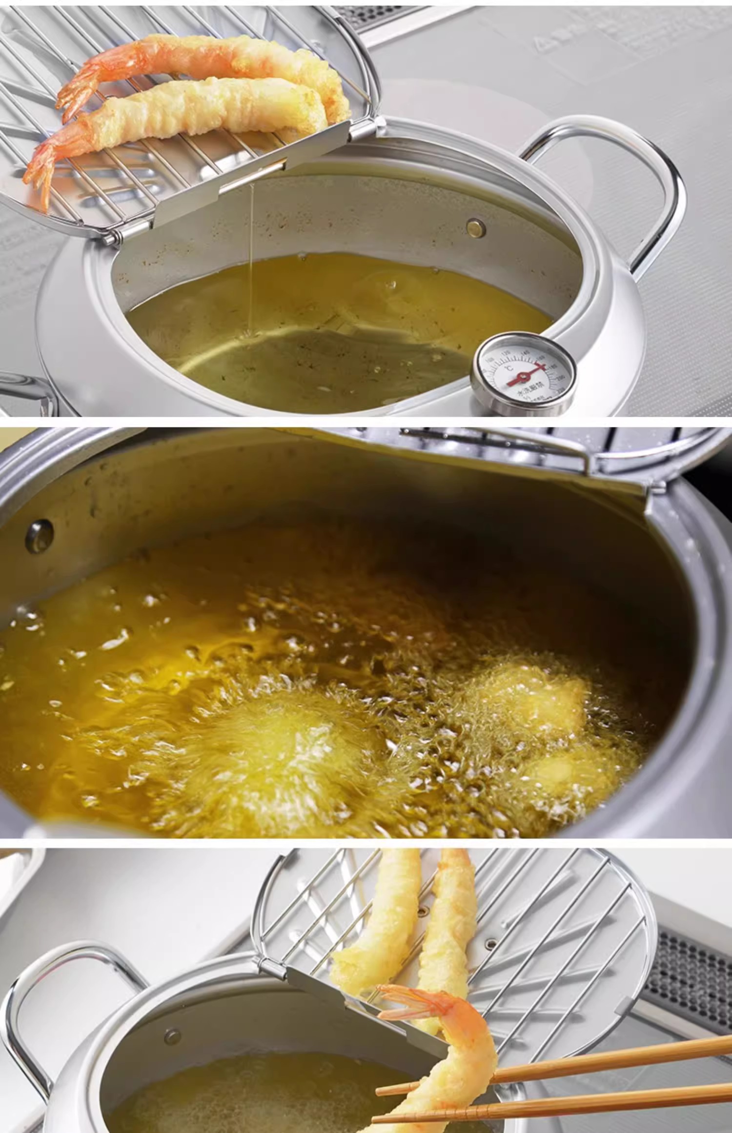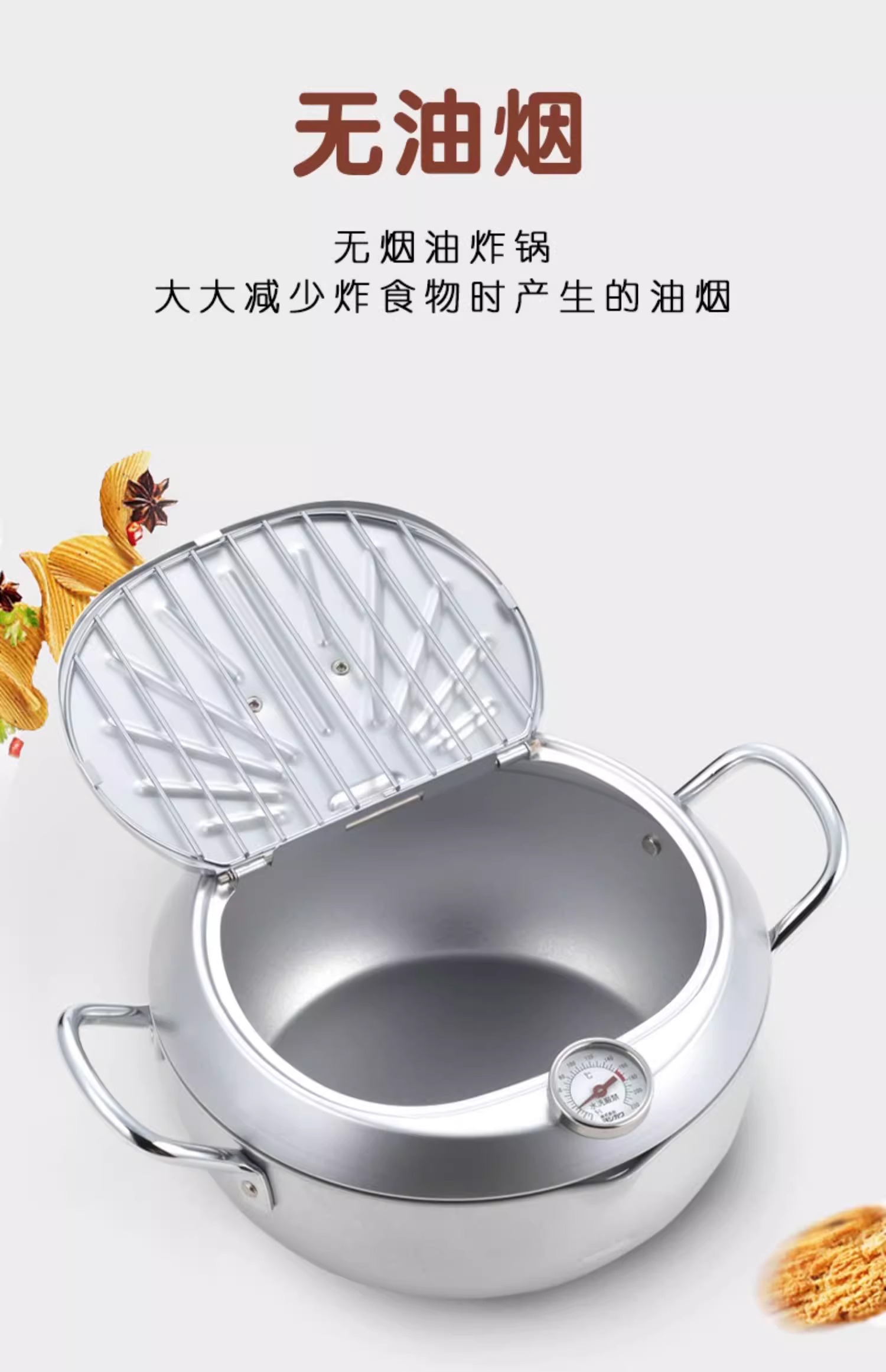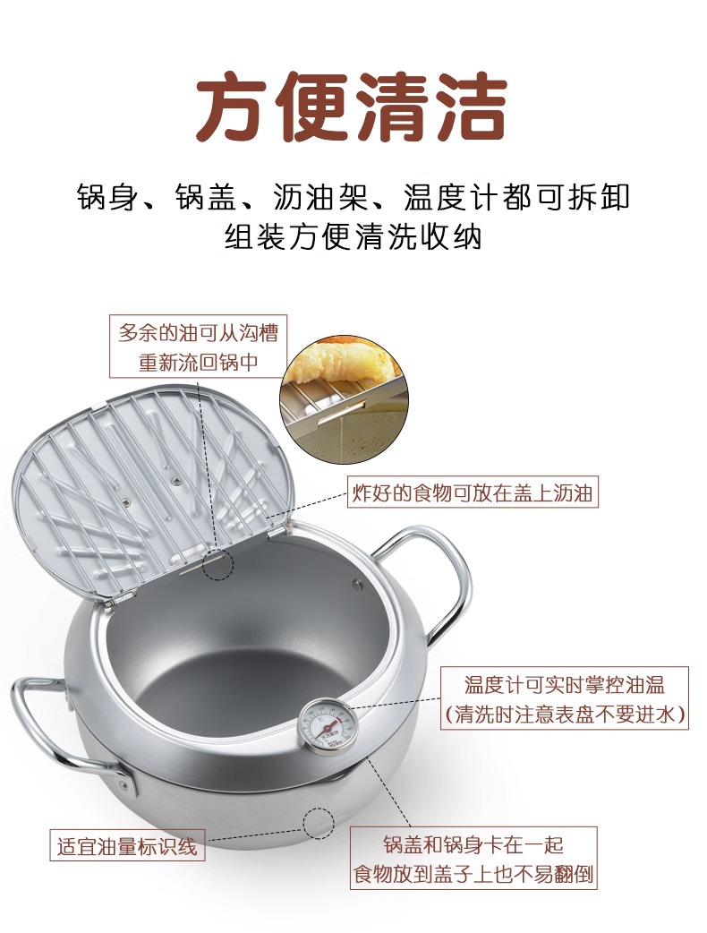 日本进口吉川(YOSHIKAWA) 天妇罗炸锅 铁制油炸锅20㎝/24cm燃气电磁炉通用