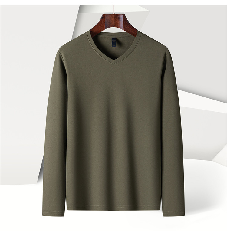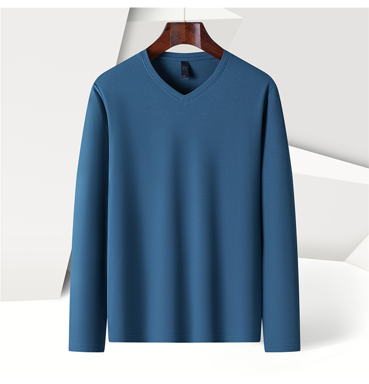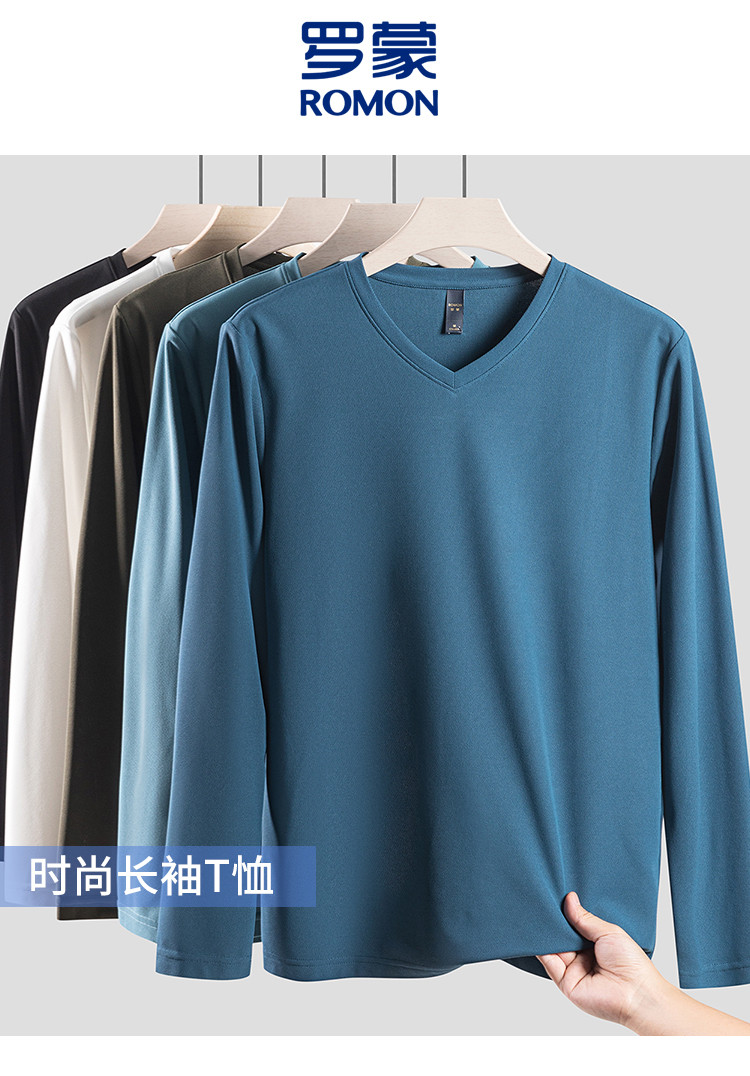【珠地面料】罗蒙春夏V领t恤男长袖t恤男舒适男士t恤长袖上衣男体恤