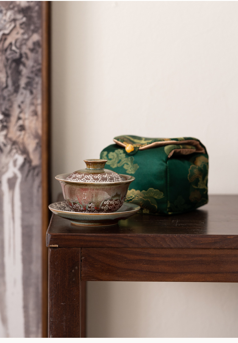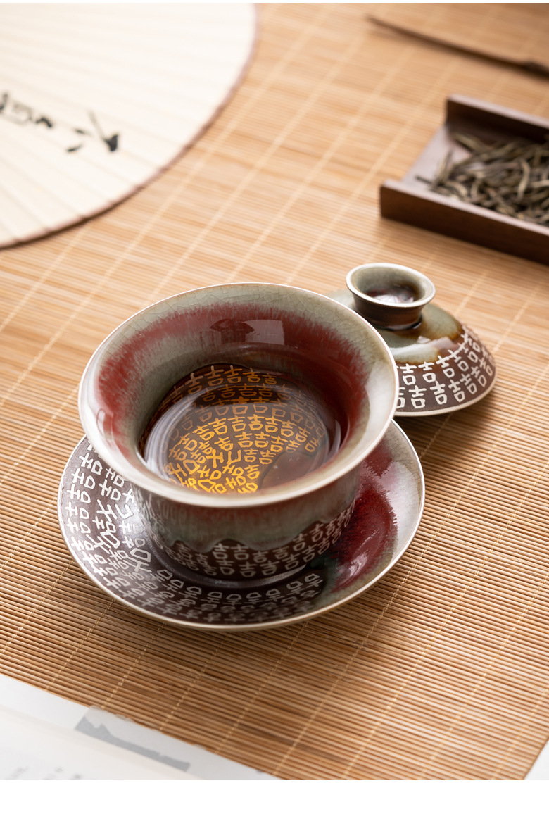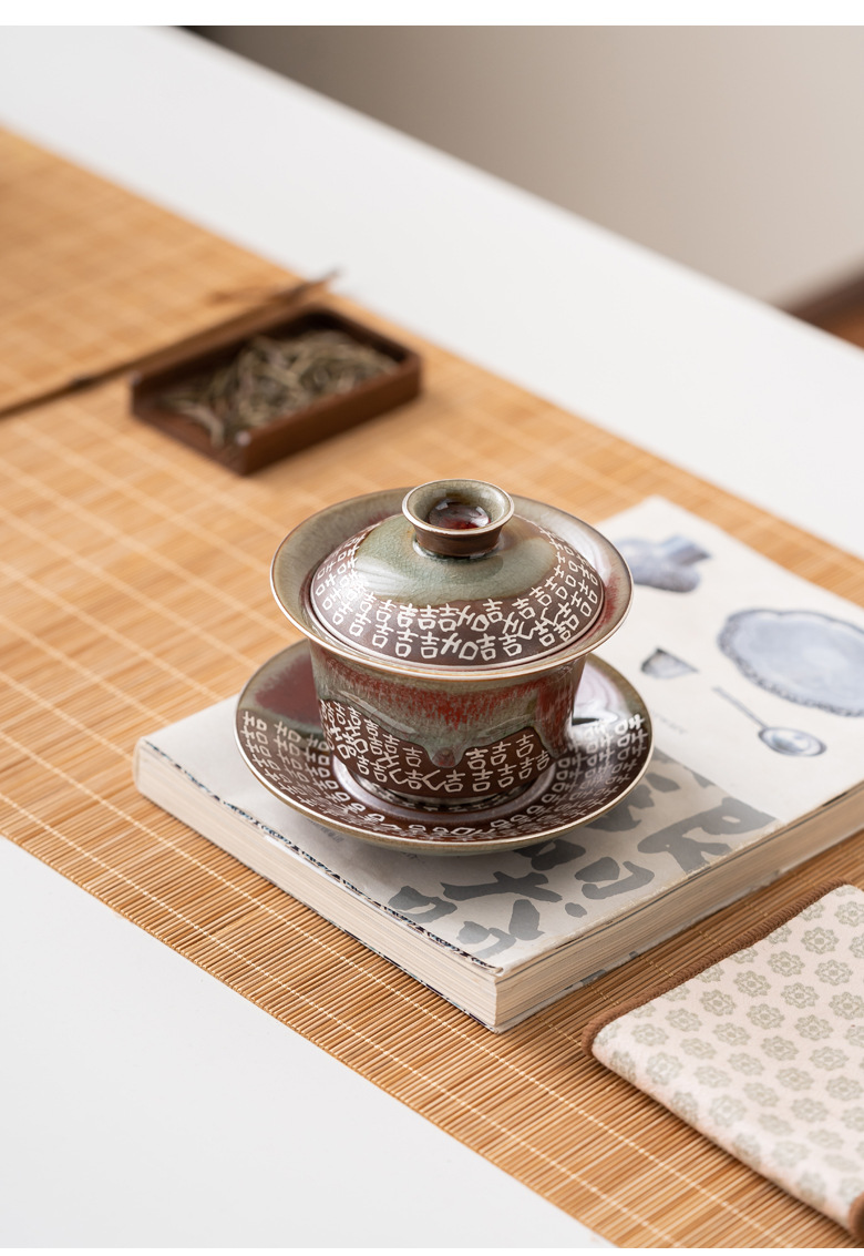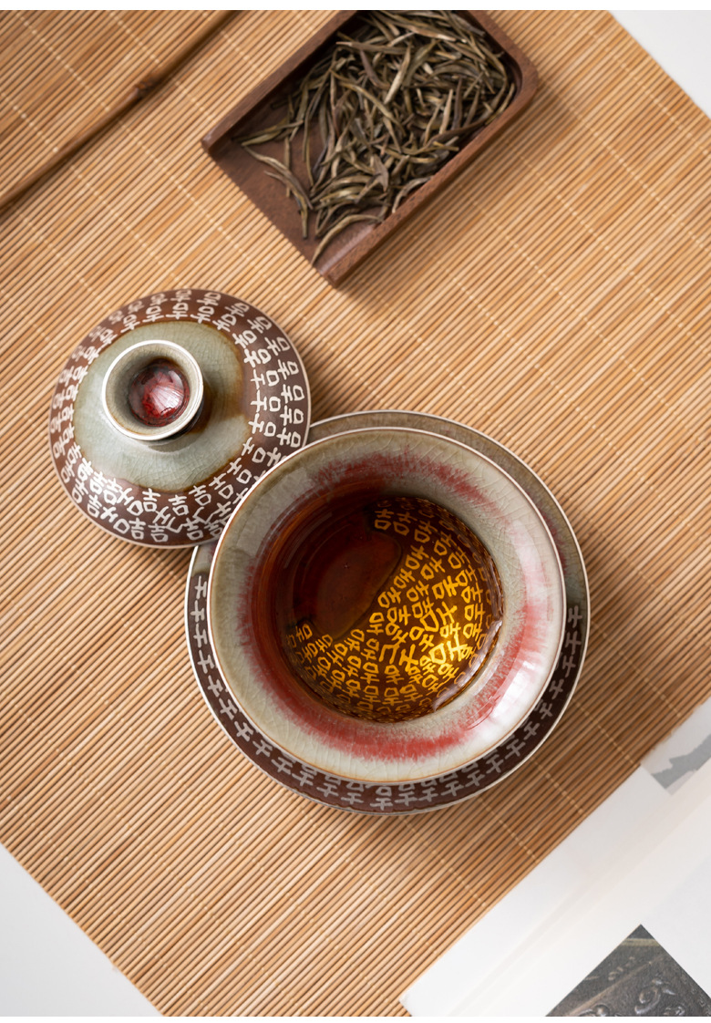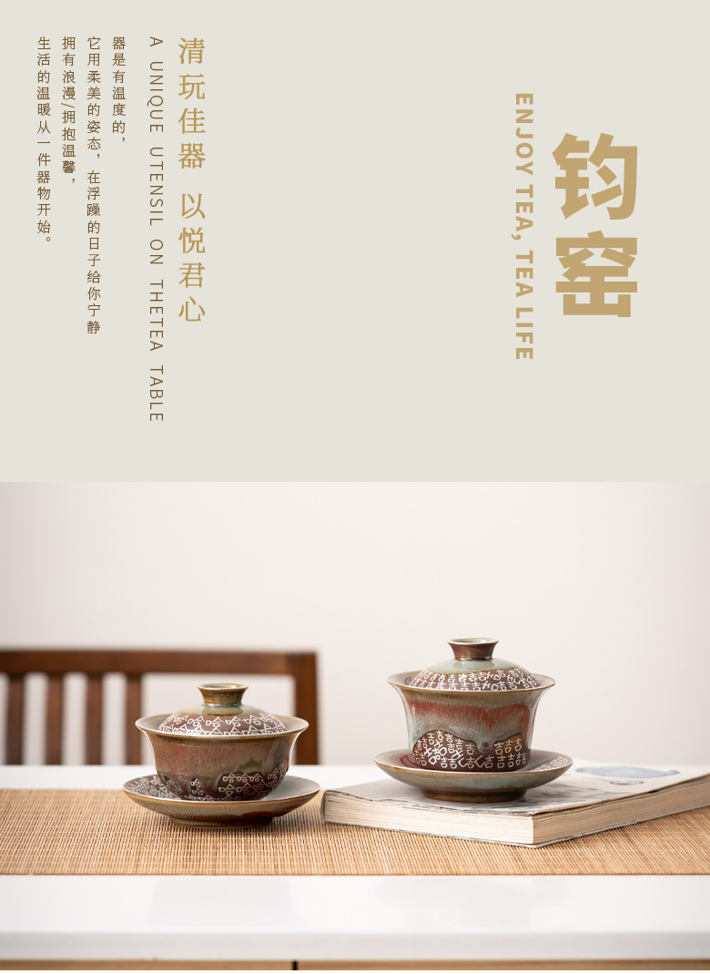 钧窑三才盖碗陶瓷新中式功夫茶具防烫盖杯手工窑变开片茶碗敬茶杯