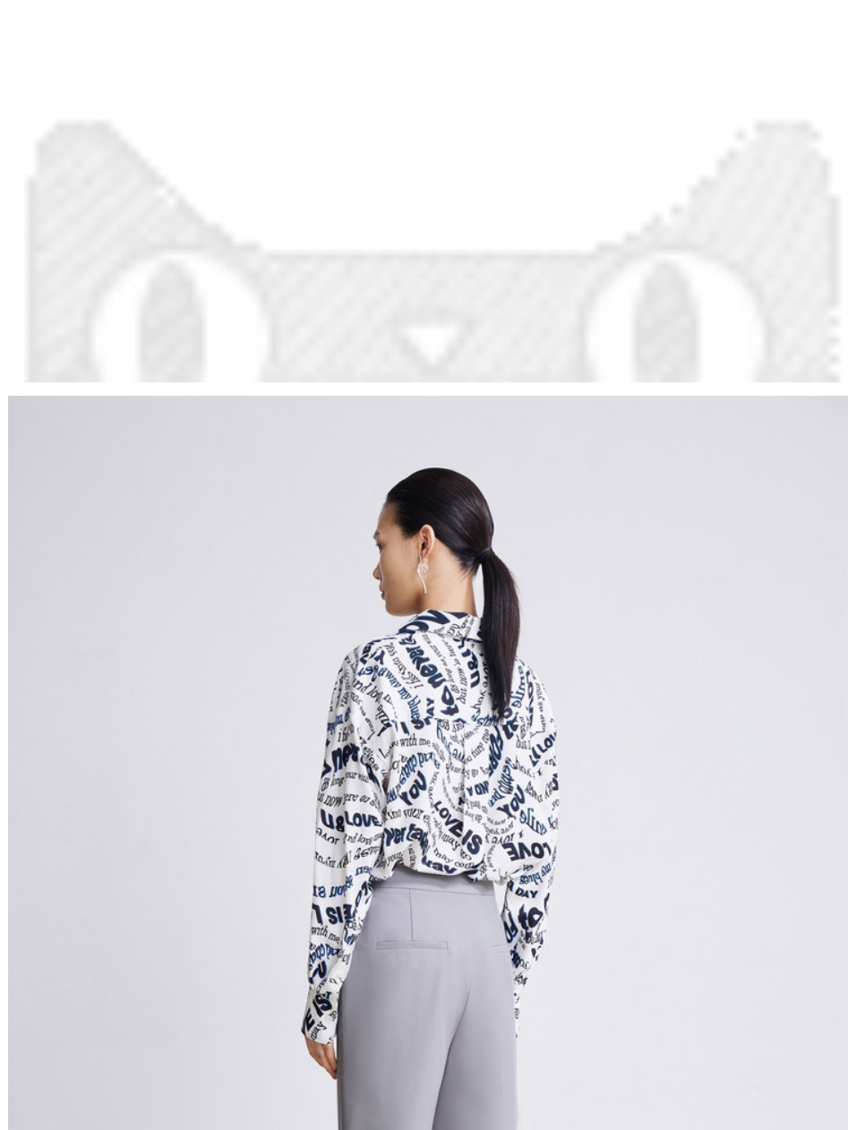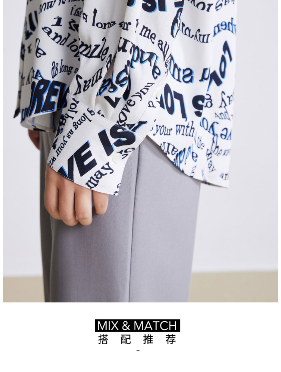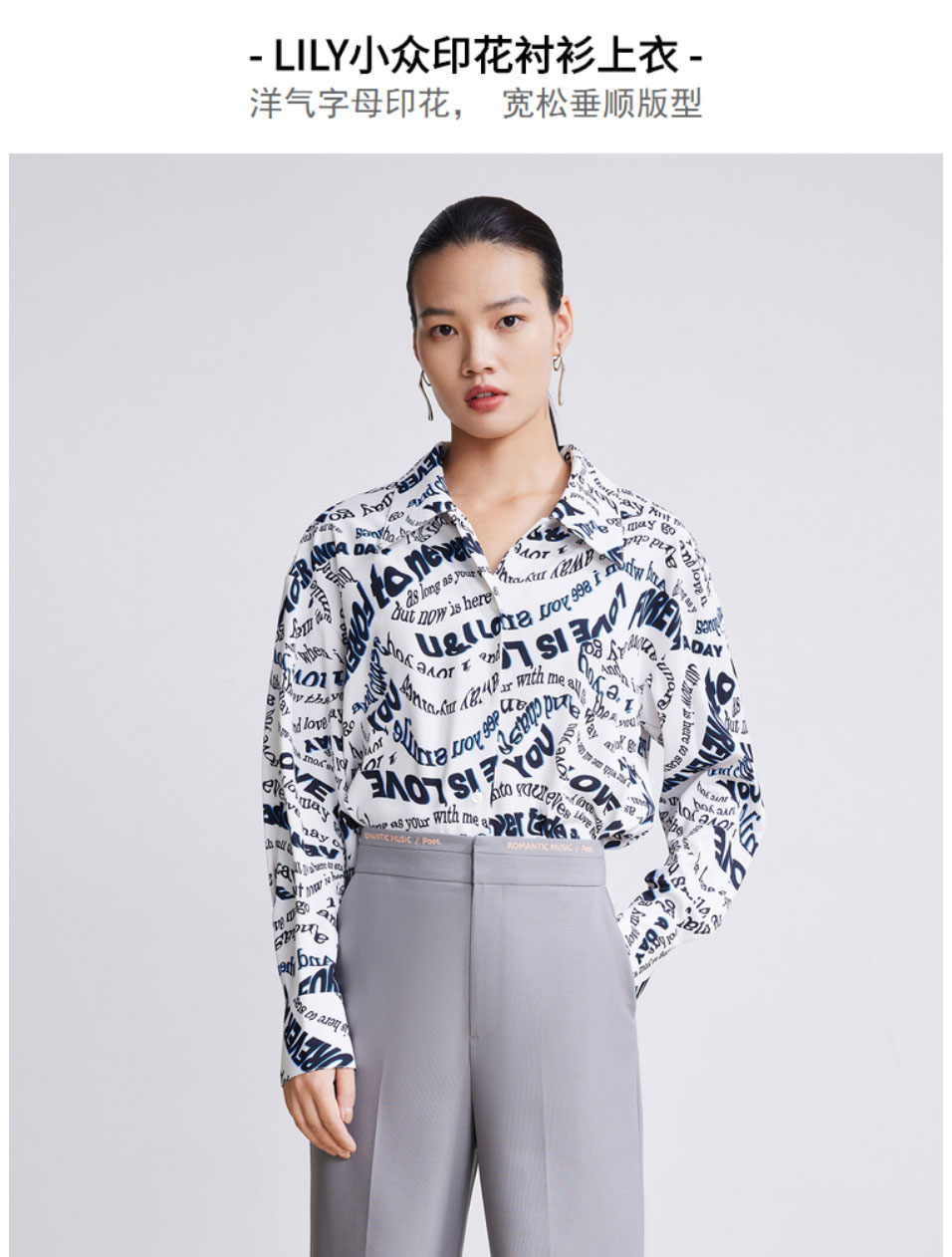 LILY2022春新款女装小众设计感印花宽松垂顺衬衫上衣122130C4219
