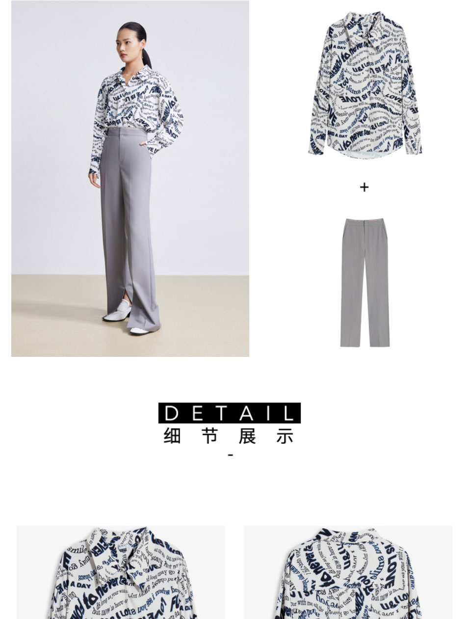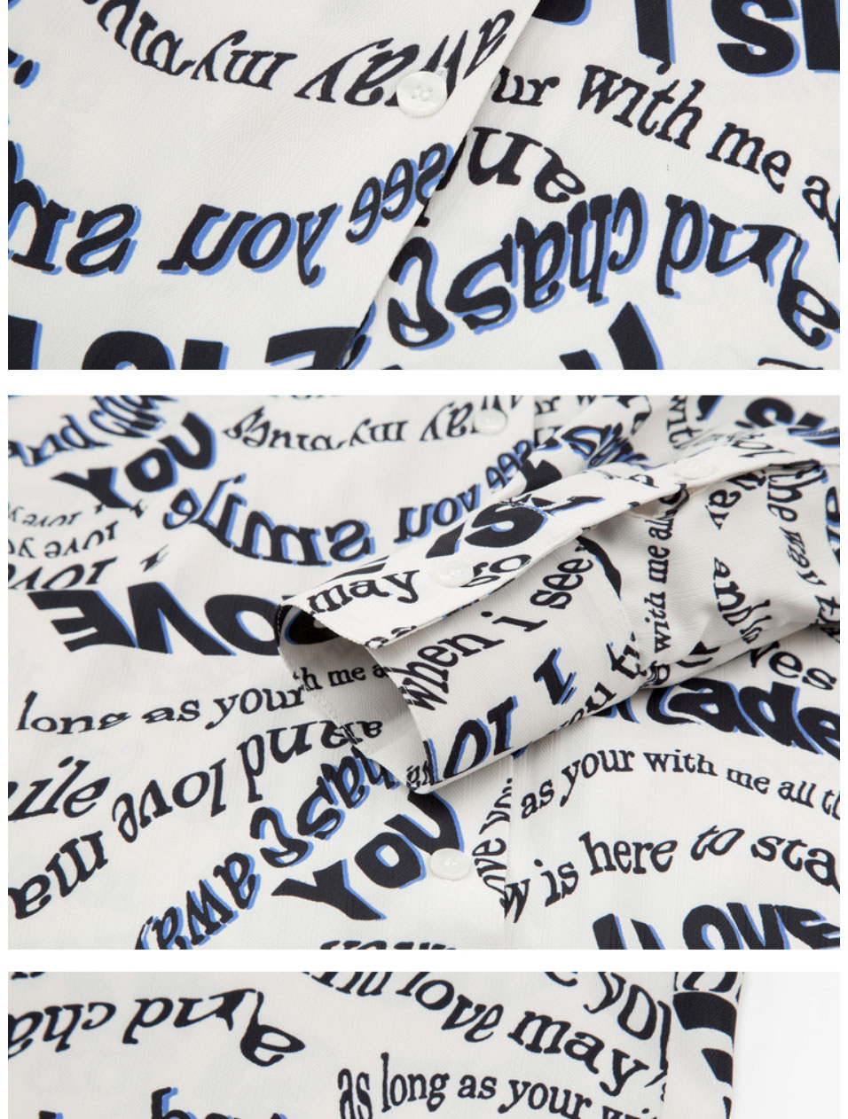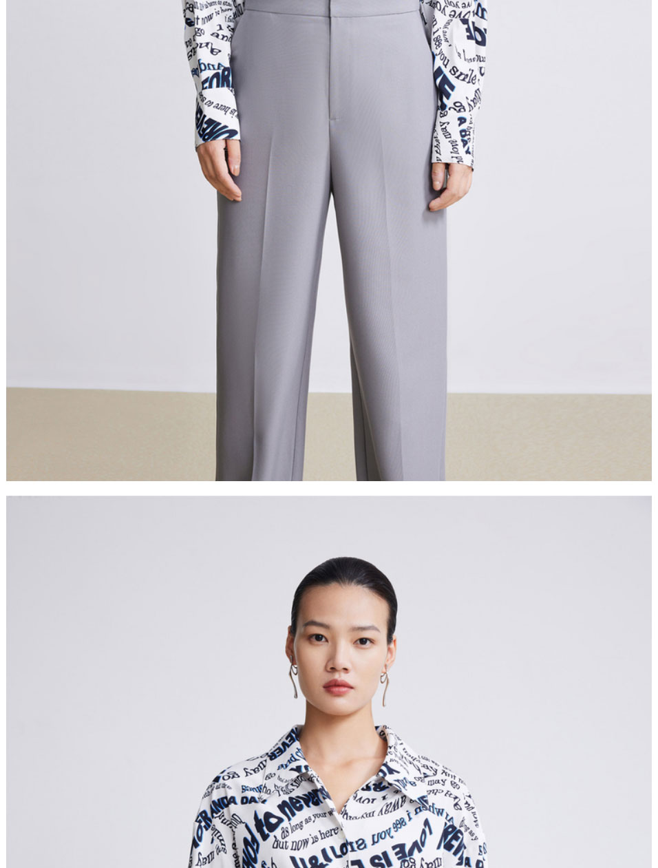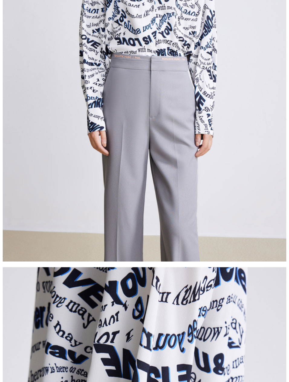 LILY2022春新款女装小众设计感印花宽松垂顺衬衫上衣122130C4219
