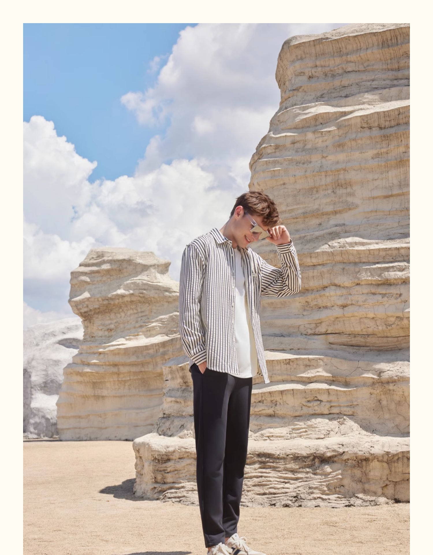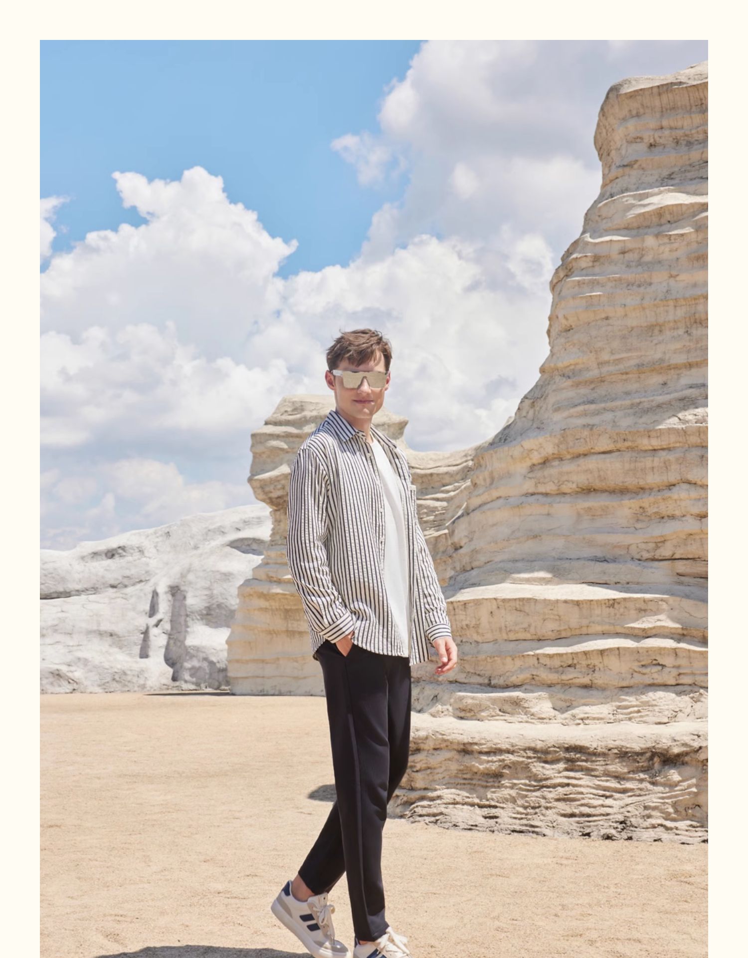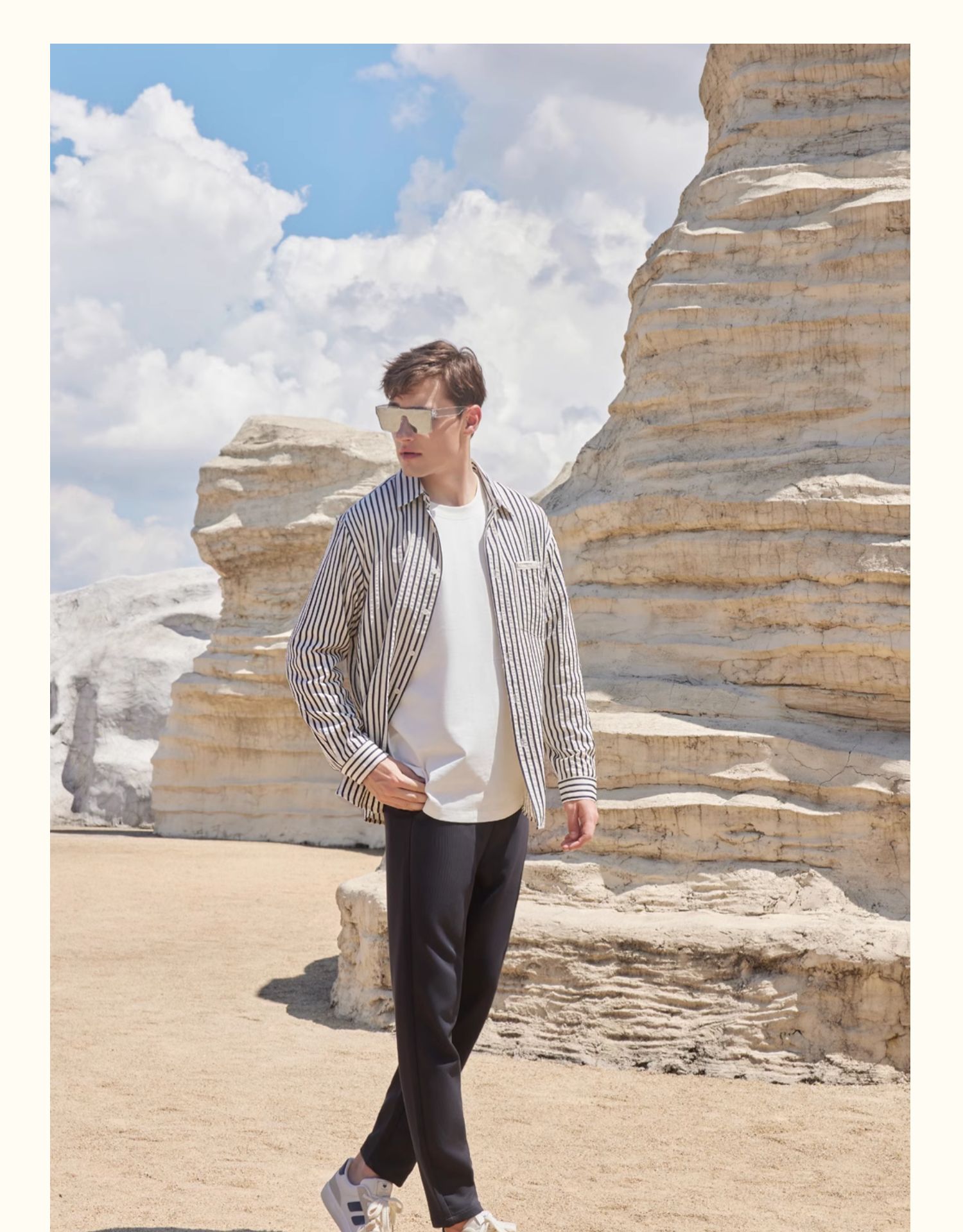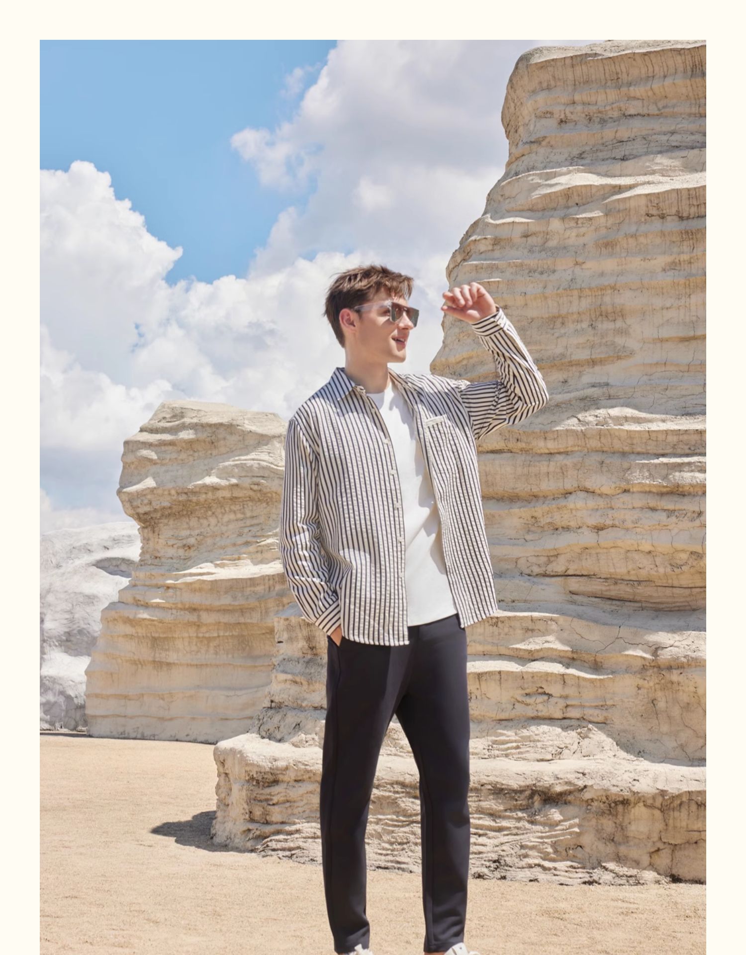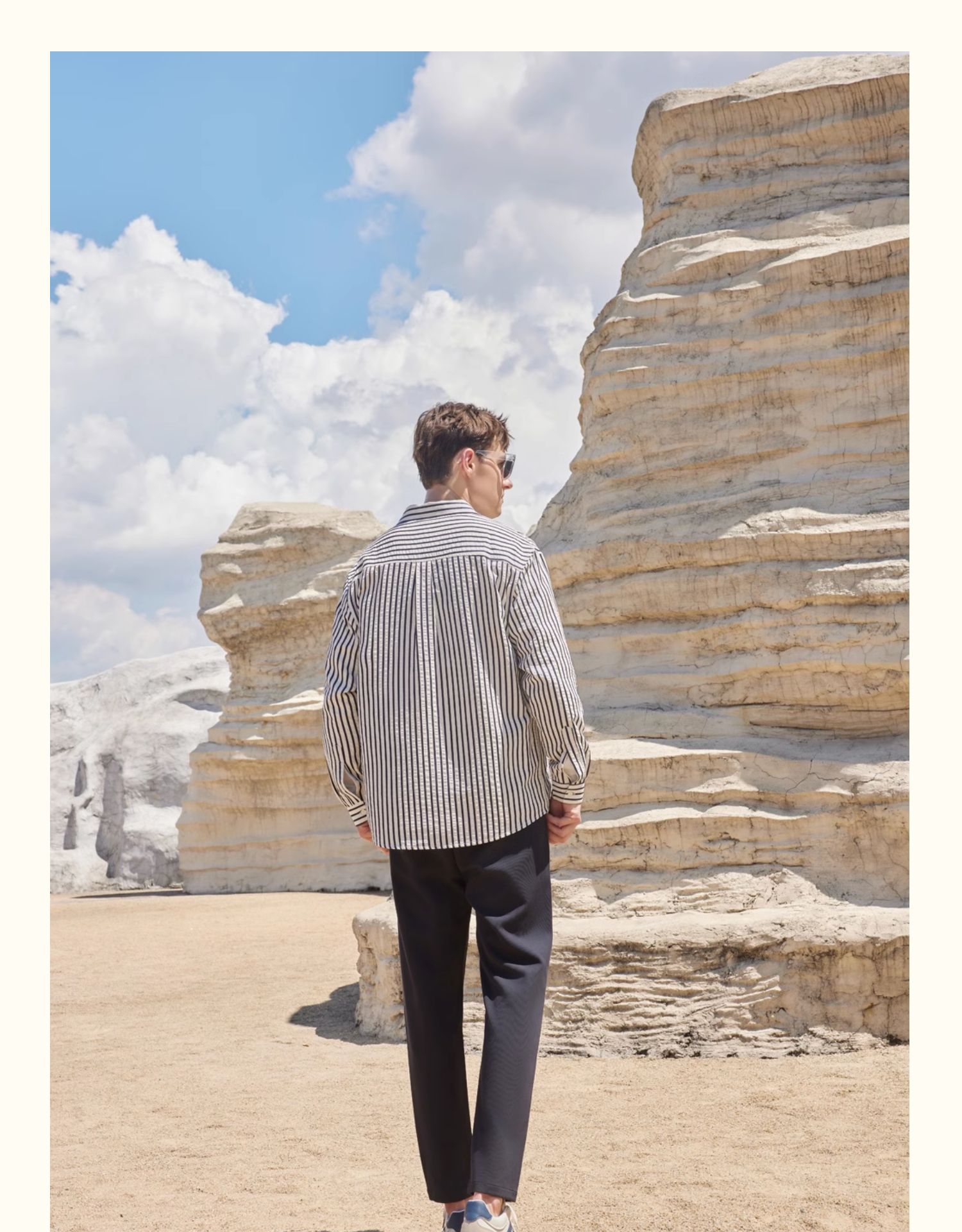 半身缘男装 秋季泡泡工艺色织条纹休闲长袖衬衫243112U01012901