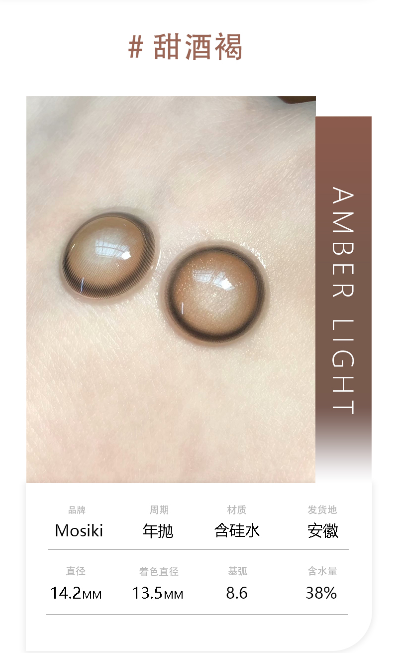 Mosiki 甜酒褐 年抛 2片14.2mm 着色13.5mm 基弧8.6 含水38%