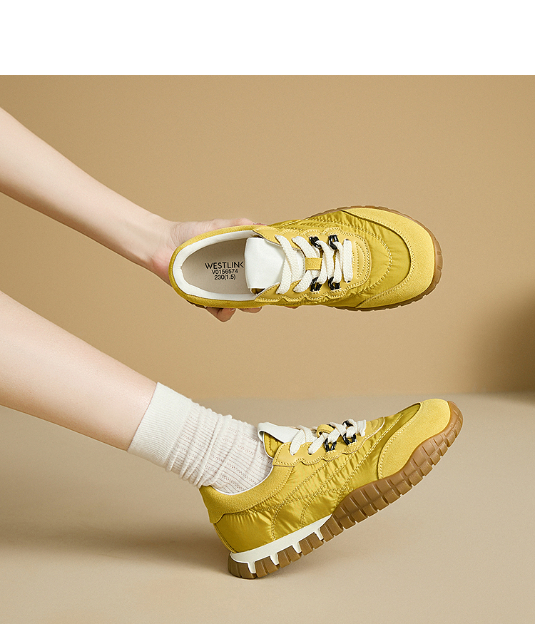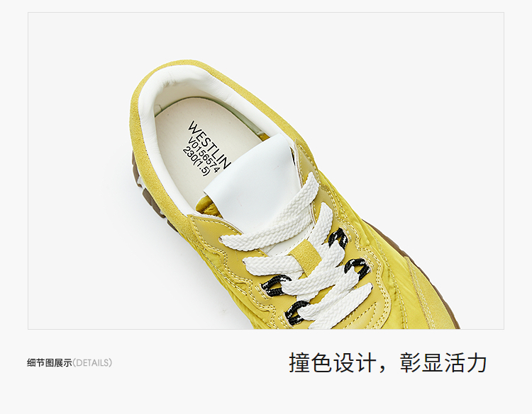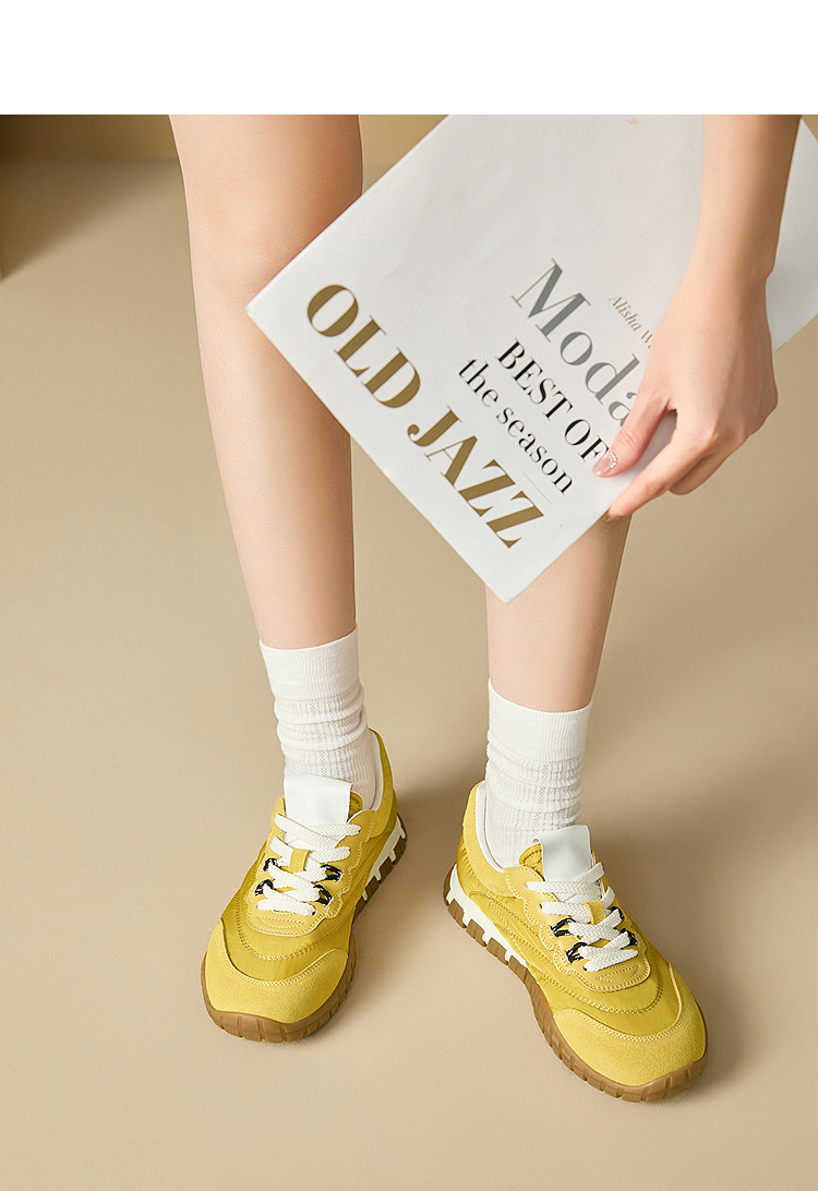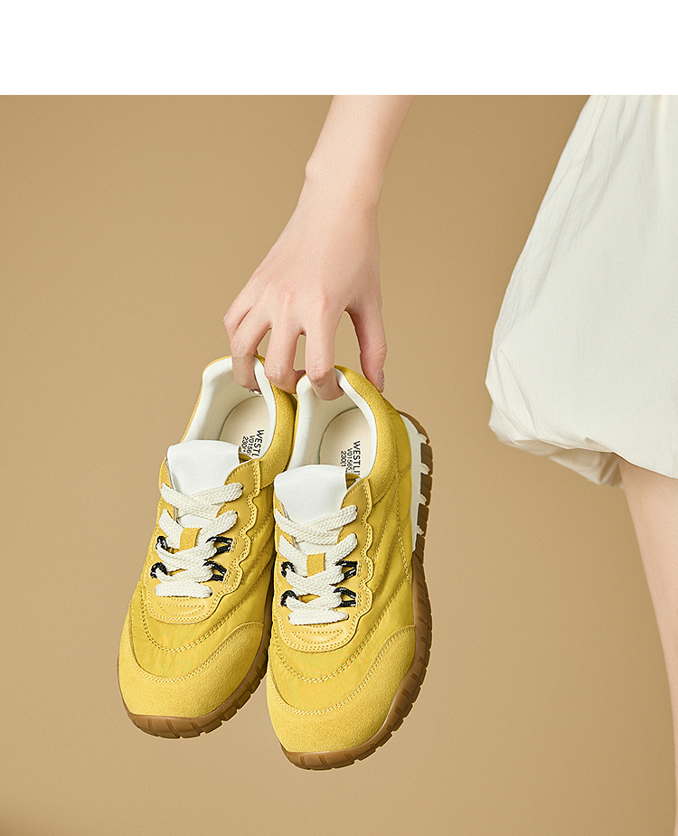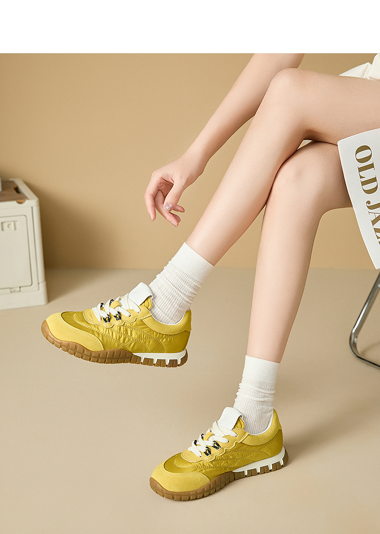 西遇芭蕾德训鞋女新款春夏超火复古小白鞋轻便软底黄色运动鞋V0156574